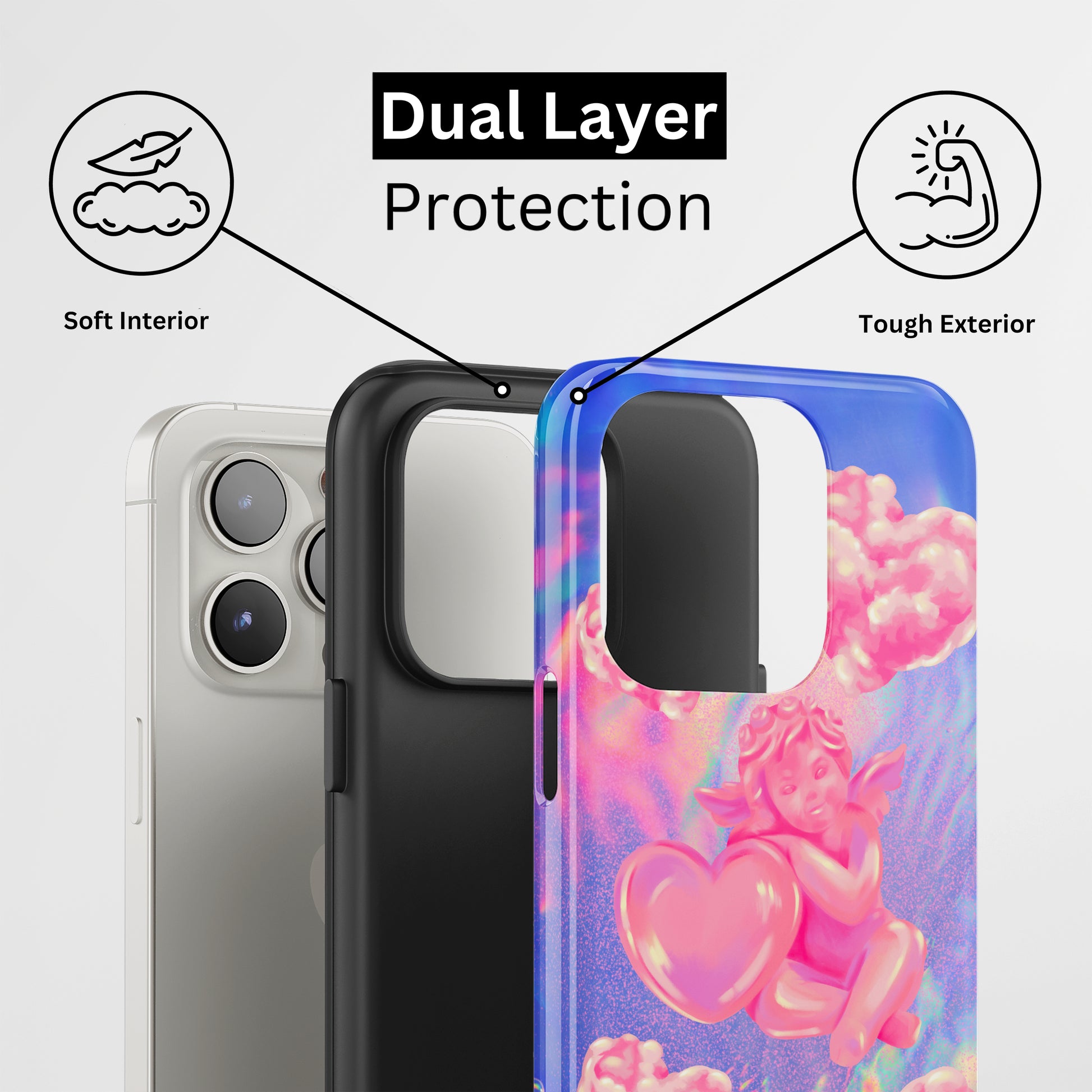 Protect your phone with a dual-layer case made for and compatible with iPhone devices. Durable, shock-absorbing, UV-protected, and wireless charging compatible. Choose matte or glossy with full-wrap 3D print and clear, open ports for easy access.