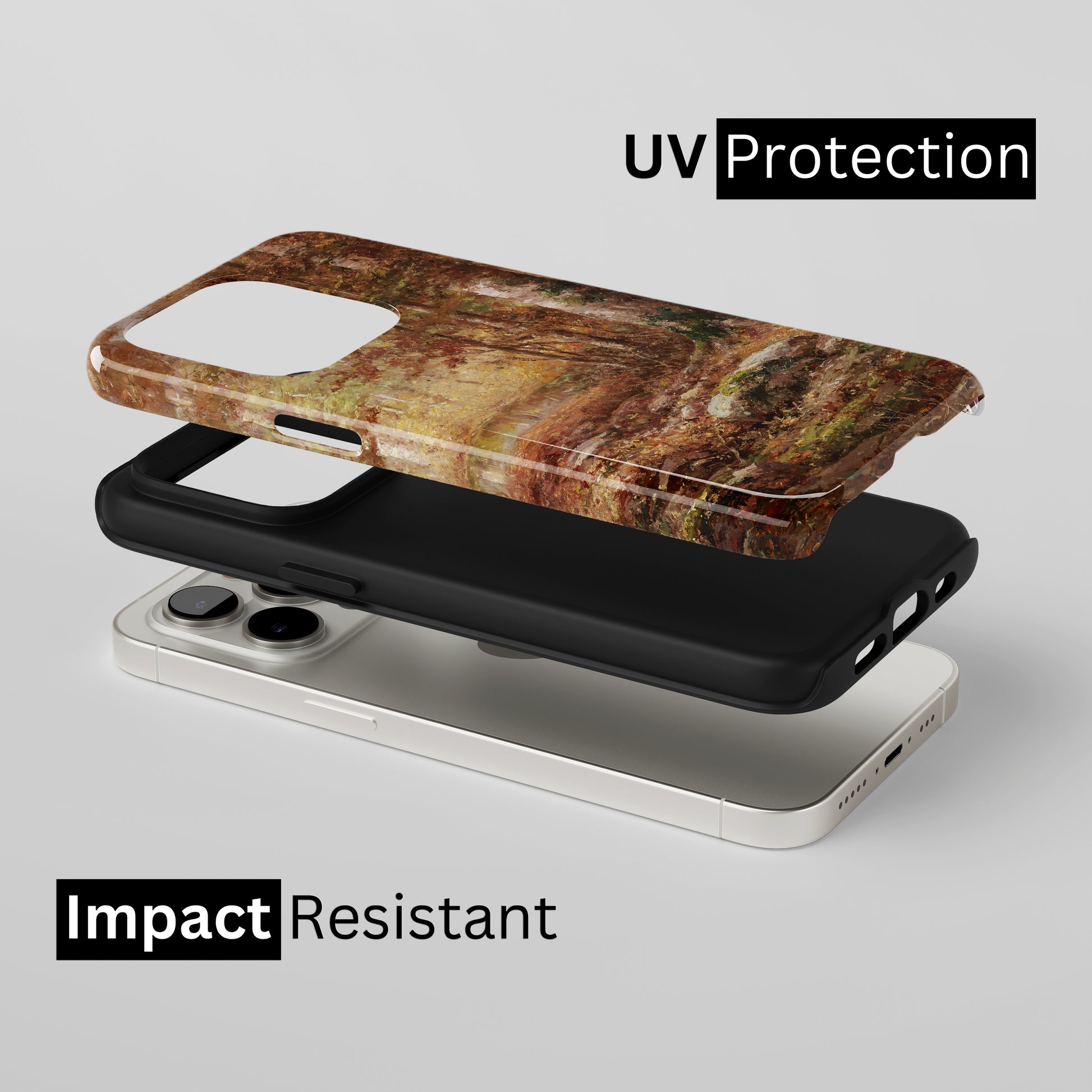 Protect your phone with a dual-layer case made for and compatible with iPhone devices. Durable, shock-absorbing, UV-protected, and wireless charging compatible. Choose matte or glossy with full-wrap 3D print and clear, open ports for easy access.