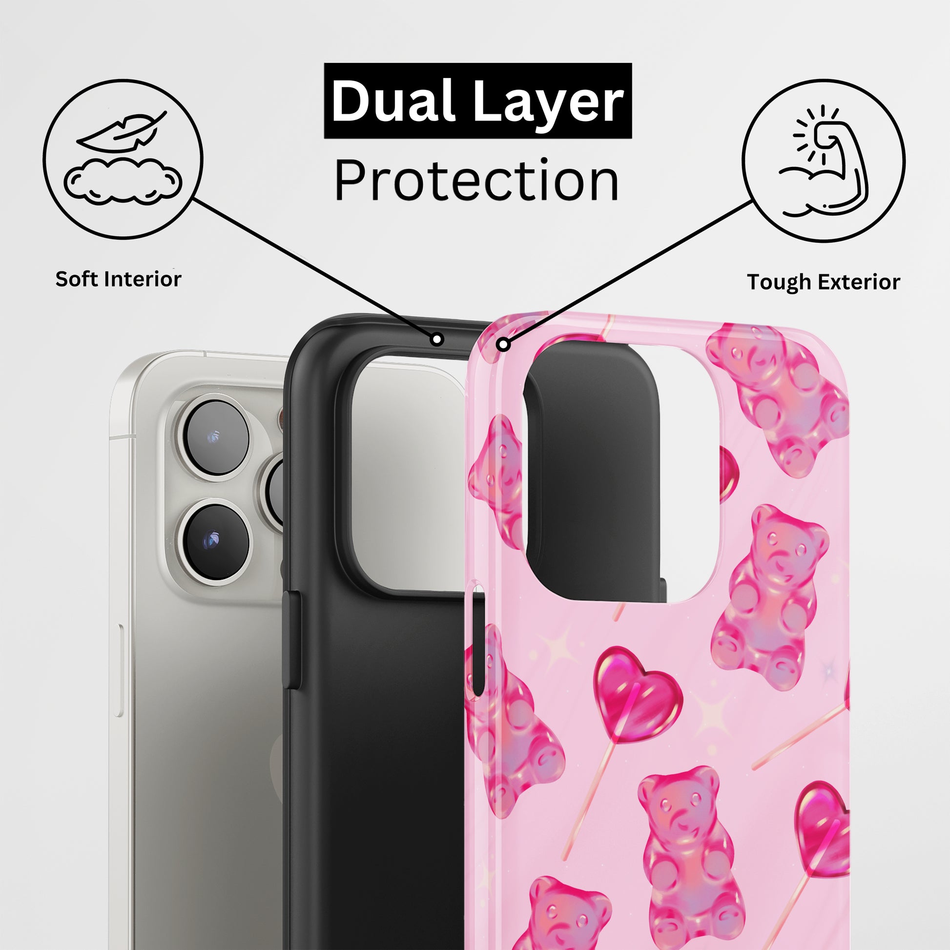 Protect your phone with a dual-layer case made for and compatible with iPhone devices. Durable, shock-absorbing, UV-protected, and wireless charging compatible. Choose matte or glossy with full-wrap 3D print and clear, open ports for easy access.