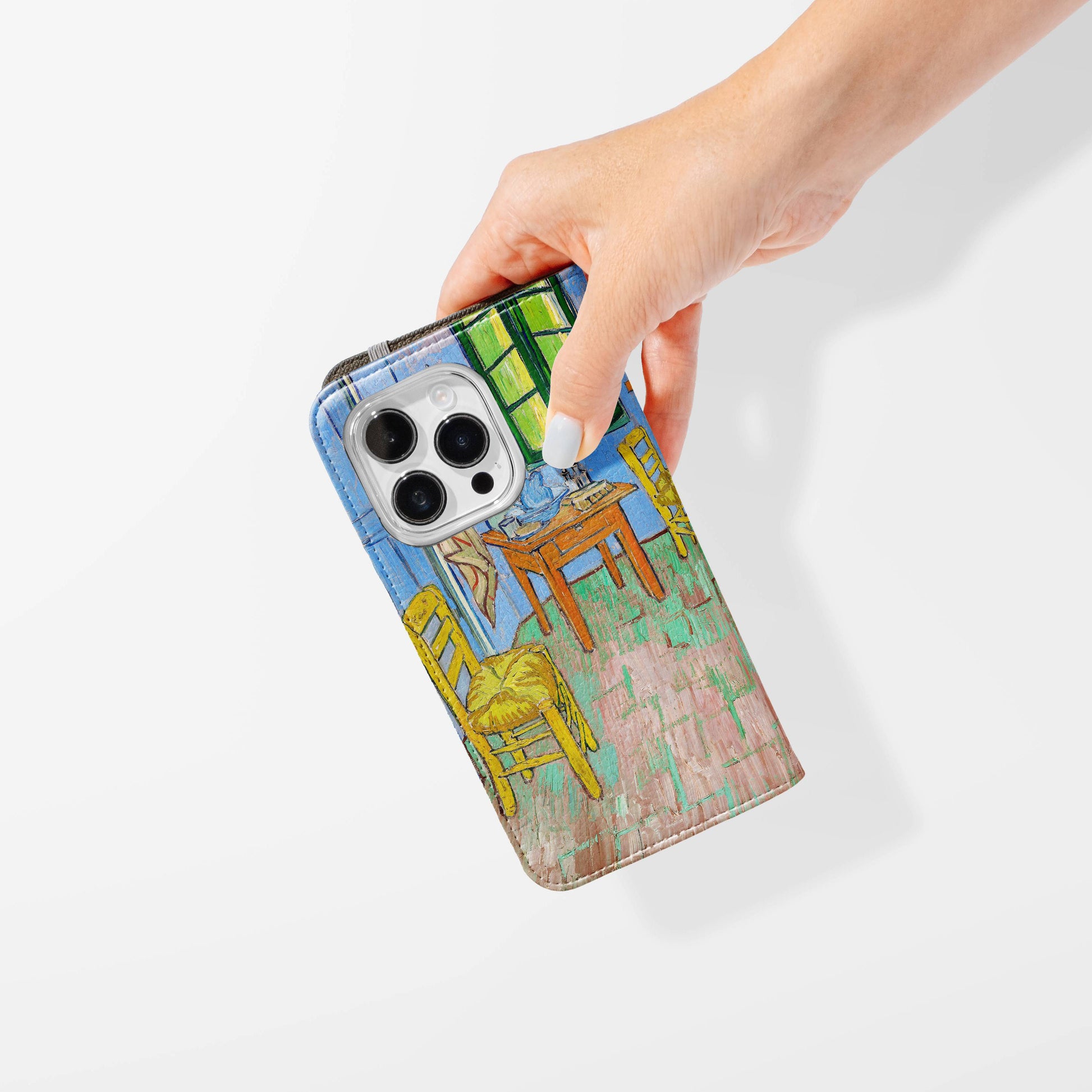 Kick your phone’s style up a notch with our vegan leather folio case! It’s got bold designs, a tough polycarbonate core, and a stretchy strap to keep it snug. Stash cards and cash, pop it up for videos, and clip on a strap for easy carrying!