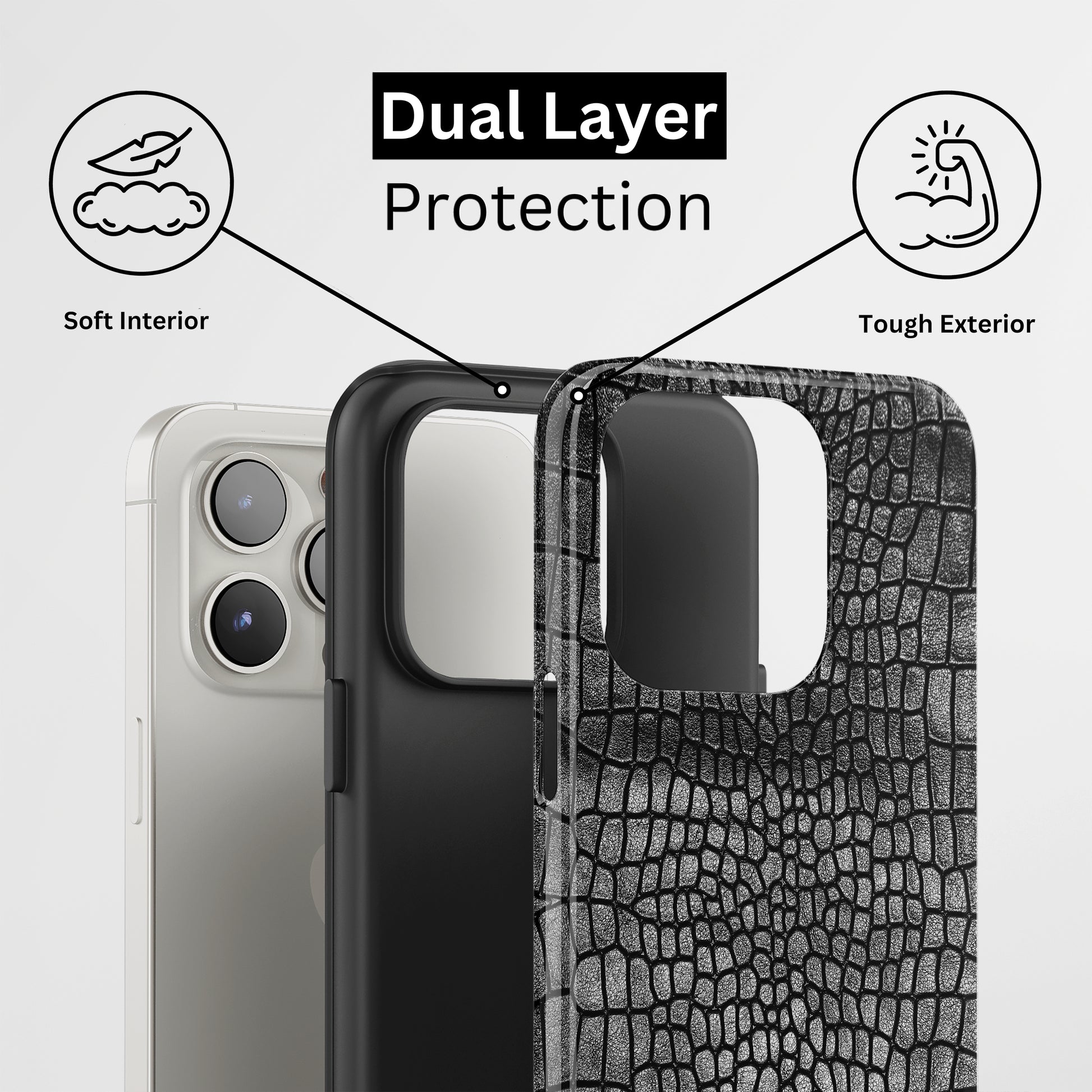 Protect your phone with a dual-layer case made for and compatible with iPhone devices. Durable, shock-absorbing, UV-protected, and wireless charging compatible. Choose matte or glossy with full-wrap 3D print and clear, open ports for easy access.