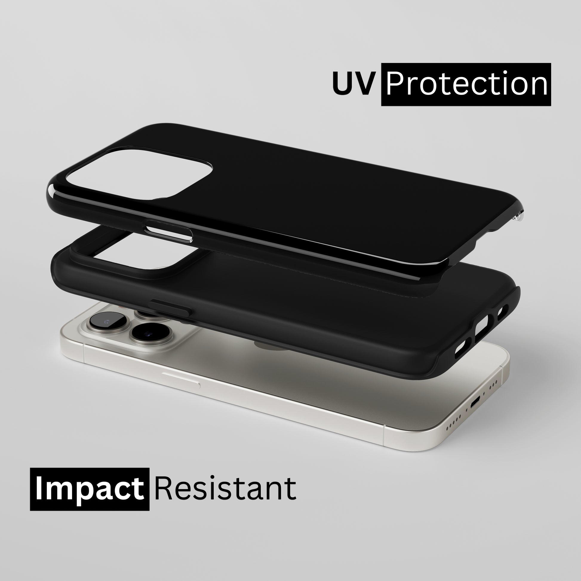 Protect your phone with a dual-layer case made for and compatible with iPhone devices. Durable, shock-absorbing, UV-protected, and wireless charging compatible. Choose matte or glossy with full-wrap 3D print and clear, open ports for easy access.
