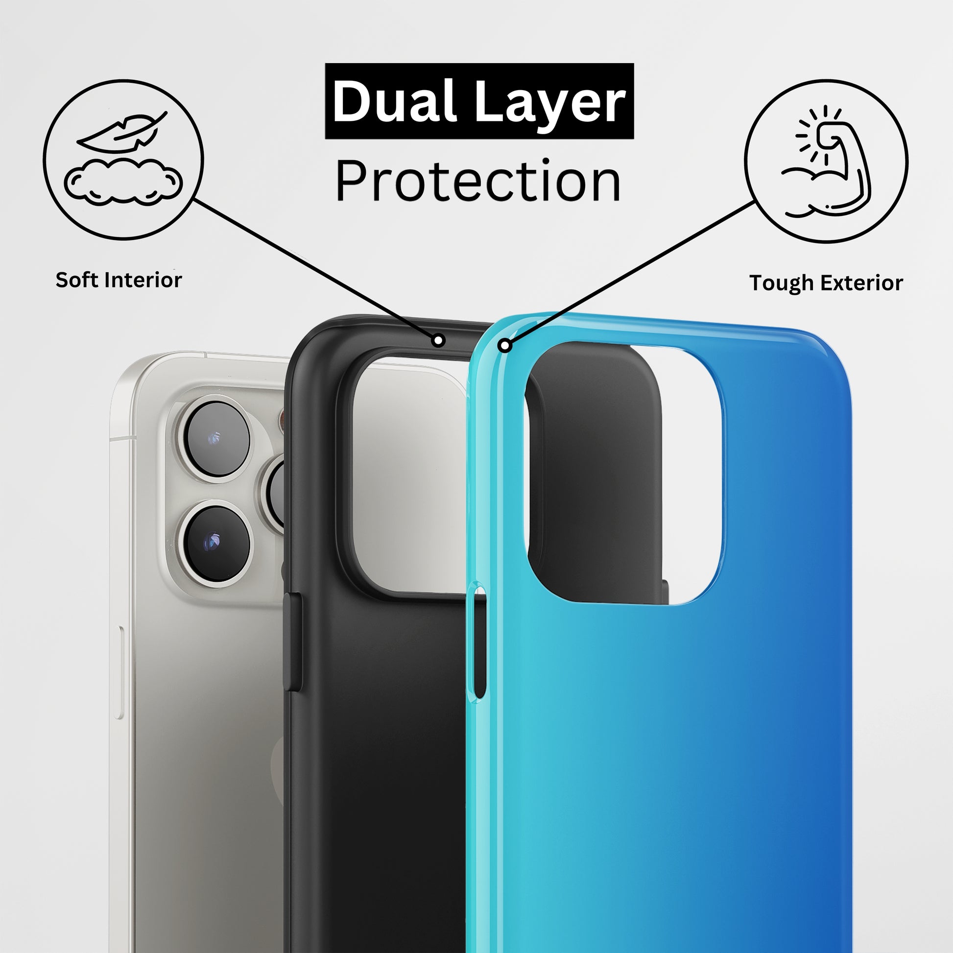 Protect your phone with a dual-layer case made for and compatible with iPhone devices. Durable, shock-absorbing, UV-protected, and wireless charging compatible. Choose matte or glossy with full-wrap 3D print and clear, open ports for easy access.