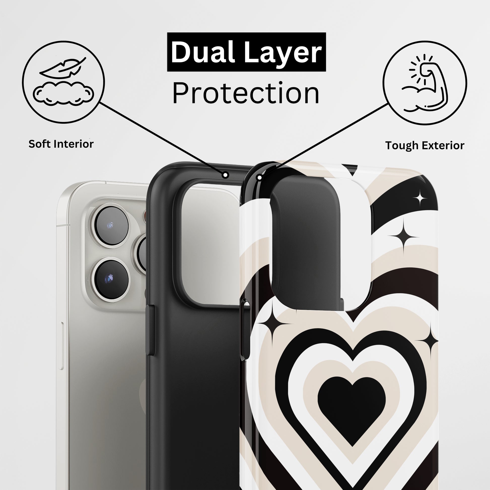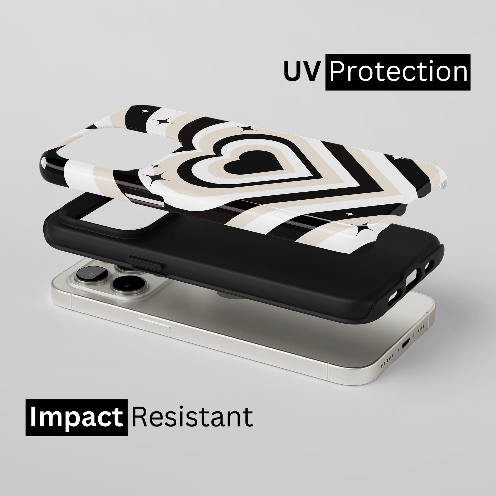 Protect your phone with a dual-layer case made for and compatible with iPhone devices. Durable, shock-absorbing, UV-protected, and wireless charging compatible. Choose matte or glossy with full-wrap 3D print and clear, open ports for easy access.