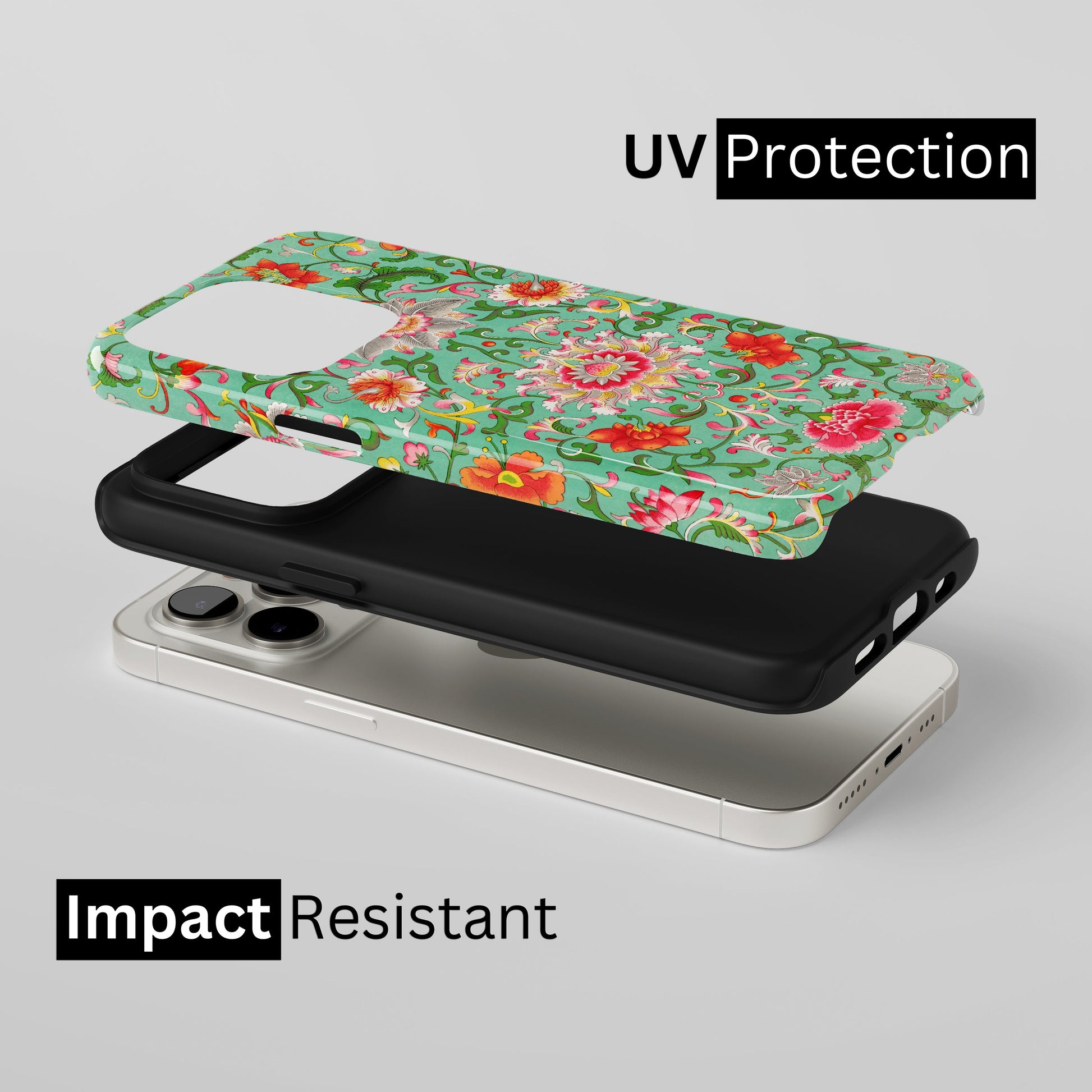 Protect your phone with a dual-layer case made for and compatible with Samsung Galaxy/Note devices. Durable, shock-absorbing, UV-protected, and wireless charging compatible. Choose matte or glossy with full-wrap 3D print and clear, open ports for easy access.