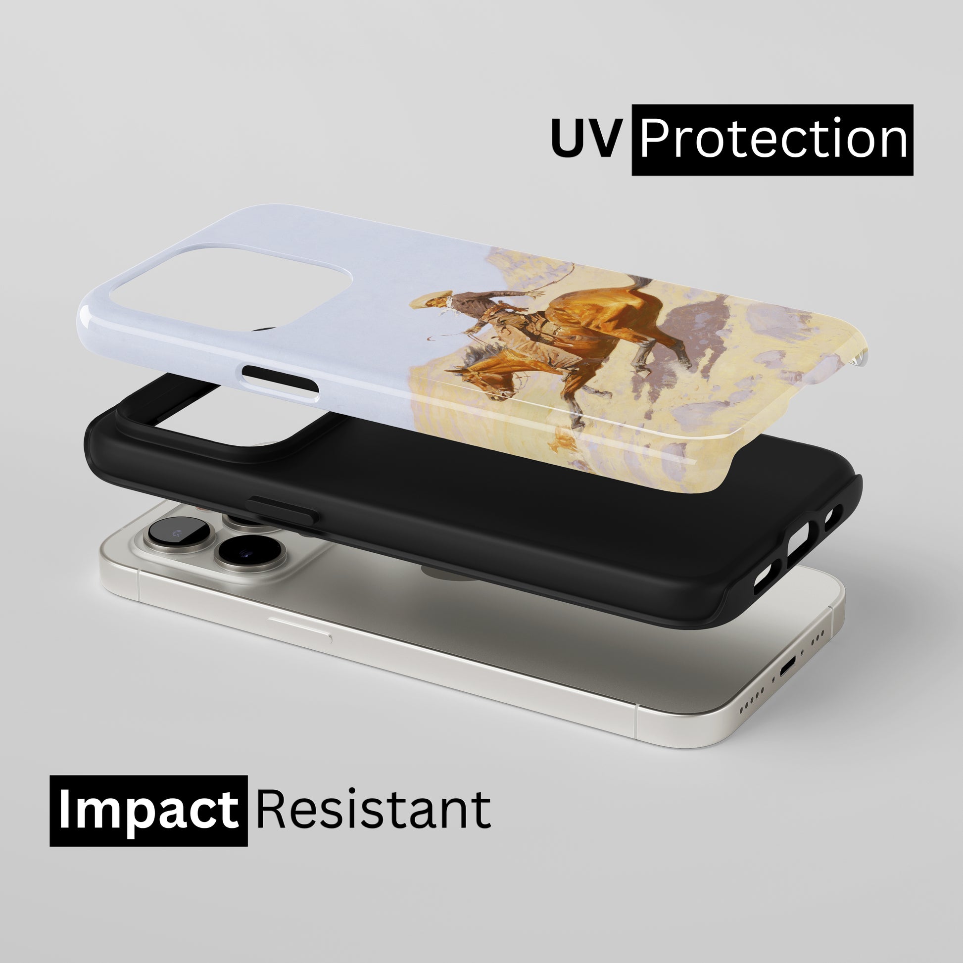 Protect your phone with a dual-layer case made for and compatible with iPhone devices. Durable, shock-absorbing, UV-protected, and wireless charging compatible. Choose matte or glossy with full-wrap 3D print and clear, open ports for easy access.