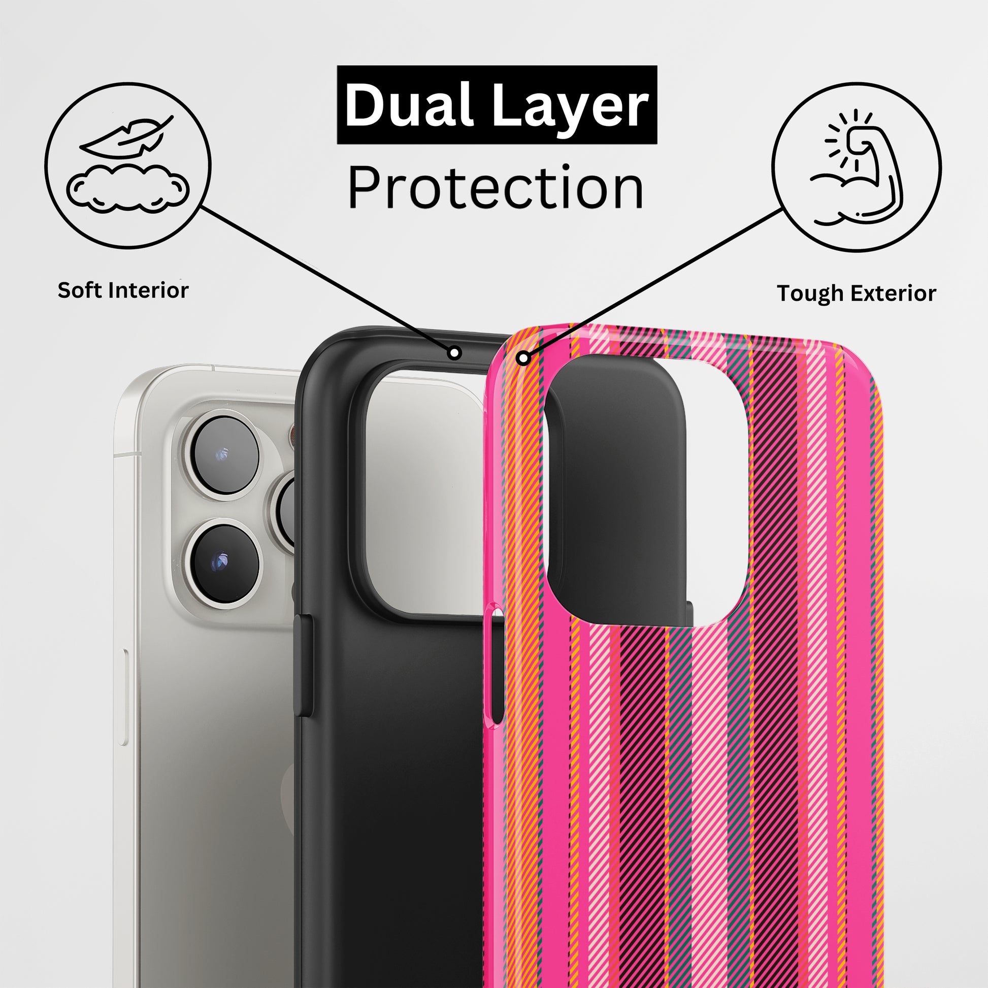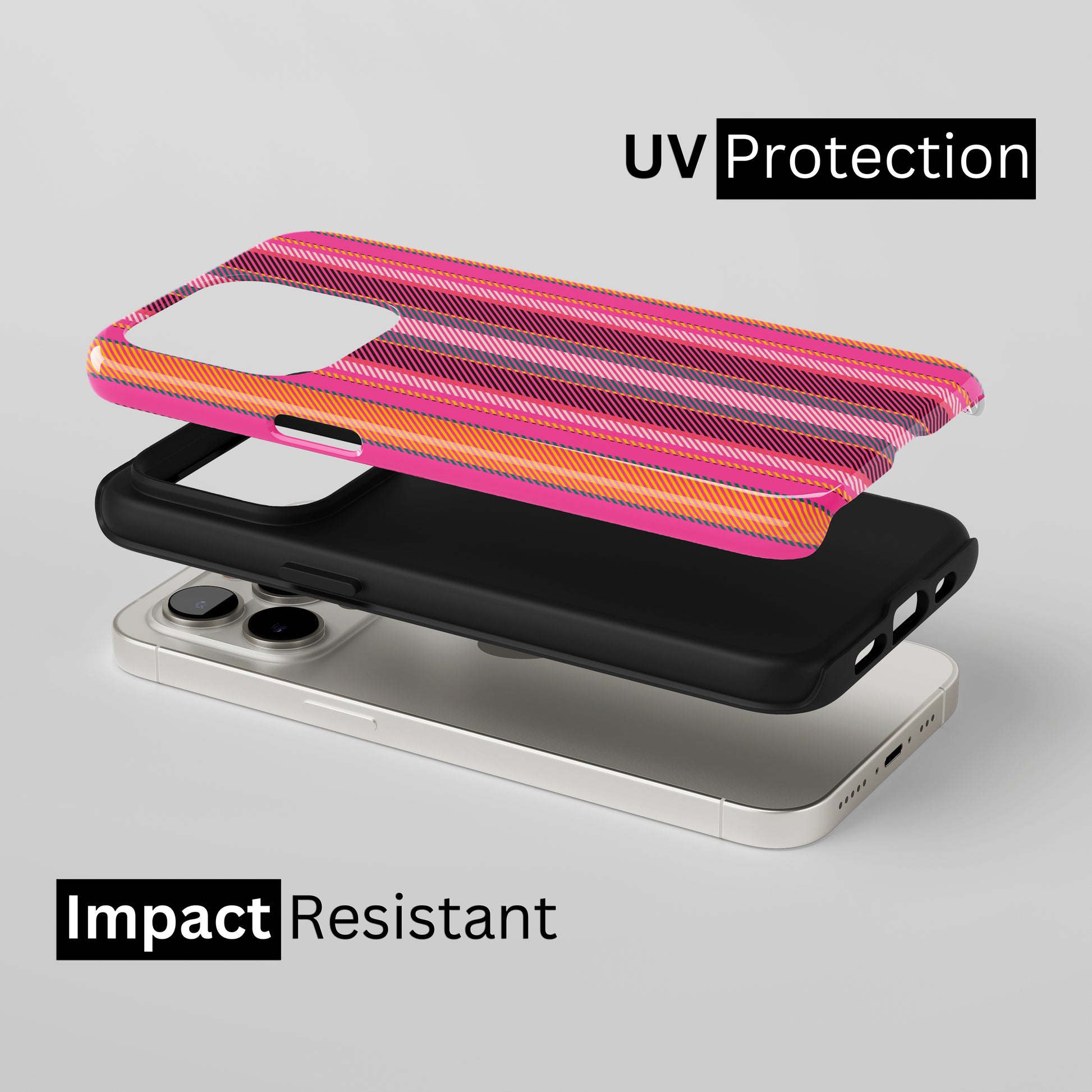 Protect your phone with a dual-layer case made for and compatible with iPhone devices. Durable, shock-absorbing, UV-protected, and wireless charging compatible. Choose matte or glossy with full-wrap 3D print and clear, open ports for easy access.