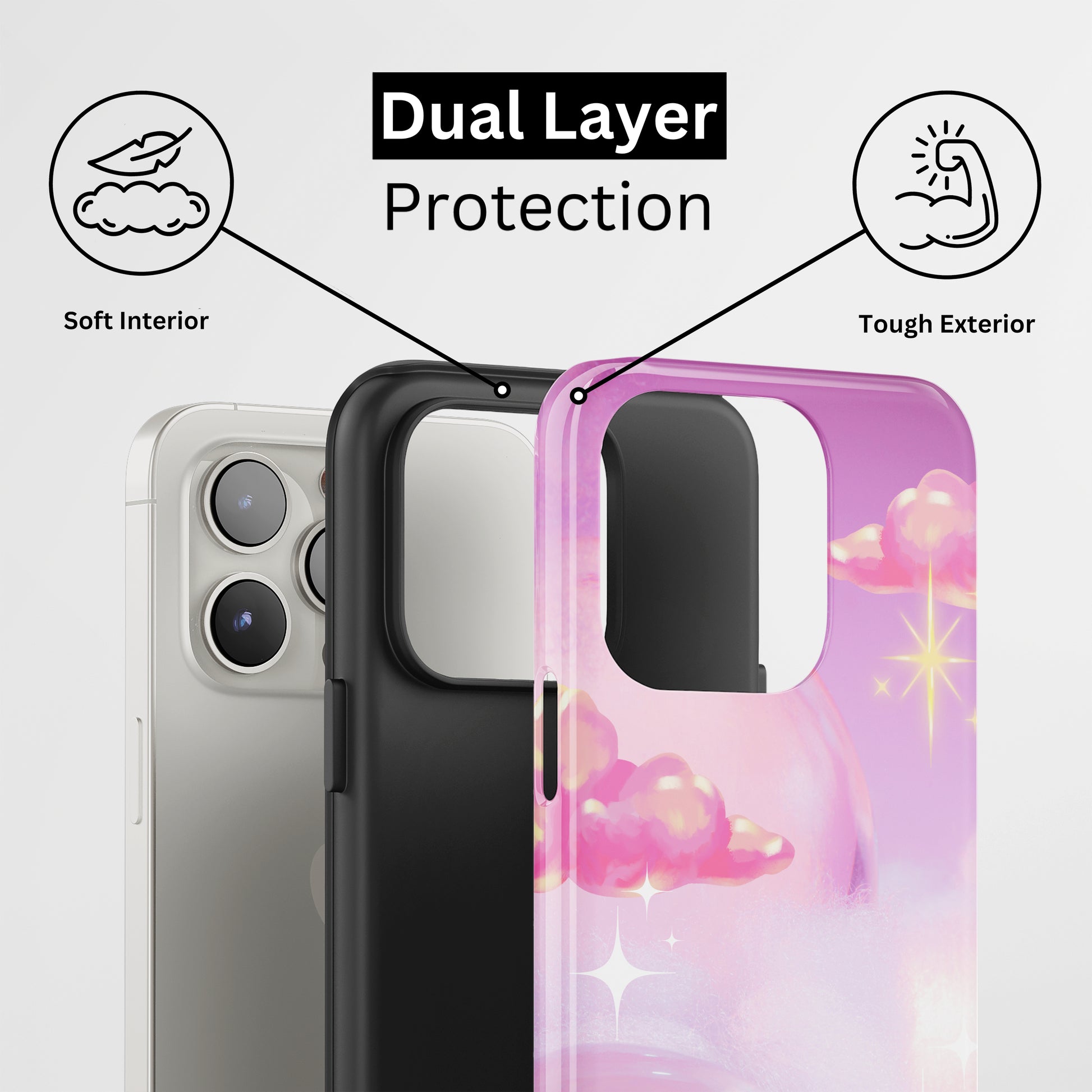 Protect your phone with a dual-layer case made for and compatible with iPhone devices. Durable, shock-absorbing, UV-protected, and wireless charging compatible. Choose matte or glossy with full-wrap 3D print and clear, open ports for easy access.