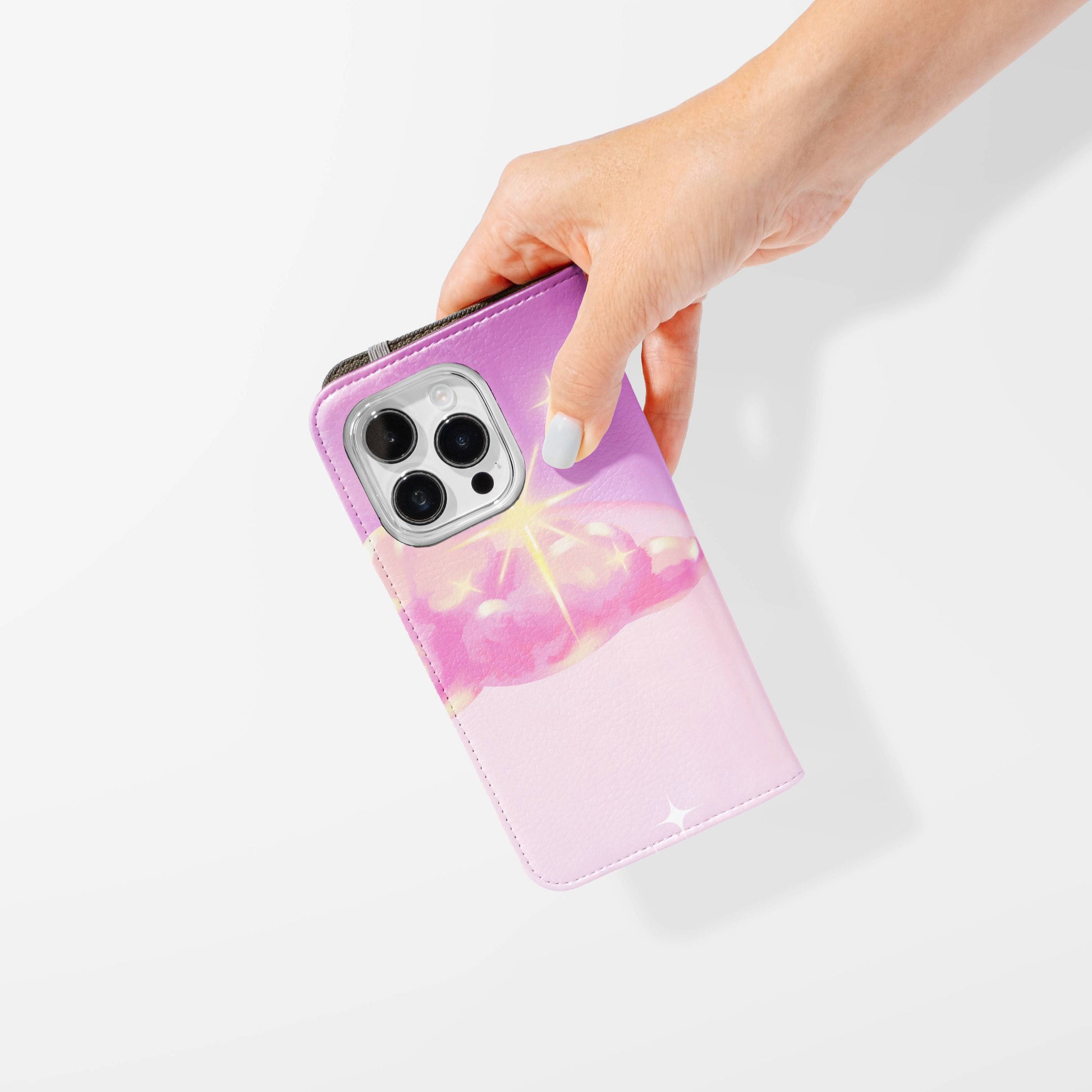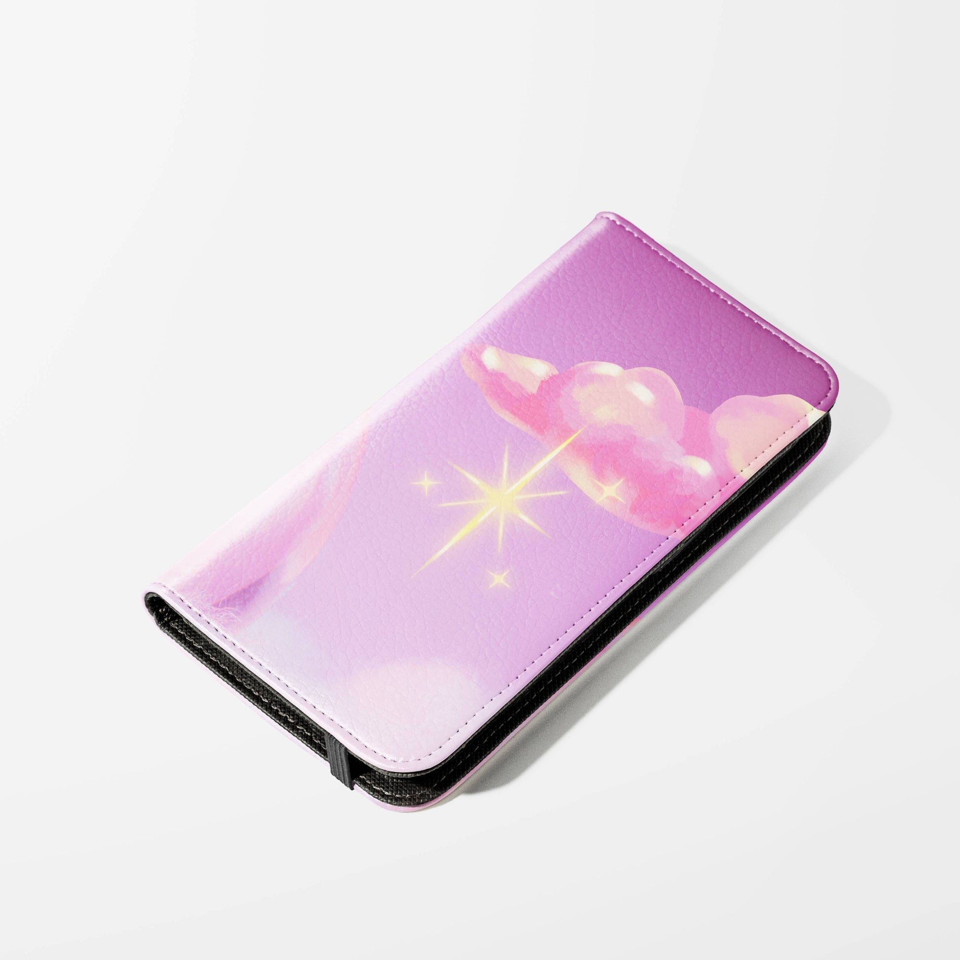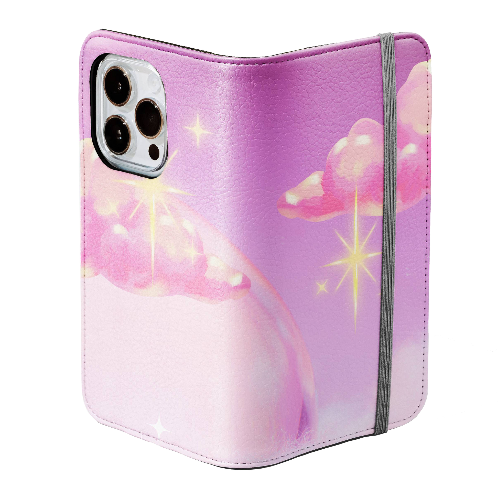 Kick your phone’s style up a notch with our vegan leather folio case! It’s got bold designs, a tough polycarbonate core, and a stretchy strap to keep it snug. Stash cards and cash, pop it up for videos, and clip on a strap for easy carrying!