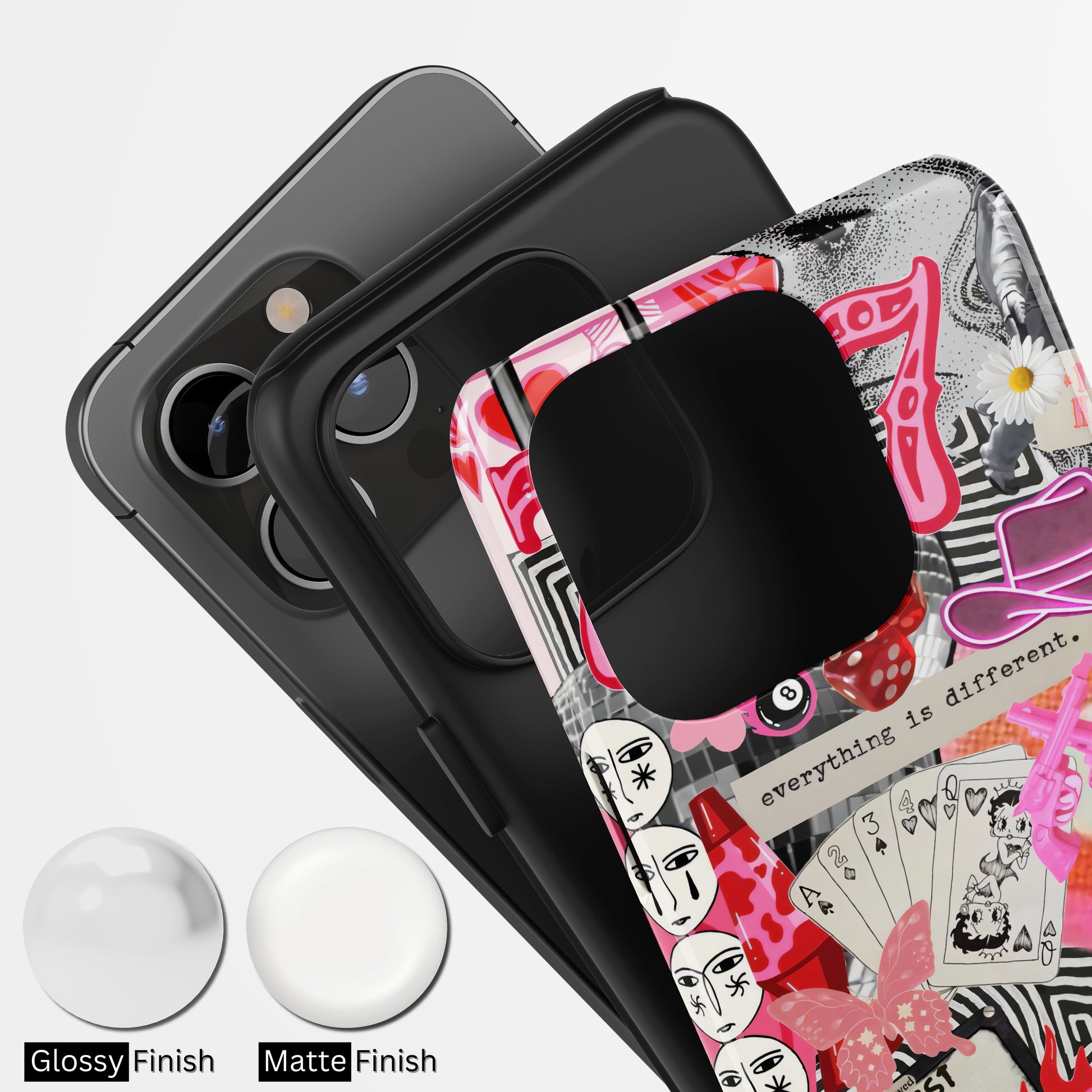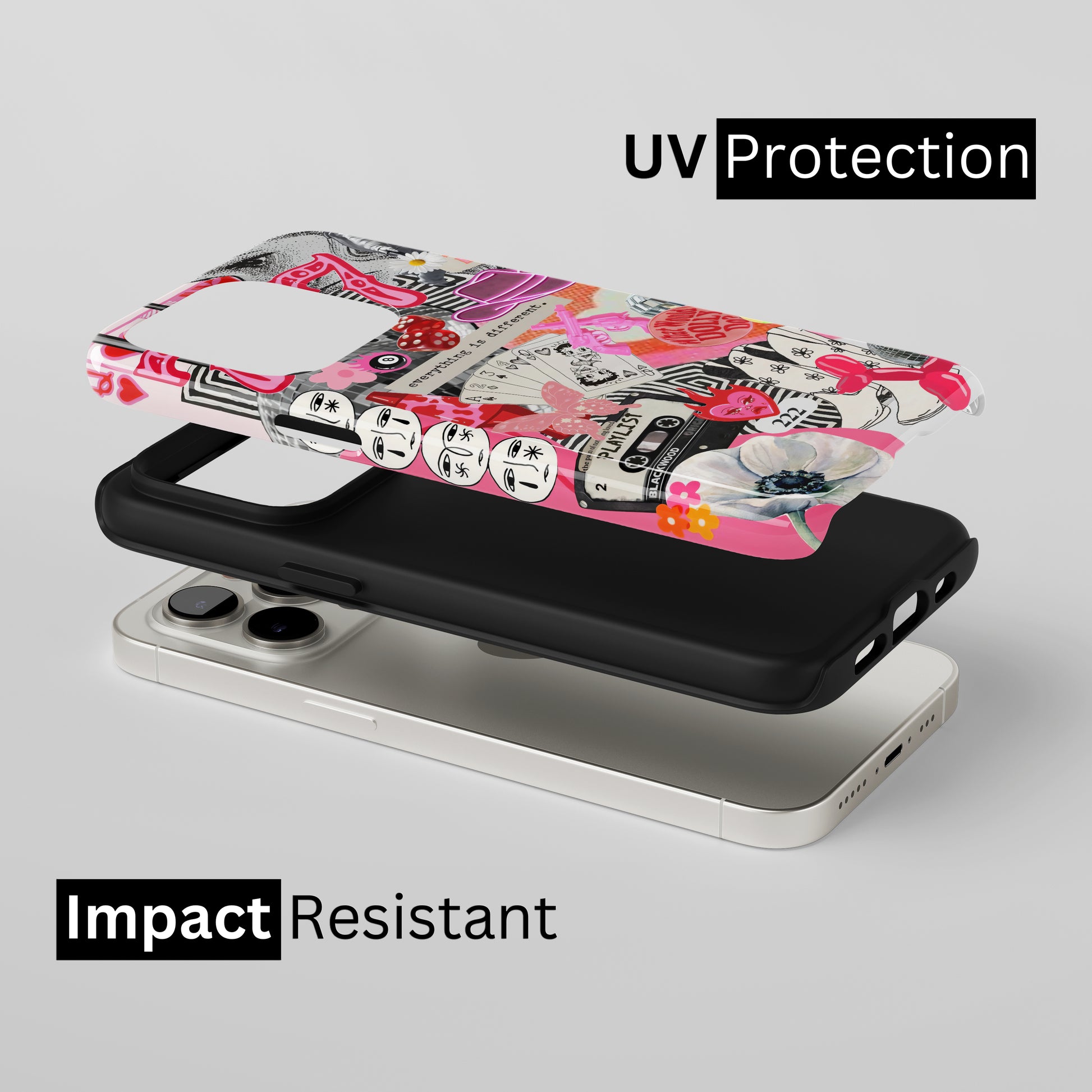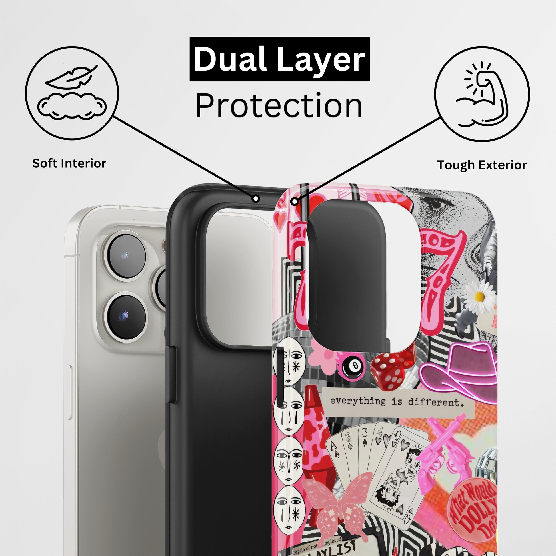 Protect your phone with a dual-layer case made for and compatible with iPhone devices. Durable, shock-absorbing, UV-protected, and wireless charging compatible. Choose matte or glossy with full-wrap 3D print and clear, open ports for easy access.