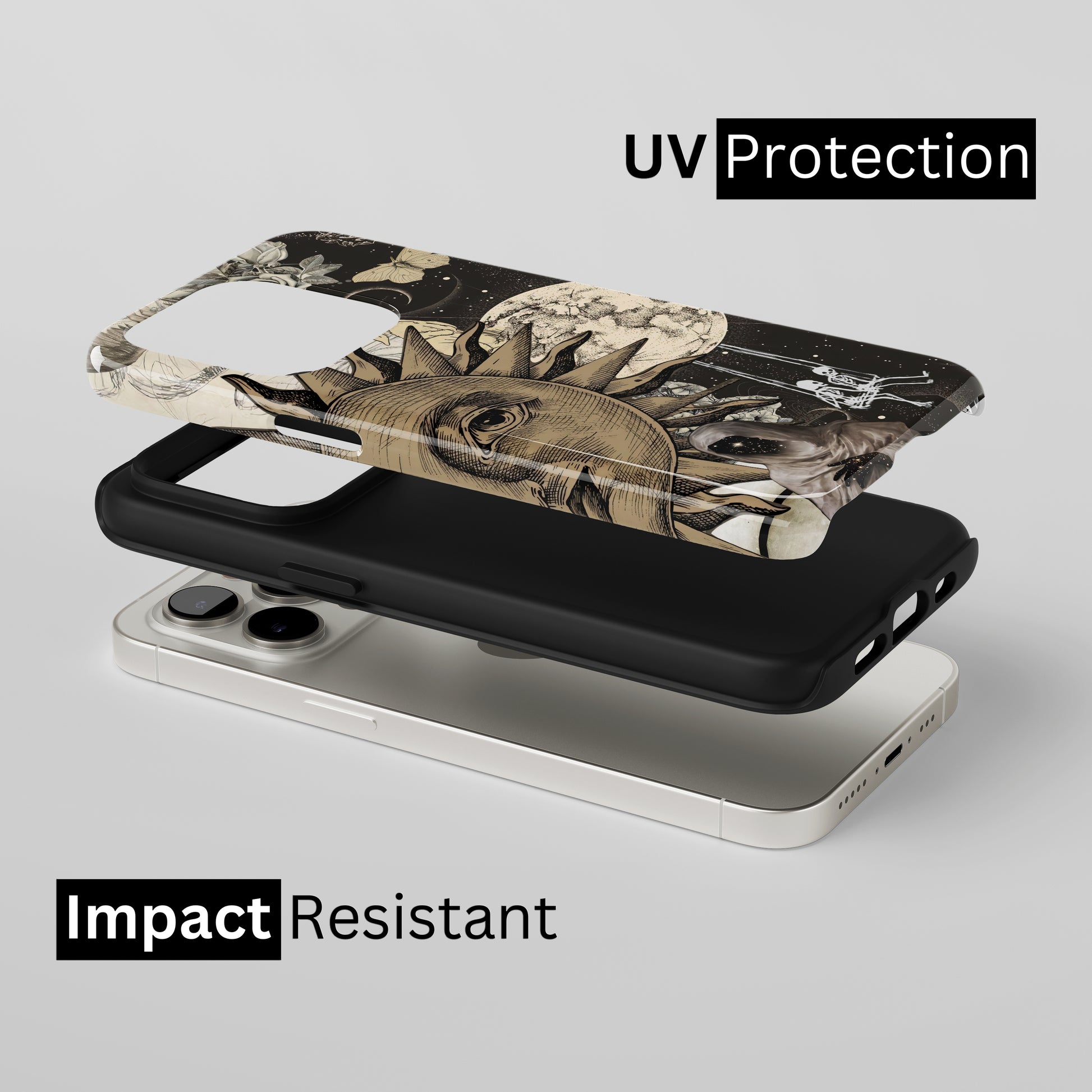 Protect your phone with a dual-layer case made for and compatible with iPhone devices. Durable, shock-absorbing, UV-protected, and wireless charging compatible. Choose matte or glossy with full-wrap 3D print and clear, open ports for easy access.
