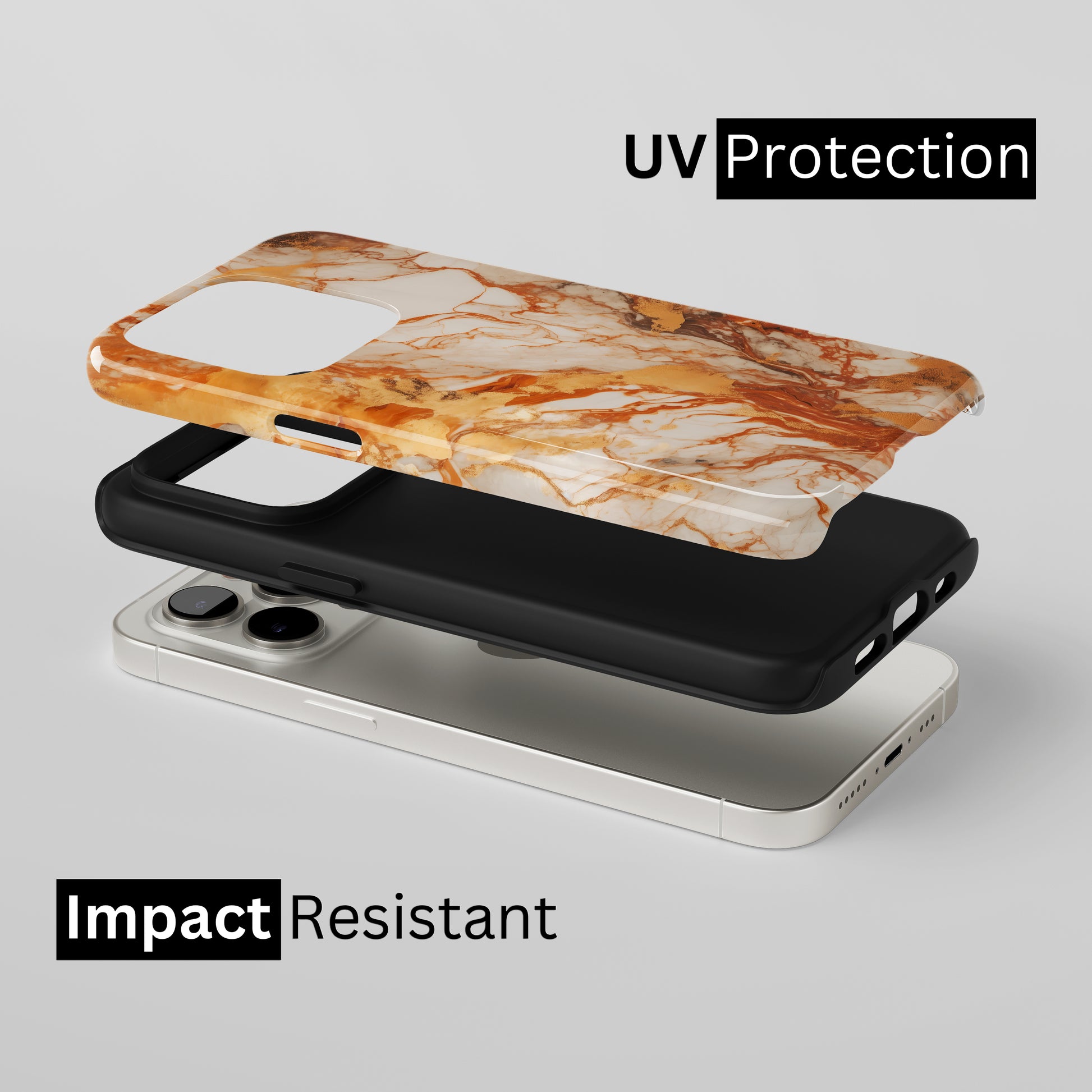 Protect your phone with a dual-layer case made for and compatible with iPhone devices. Durable, shock-absorbing, UV-protected, and wireless charging compatible. Choose matte or glossy with full-wrap 3D print and clear, open ports for easy access.
