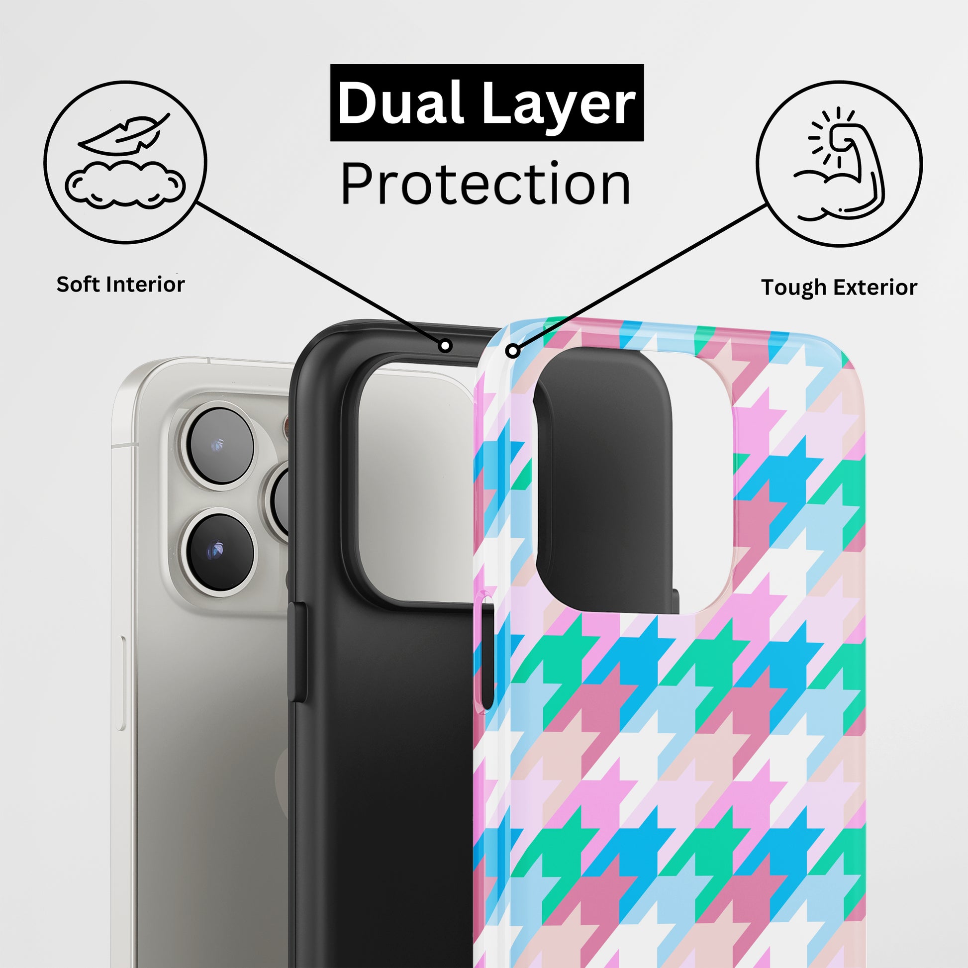 Protect your phone with a dual-layer case made for and compatible with iPhone devices. Durable, shock-absorbing, UV-protected, and wireless charging compatible. Choose matte or glossy with full-wrap 3D print and clear, open ports for easy access.