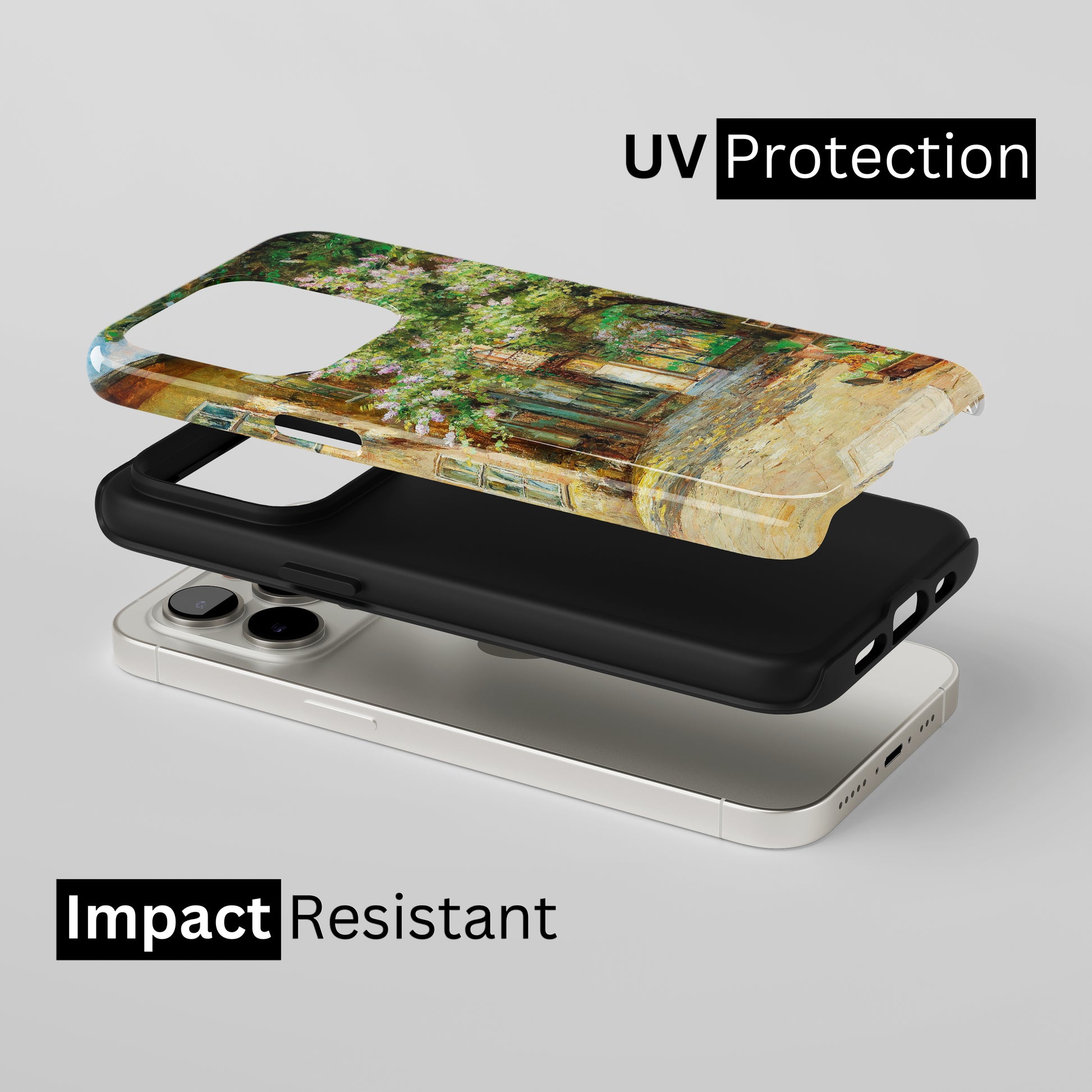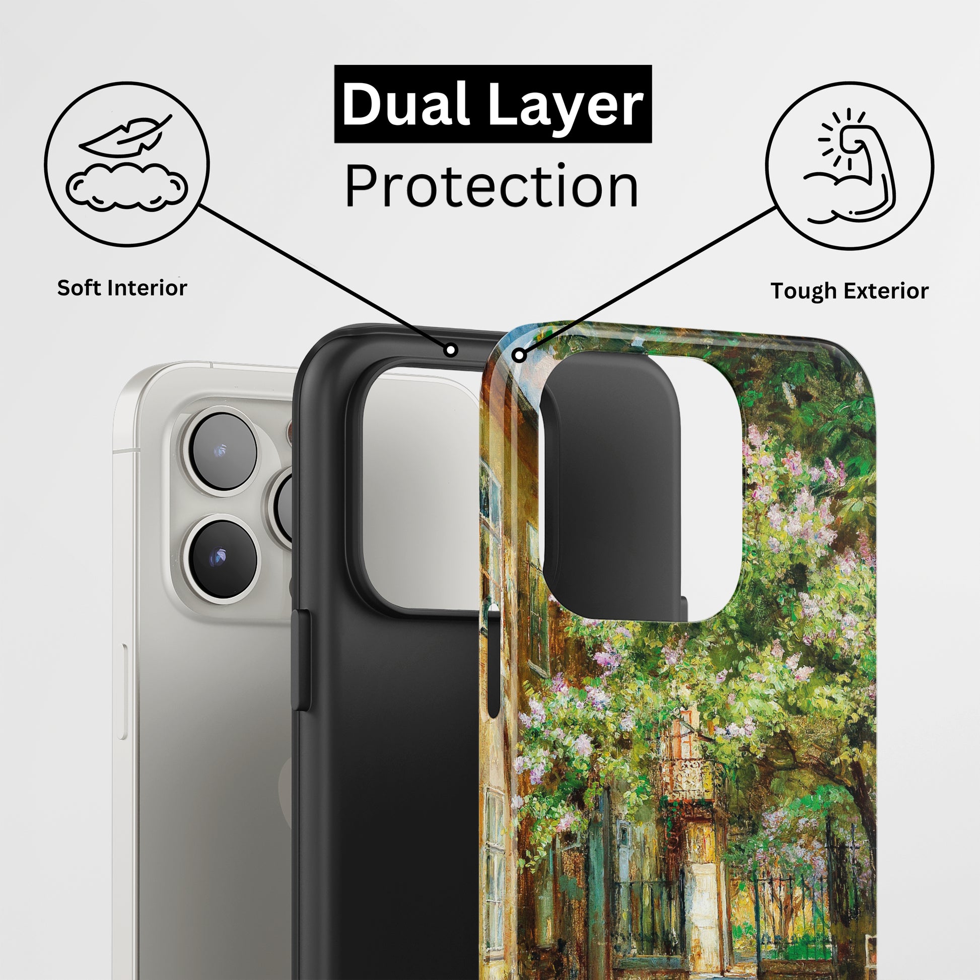 Protect your phone with a dual-layer case made for and compatible with iPhone devices. Durable, shock-absorbing, UV-protected, and wireless charging compatible. Choose matte or glossy with full-wrap 3D print and clear, open ports for easy access.