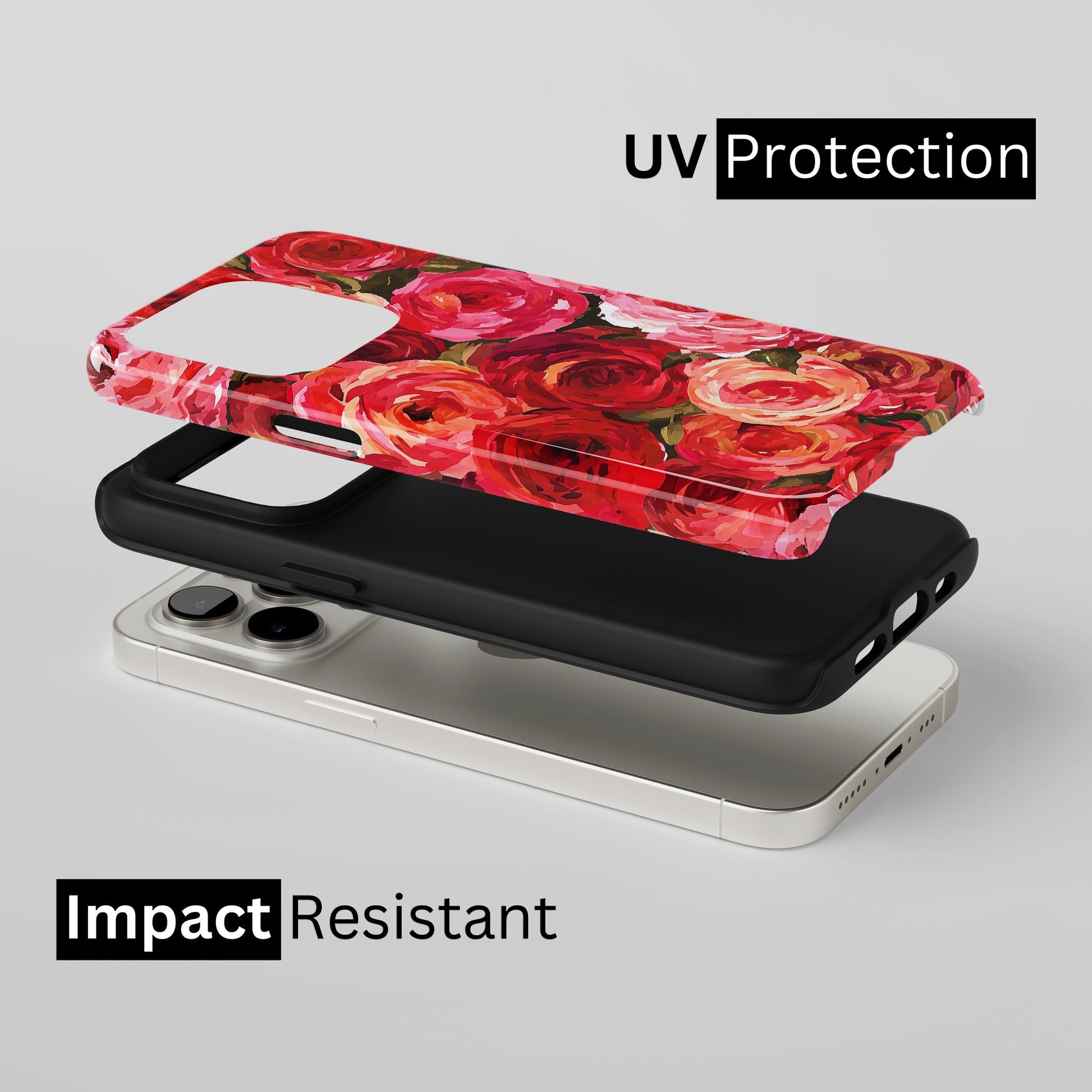 Protect your phone with a dual-layer case made for and compatible with iPhone devices. Durable, shock-absorbing, UV-protected, and wireless charging compatible. Choose matte or glossy with full-wrap 3D print and clear, open ports for easy access.