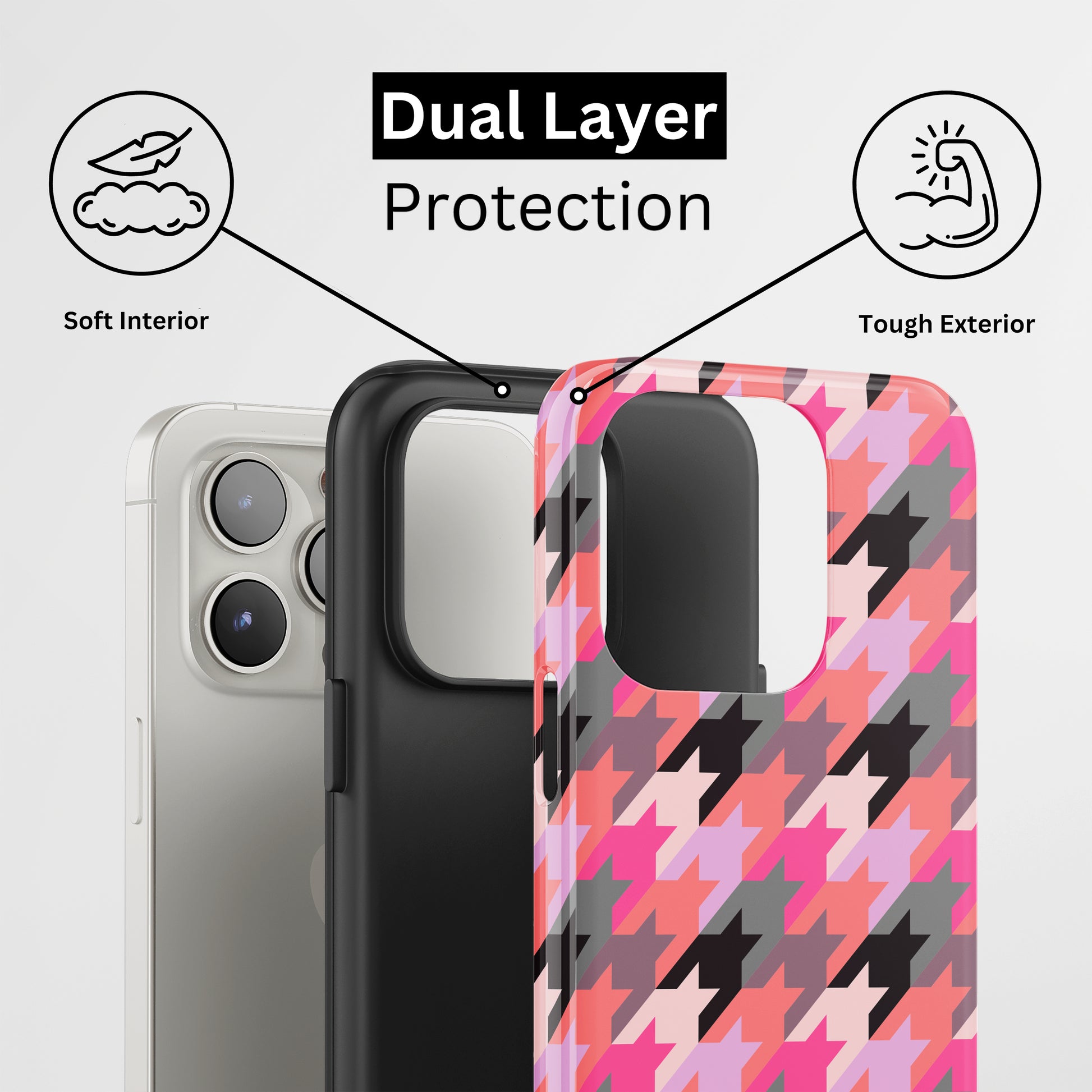 Protect your phone with a dual-layer case made for and compatible with iPhone devices. Durable, shock-absorbing, UV-protected, and wireless charging compatible. Choose matte or glossy with full-wrap 3D print and clear, open ports for easy access.