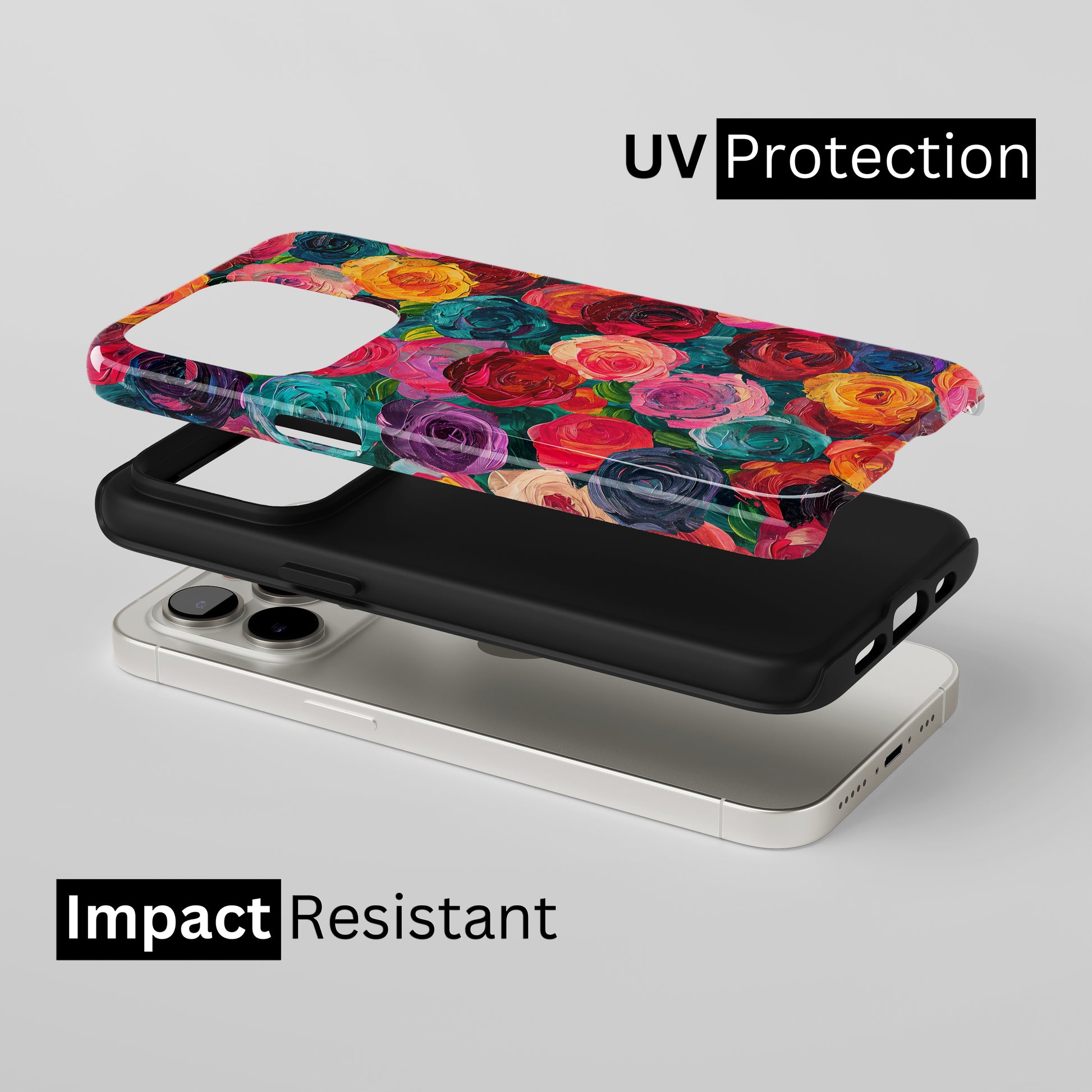 Protect your phone with a dual-layer case made for and compatible with iPhone devices. Durable, shock-absorbing, UV-protected, and wireless charging compatible. Choose matte or glossy with full-wrap 3D print and clear, open ports for easy access.