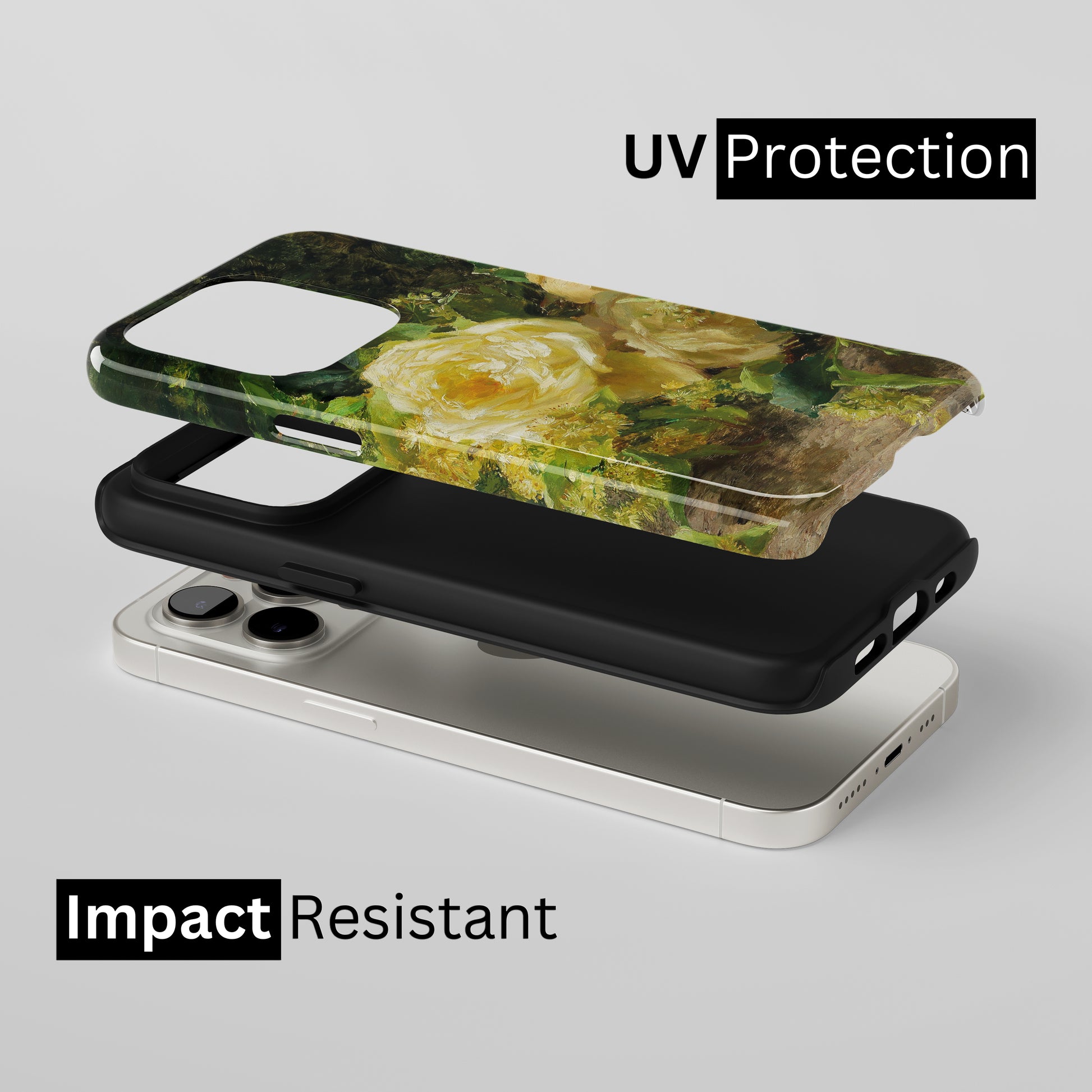 Protect your phone with a dual-layer case made for and compatible with iPhone devices. Durable, shock-absorbing, UV-protected, and wireless charging compatible. Choose matte or glossy with full-wrap 3D print and clear, open ports for easy access.