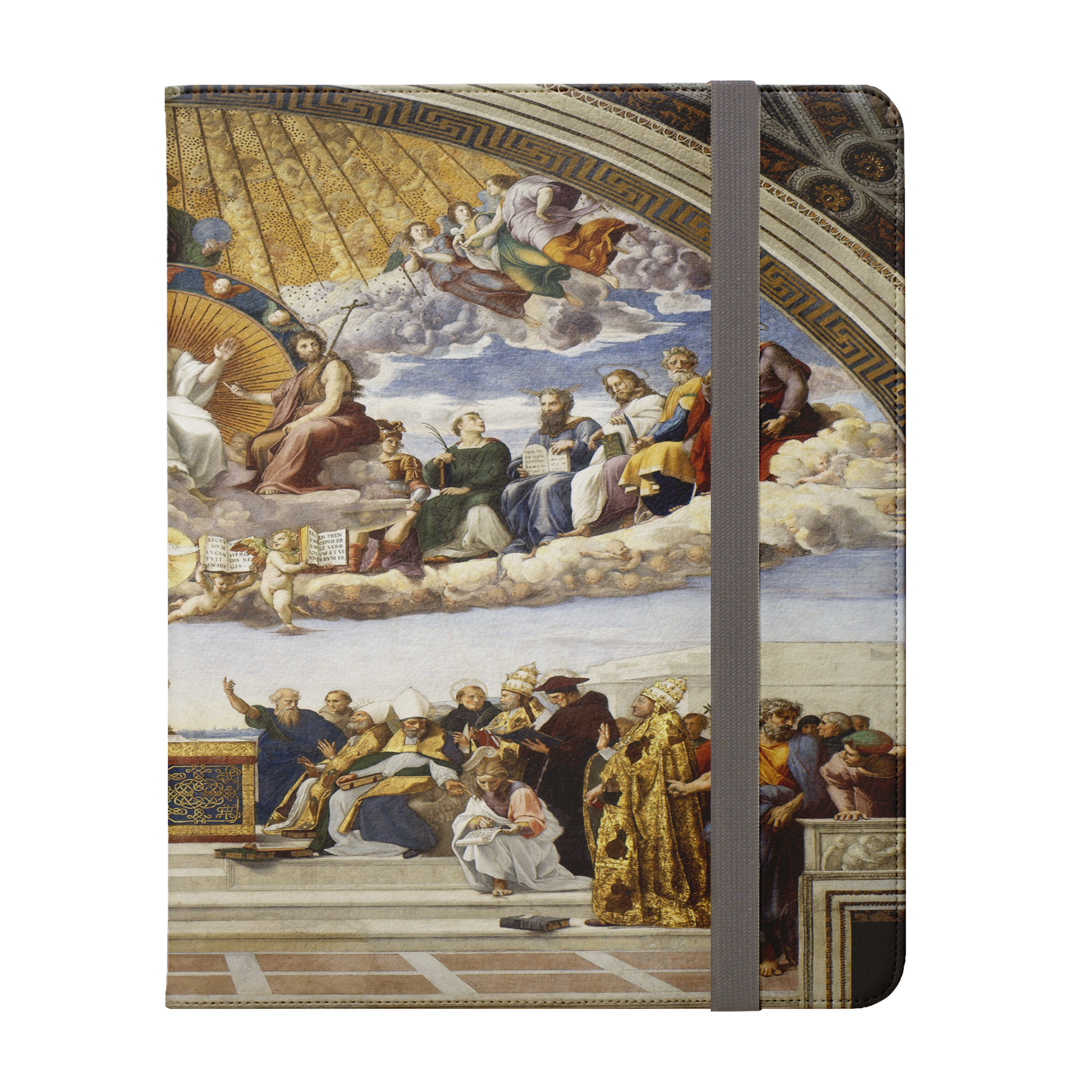 This iPad Pro compatible folio case offers 360° protection with premium soft vegan leather. Features a modern grey elastic fastening, open ports, five pockets for cards and cash, plus a stand for easy media viewing.