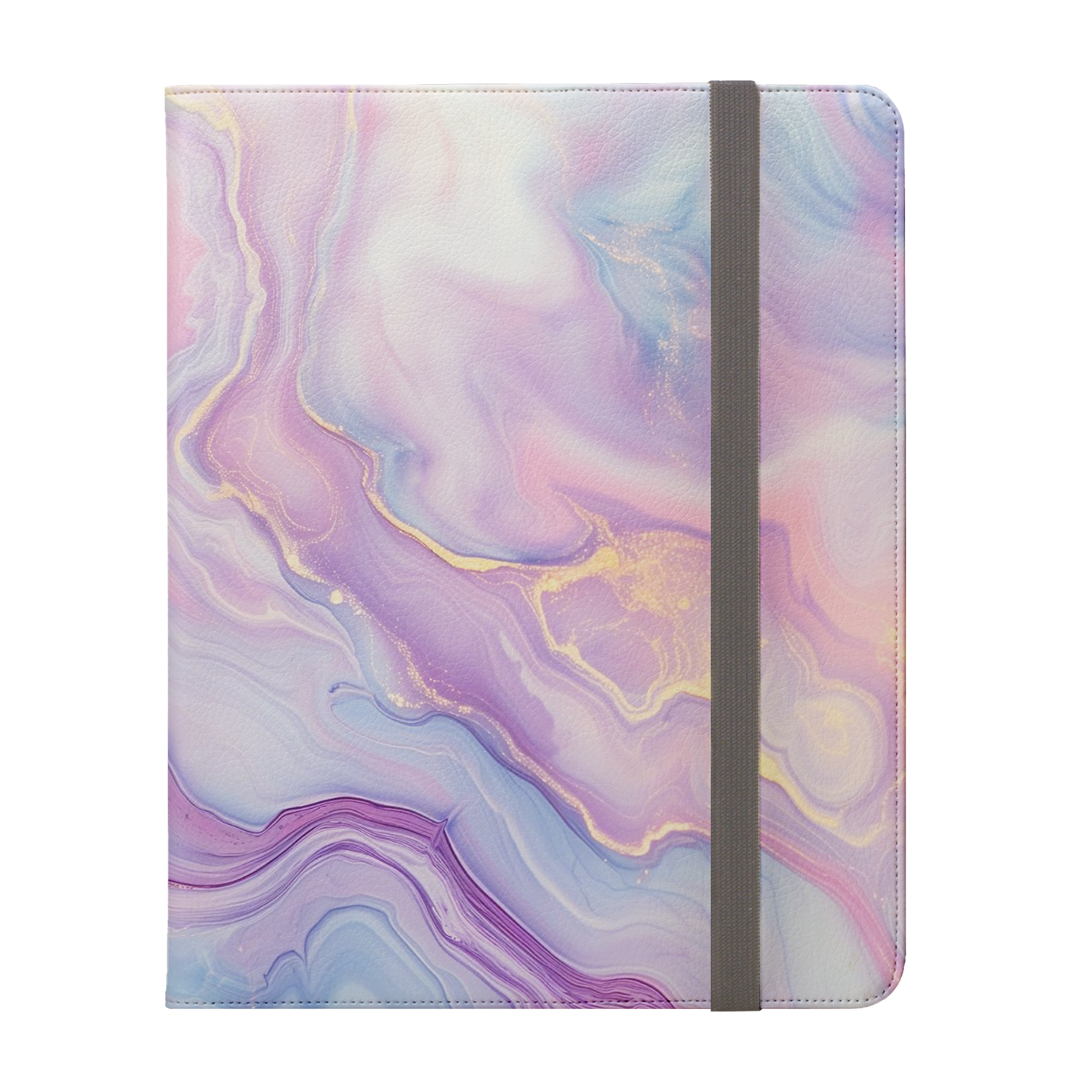 This iPad Pro compatible folio case offers 360° protection with premium soft vegan leather. Features a modern grey elastic fastening, open ports, five pockets for cards and cash, plus a stand for easy media viewing.