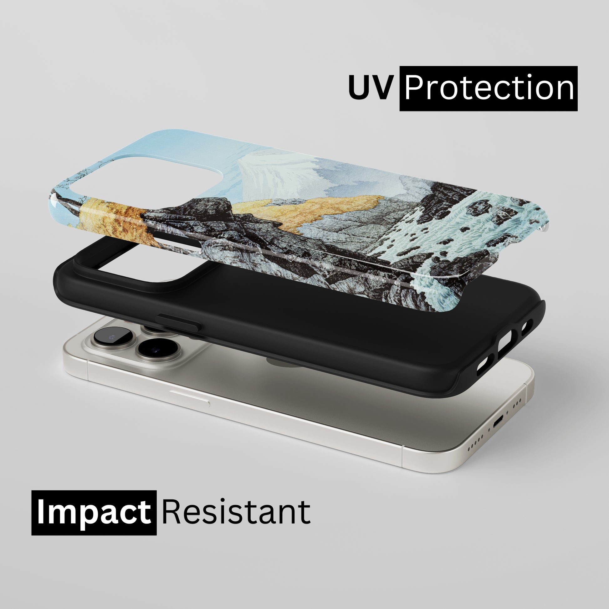 Protect your phone with a dual-layer case made for and compatible with iPhone devices. Durable, shock-absorbing, UV-protected, and wireless charging compatible. Choose matte or glossy with full-wrap 3D print and clear, open ports for easy access.