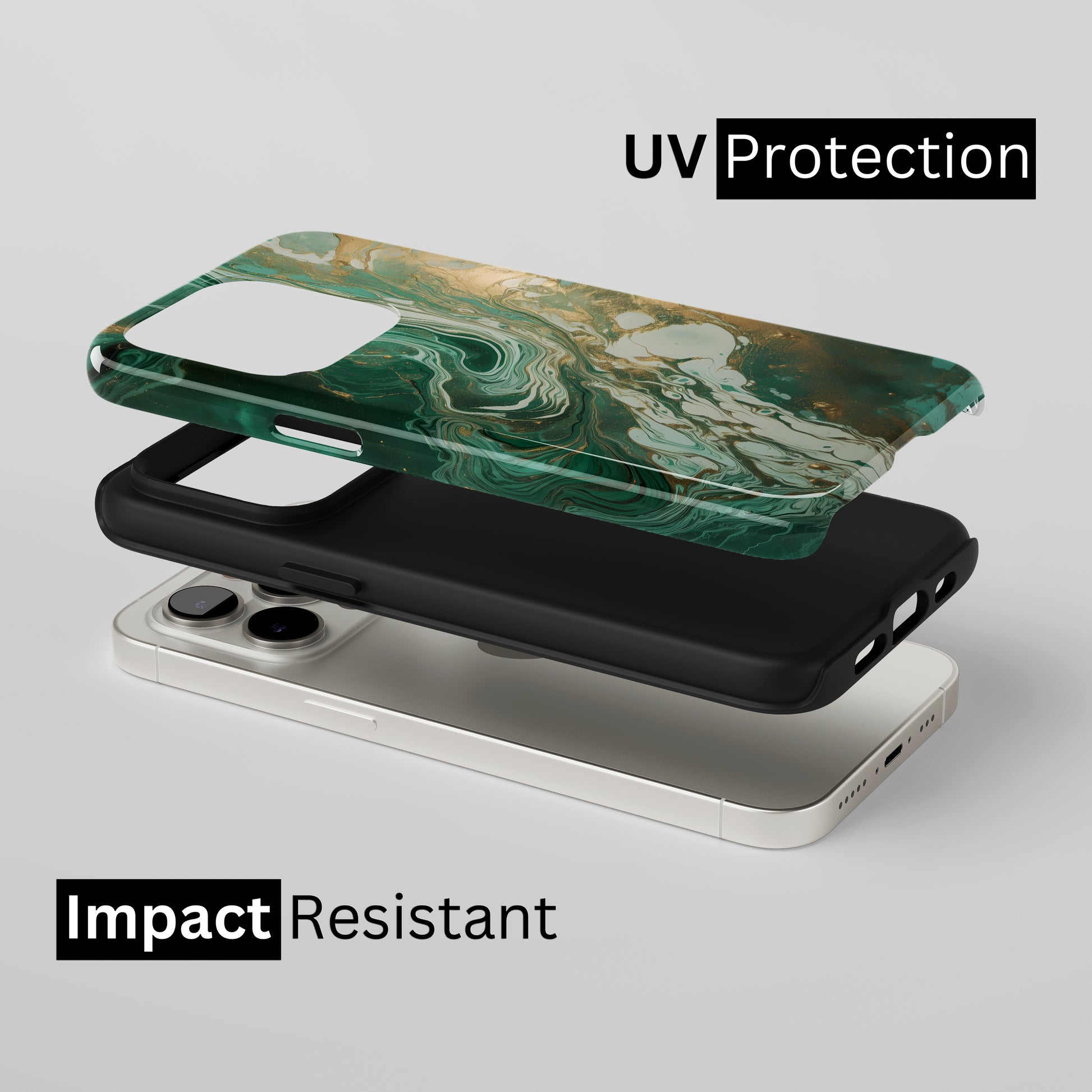 Protect your phone with a dual-layer case made for and compatible with iPhone devices. Durable, shock-absorbing, UV-protected, and wireless charging compatible. Choose matte or glossy with full-wrap 3D print and clear, open ports for easy access.