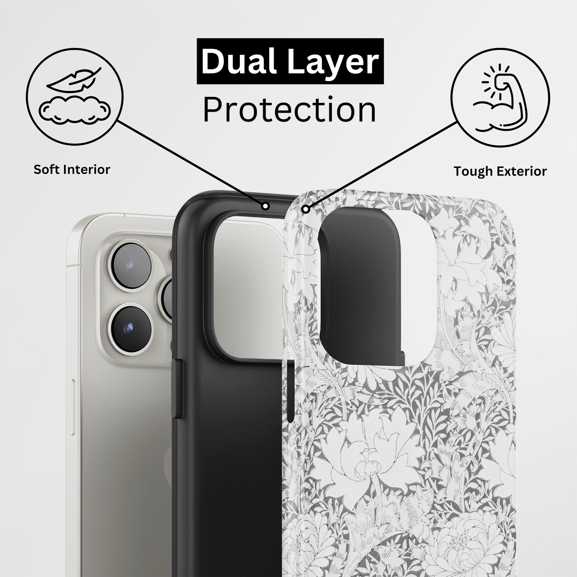 Protect your phone with a dual-layer case made for and compatible with iPhone devices. Durable, shock-absorbing, UV-protected, and wireless charging compatible. Choose matte or glossy with full-wrap 3D print and clear, open ports for easy access.