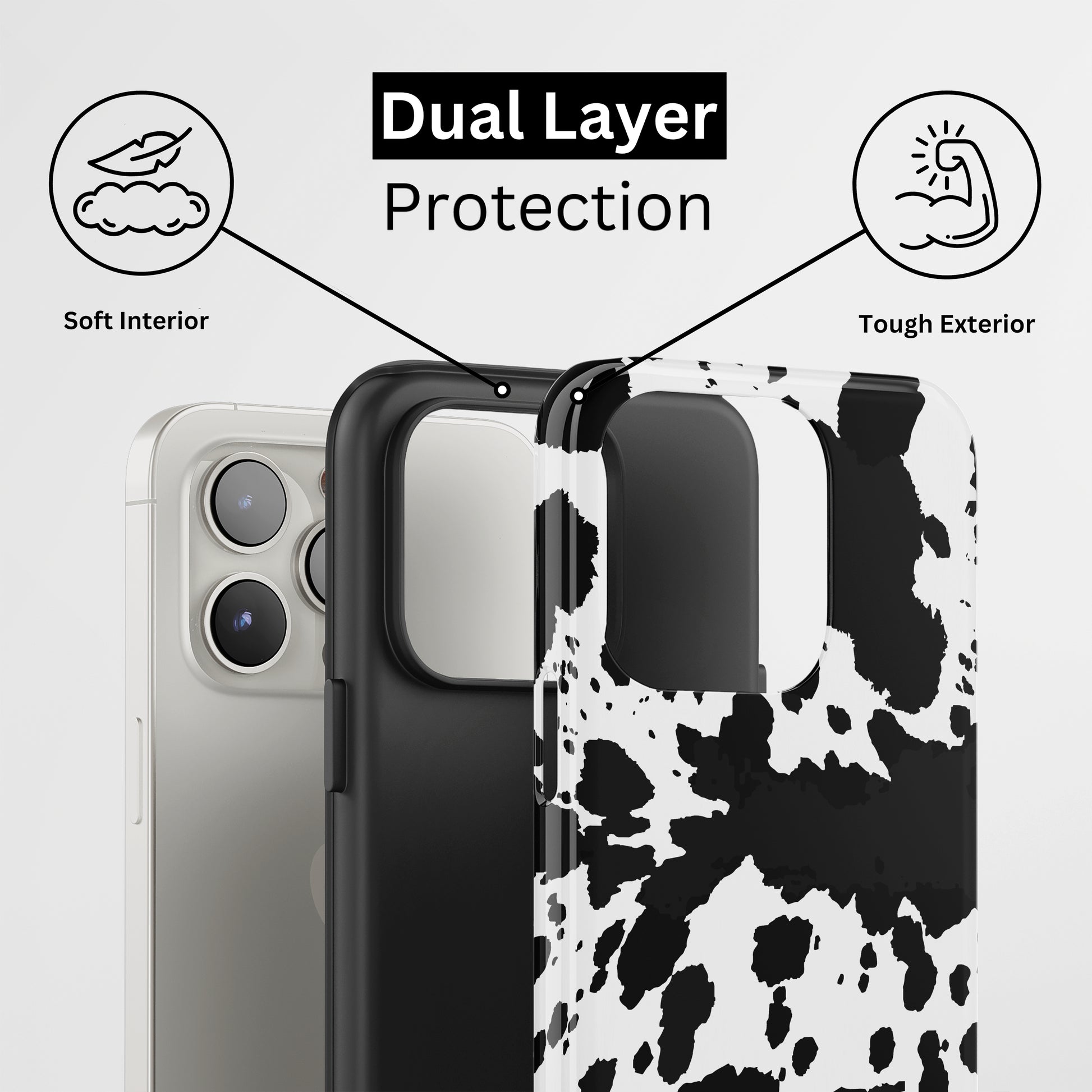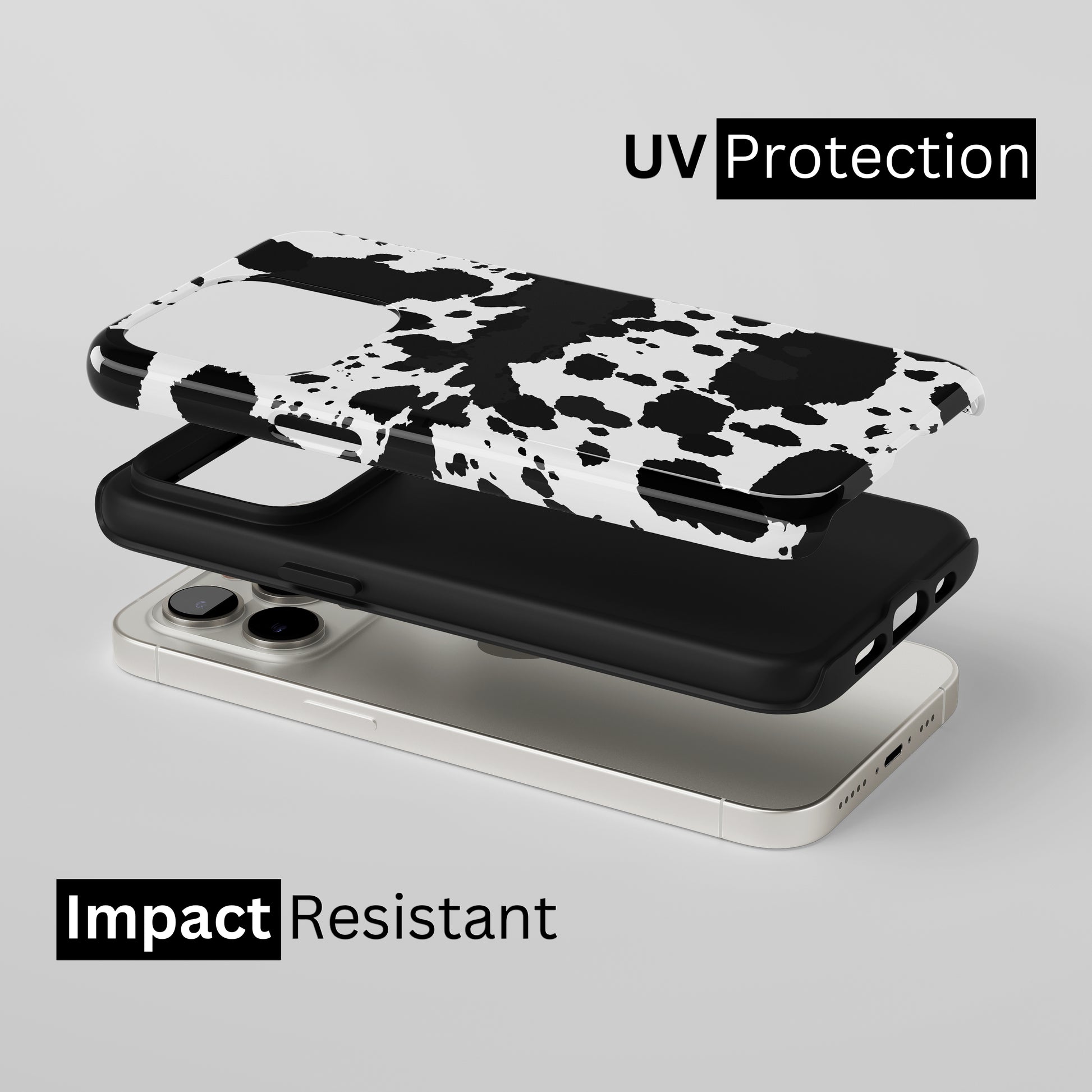 Protect your phone with a dual-layer case made for and compatible with iPhone devices. Durable, shock-absorbing, UV-protected, and wireless charging compatible. Choose matte or glossy with full-wrap 3D print and clear, open ports for easy access.