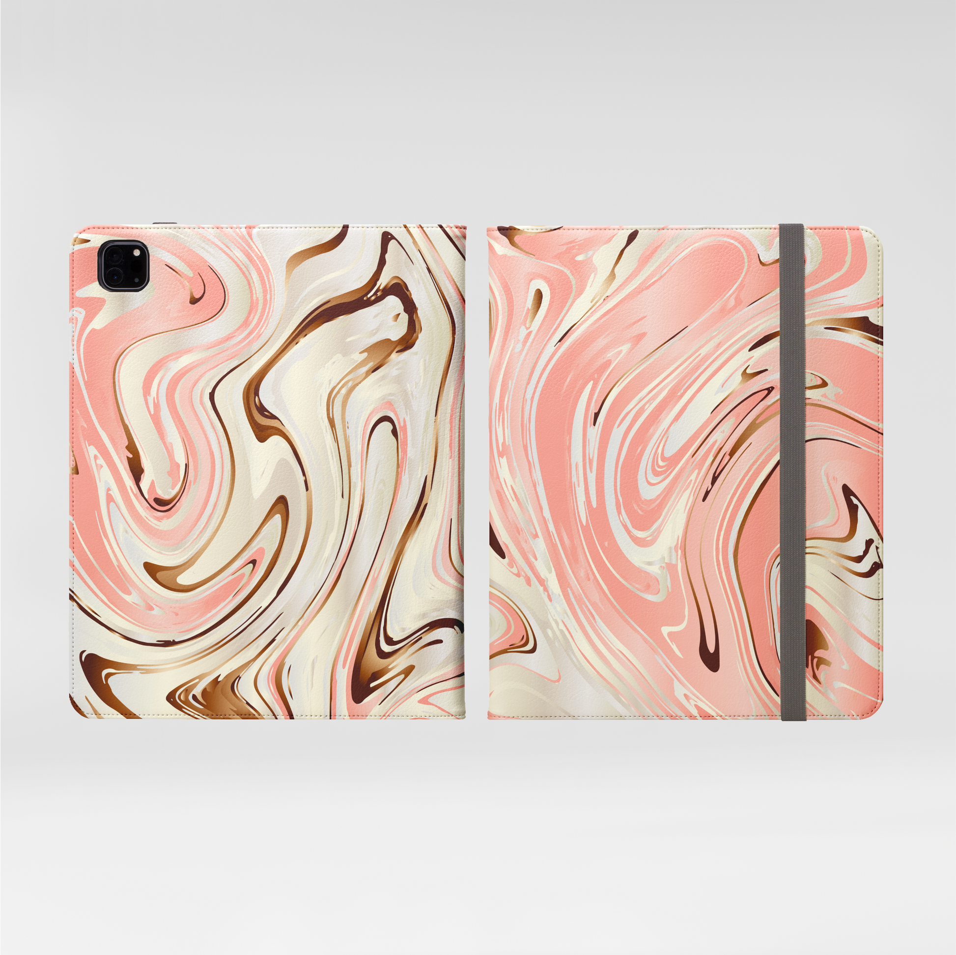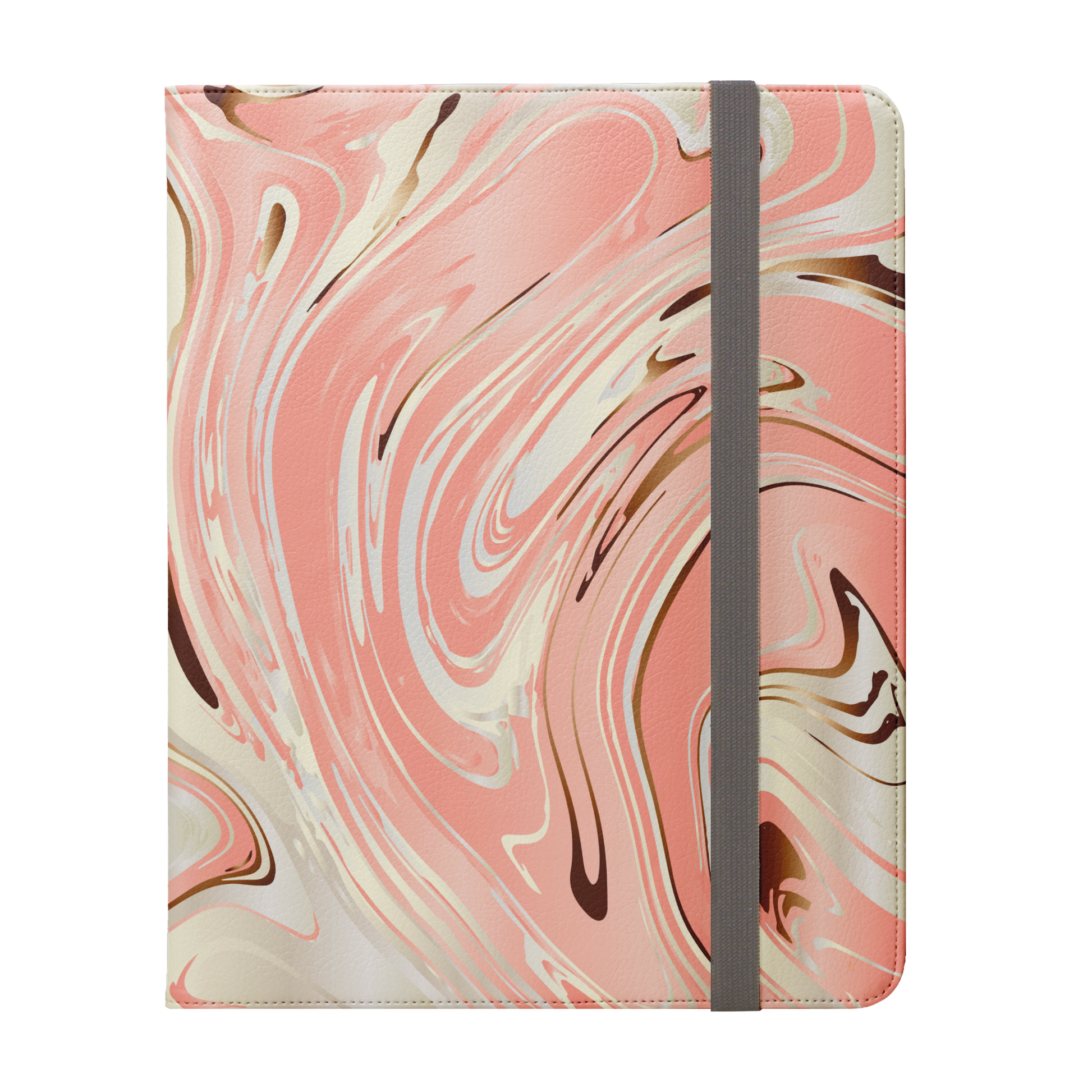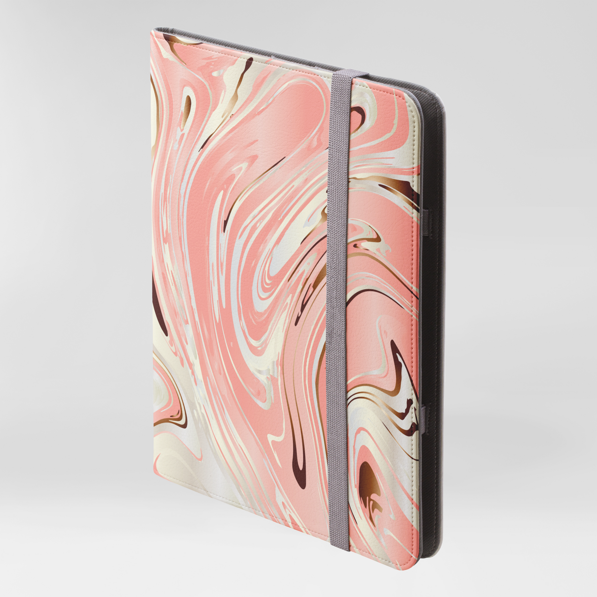 This iPad Pro compatible folio case offers 360° protection with premium soft vegan leather. Features a modern grey elastic fastening, open ports, five pockets for cards and cash, plus a stand for easy media viewing.