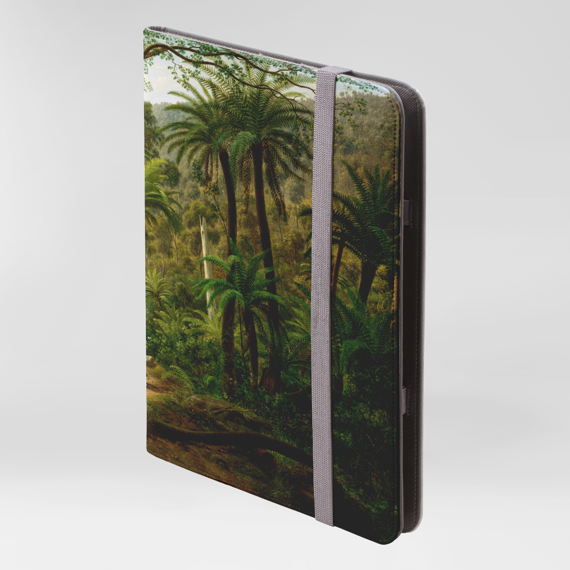 This iPad Pro compatible folio case offers 360° protection with premium soft vegan leather. Features a modern grey elastic fastening, open ports, five pockets for cards and cash, plus a stand for easy media viewing.