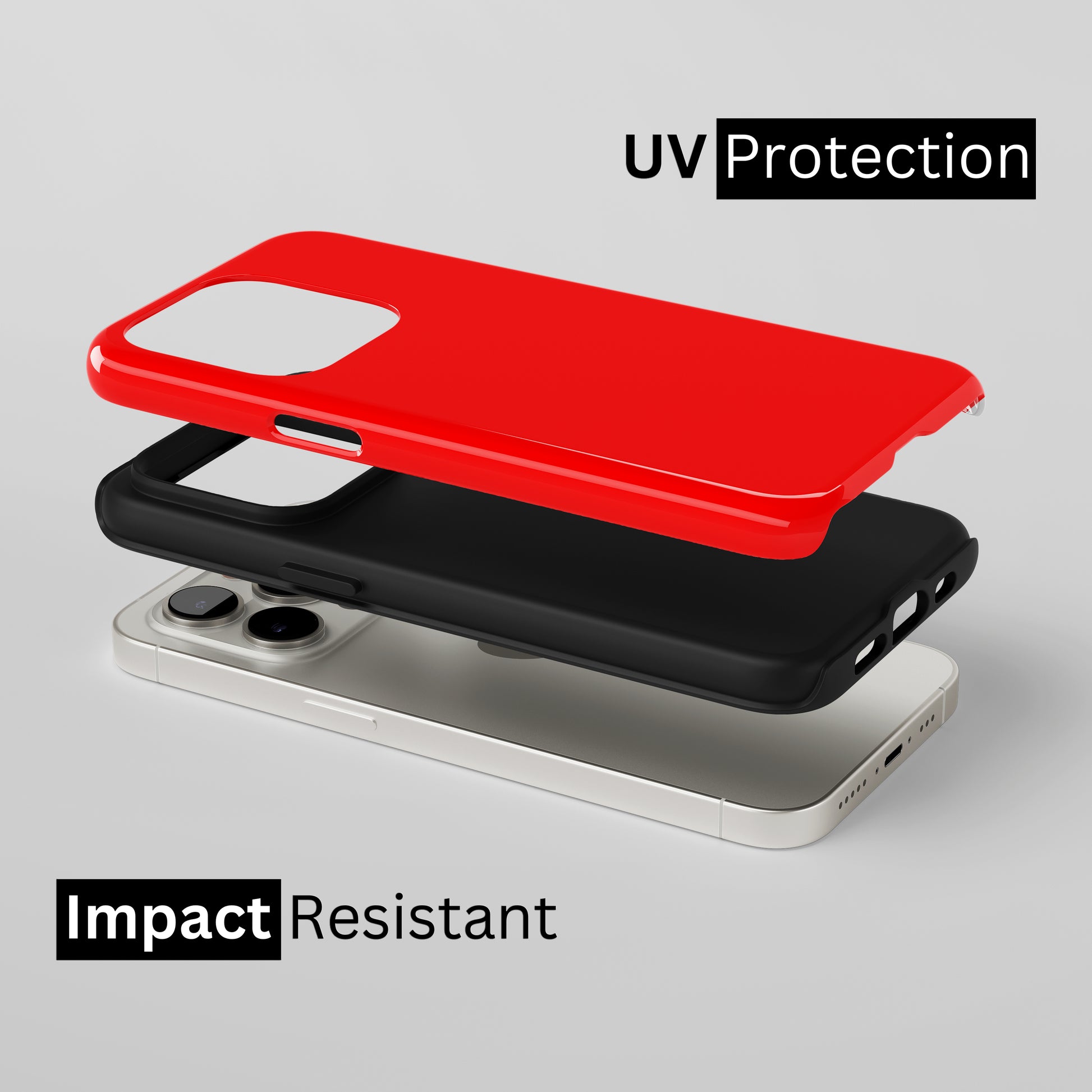 Protect your phone with a dual-layer case made for and compatible with iPhone devices. Durable, shock-absorbing, UV-protected, and wireless charging compatible. Choose matte or glossy with full-wrap 3D print and clear, open ports for easy access.