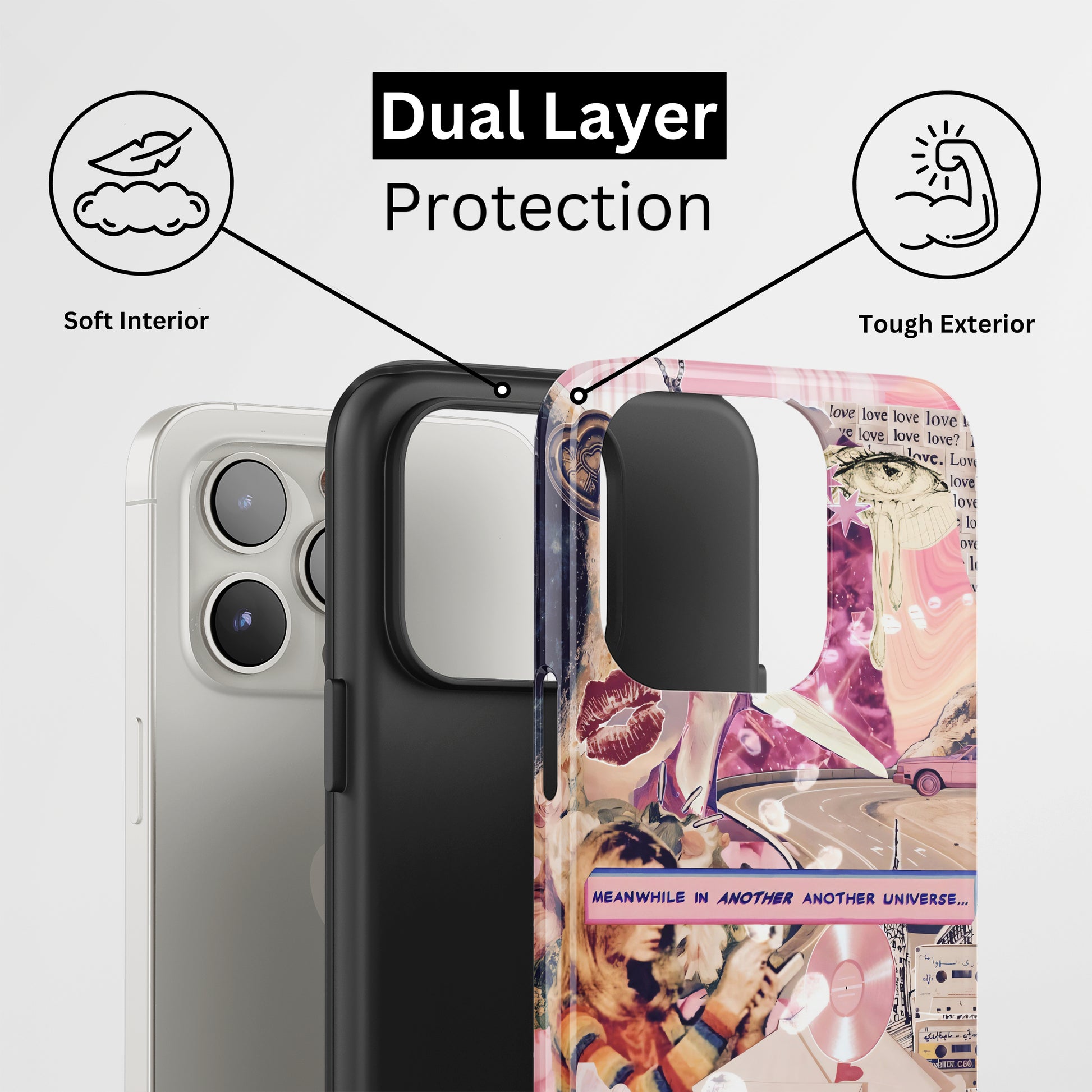Protect your phone with a dual-layer case made for and compatible with iPhone devices. Durable, shock-absorbing, UV-protected, and wireless charging compatible. Choose matte or glossy with full-wrap 3D print and clear, open ports for easy access.