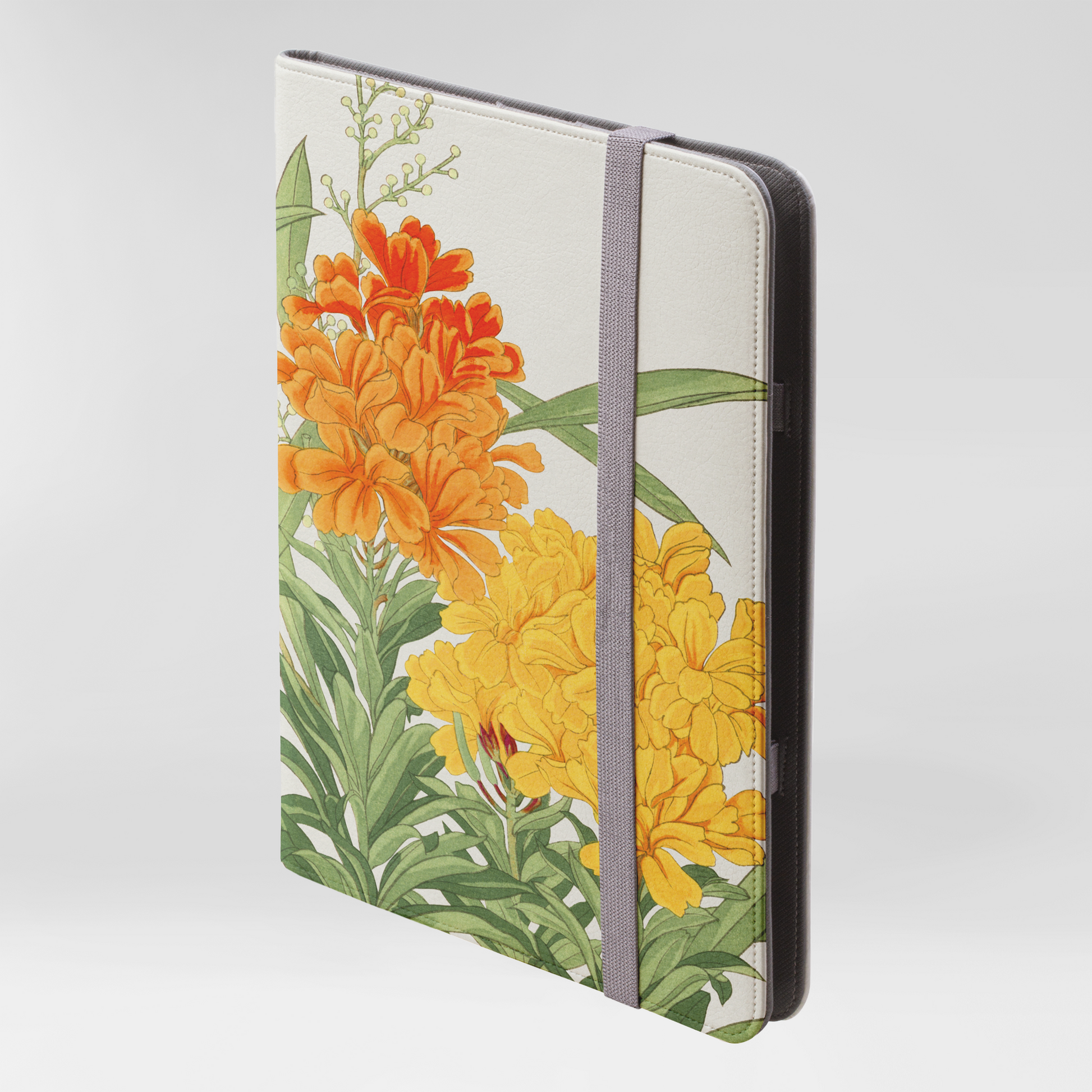 This iPad Pro compatible folio case offers 360° protection with premium soft vegan leather. Features a modern grey elastic fastening, open ports, five pockets for cards and cash, plus a stand for easy media viewing.
