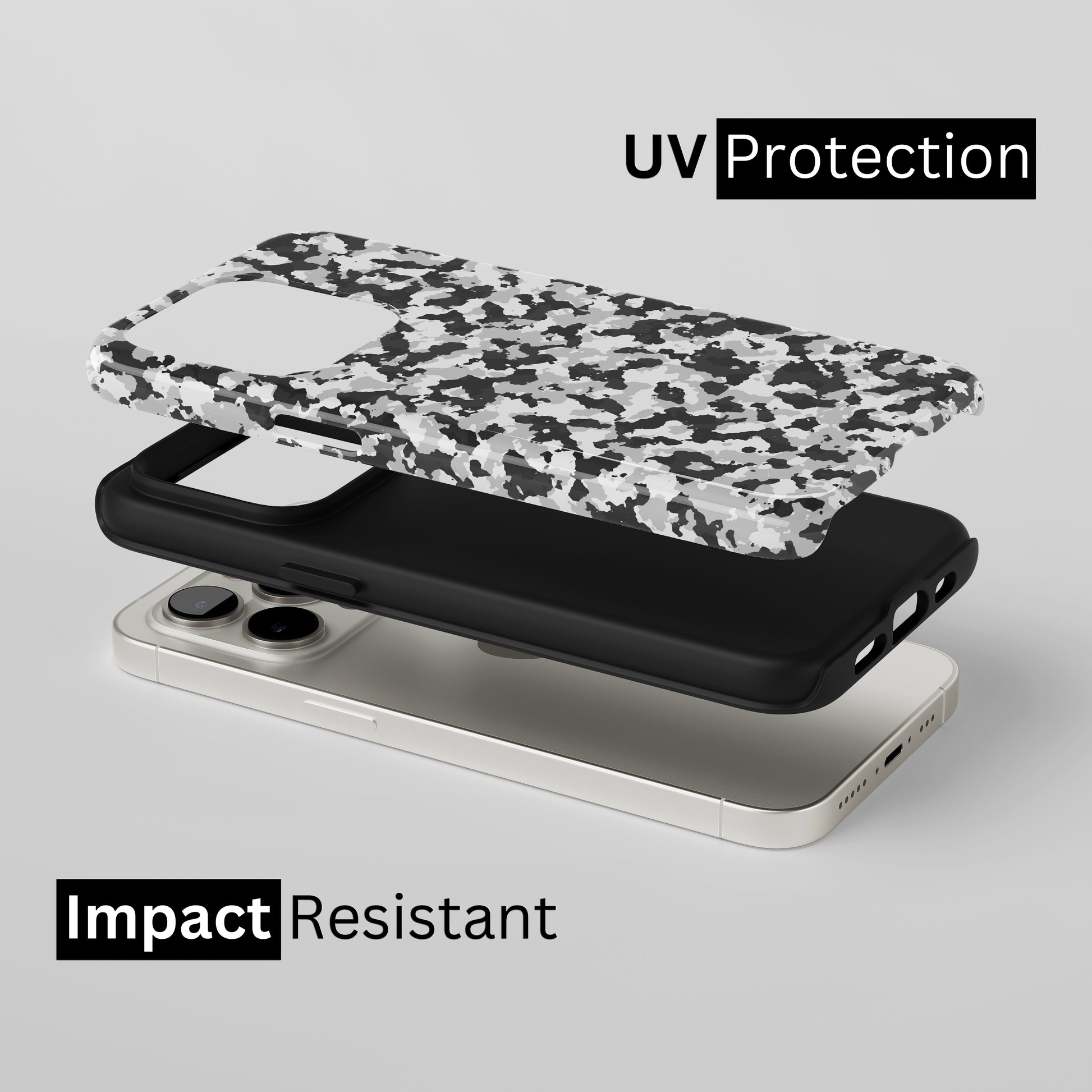 Protect your phone with a dual-layer case made for and compatible with iPhone devices. Durable, shock-absorbing, UV-protected, and wireless charging compatible. Choose matte or glossy with full-wrap 3D print and clear, open ports for easy access.