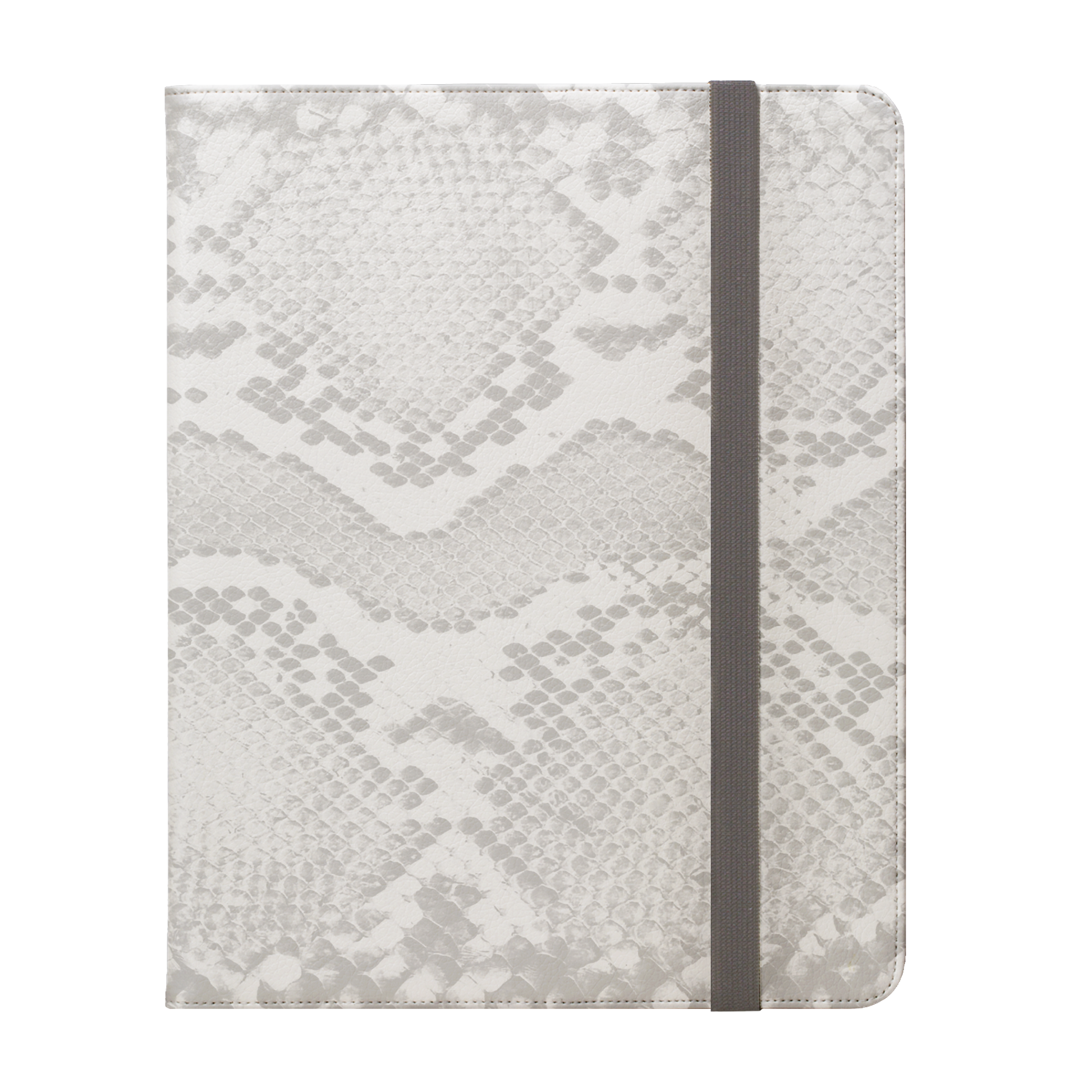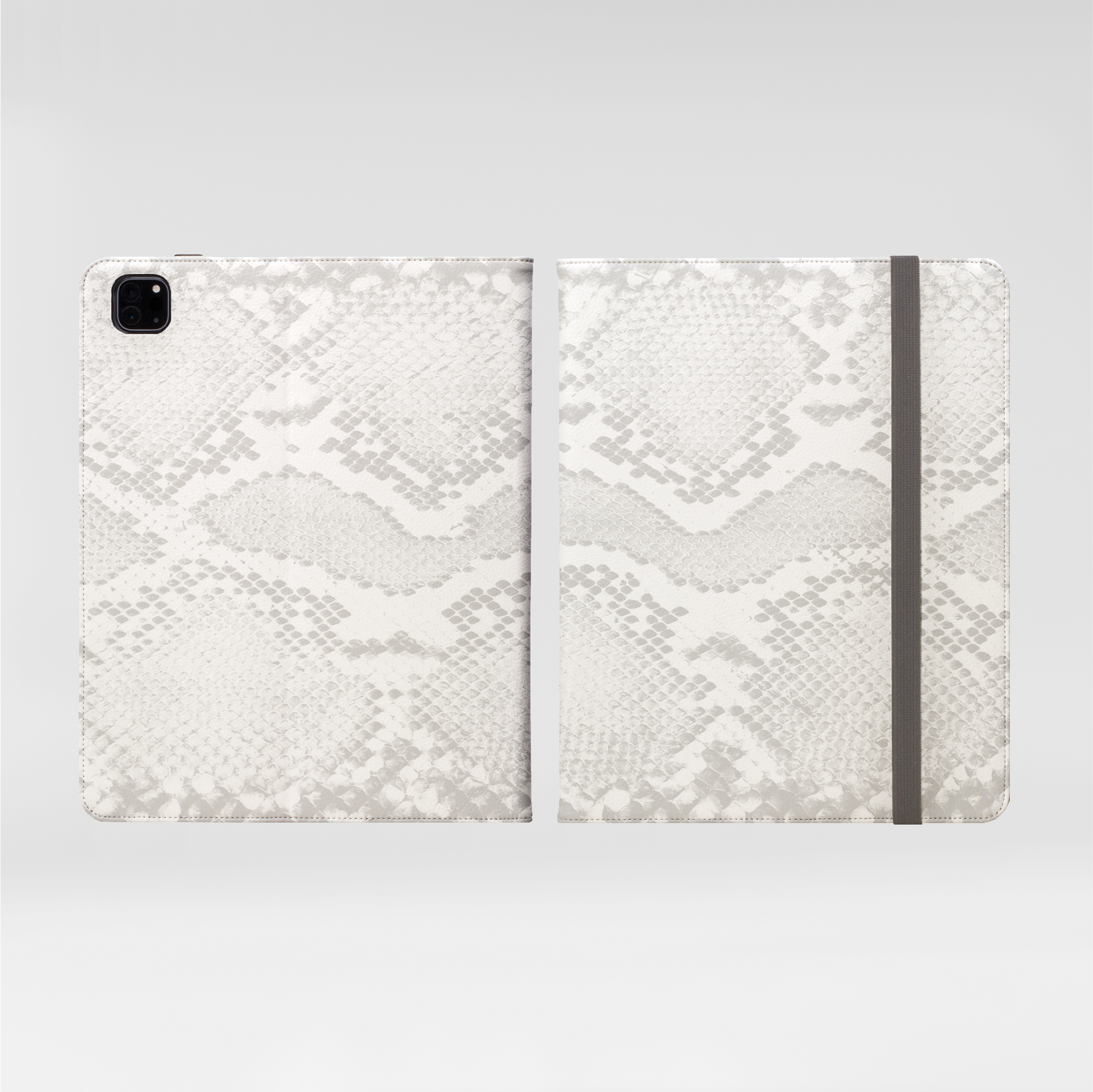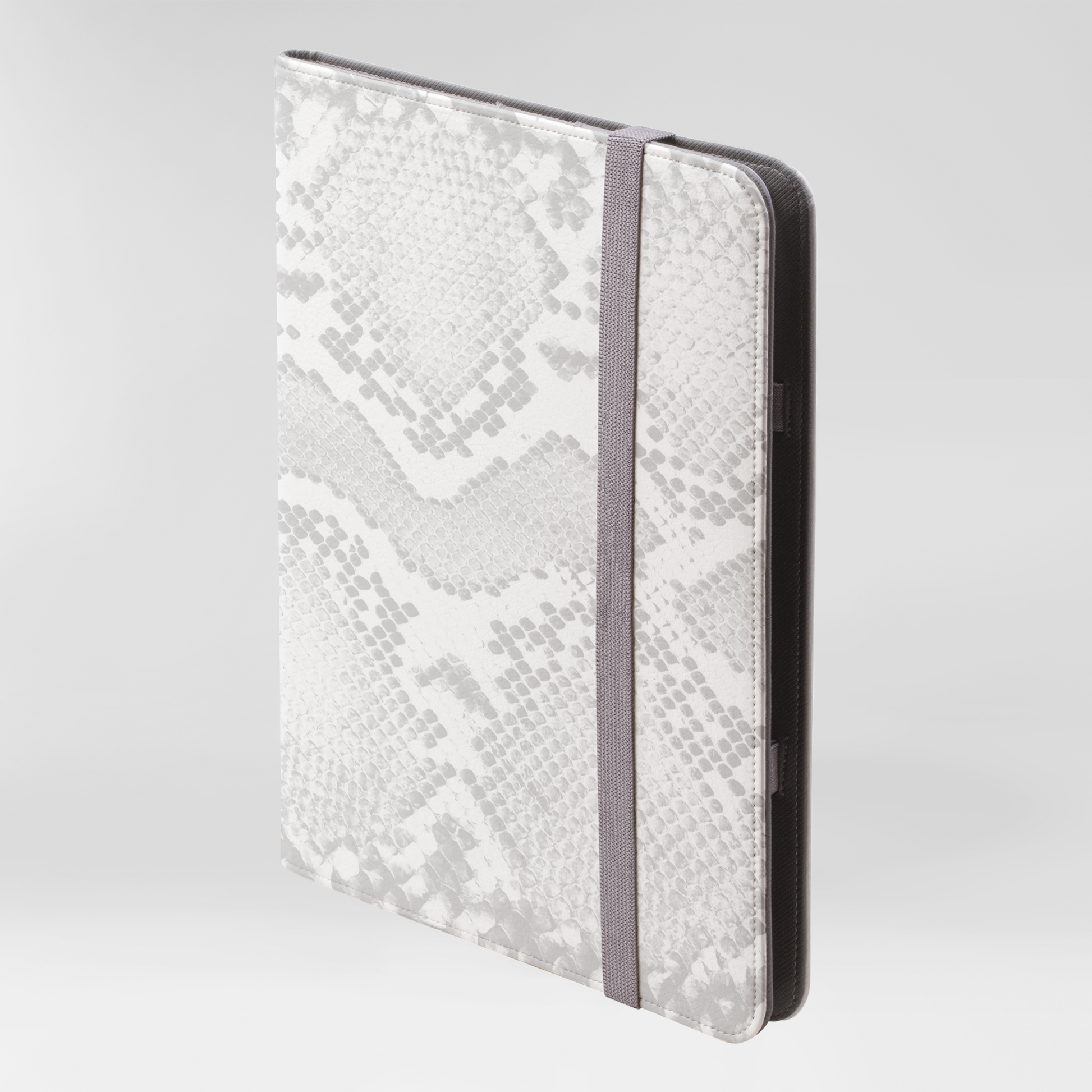 This iPad Pro compatible folio case offers 360° protection with premium soft vegan leather. Features a modern grey elastic fastening, open ports, five pockets for cards and cash, plus a stand for easy media viewing.