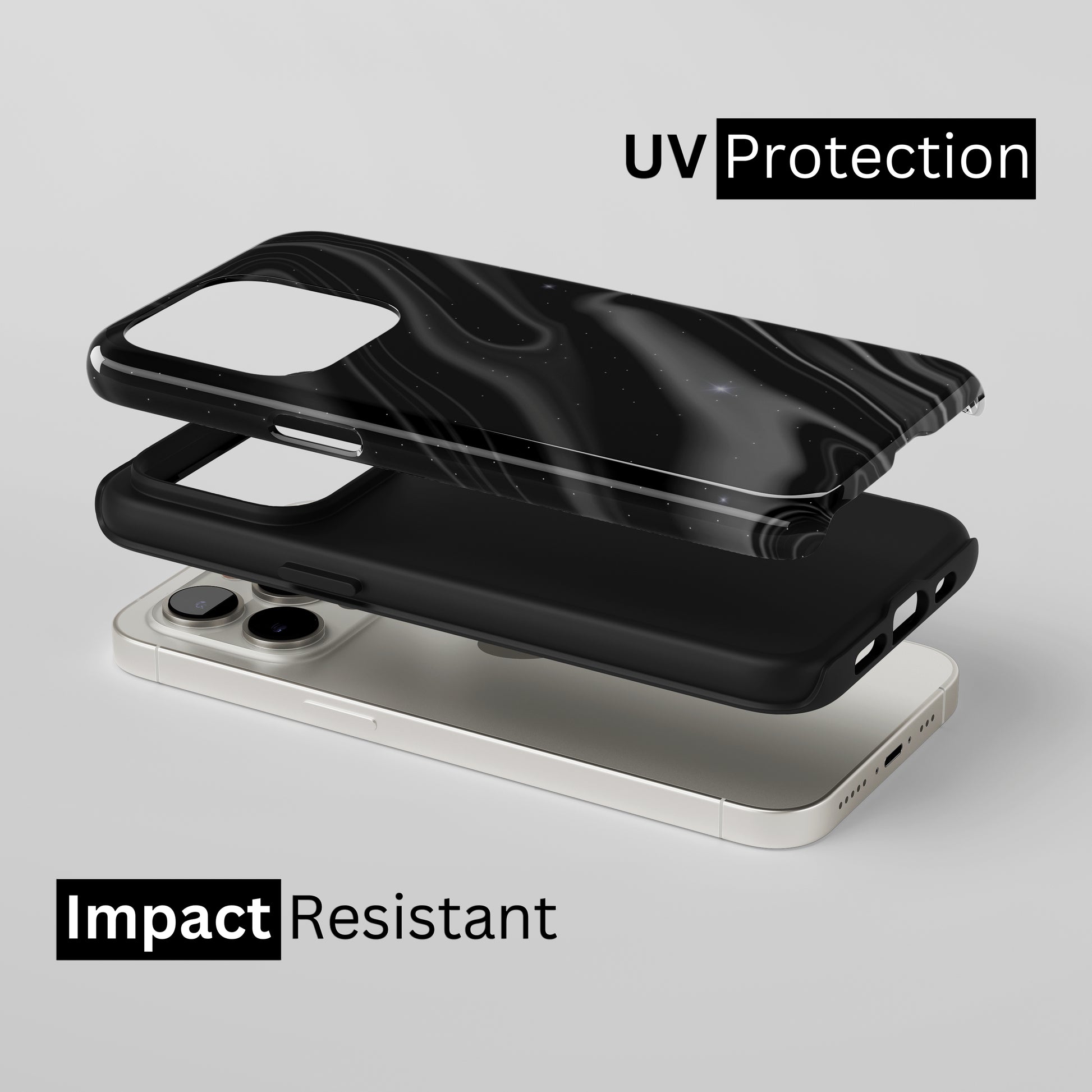 Protect your phone with a dual-layer case made for and compatible with iPhone devices. Durable, shock-absorbing, UV-protected, and wireless charging compatible. Choose matte or glossy with full-wrap 3D print and clear, open ports for easy access.