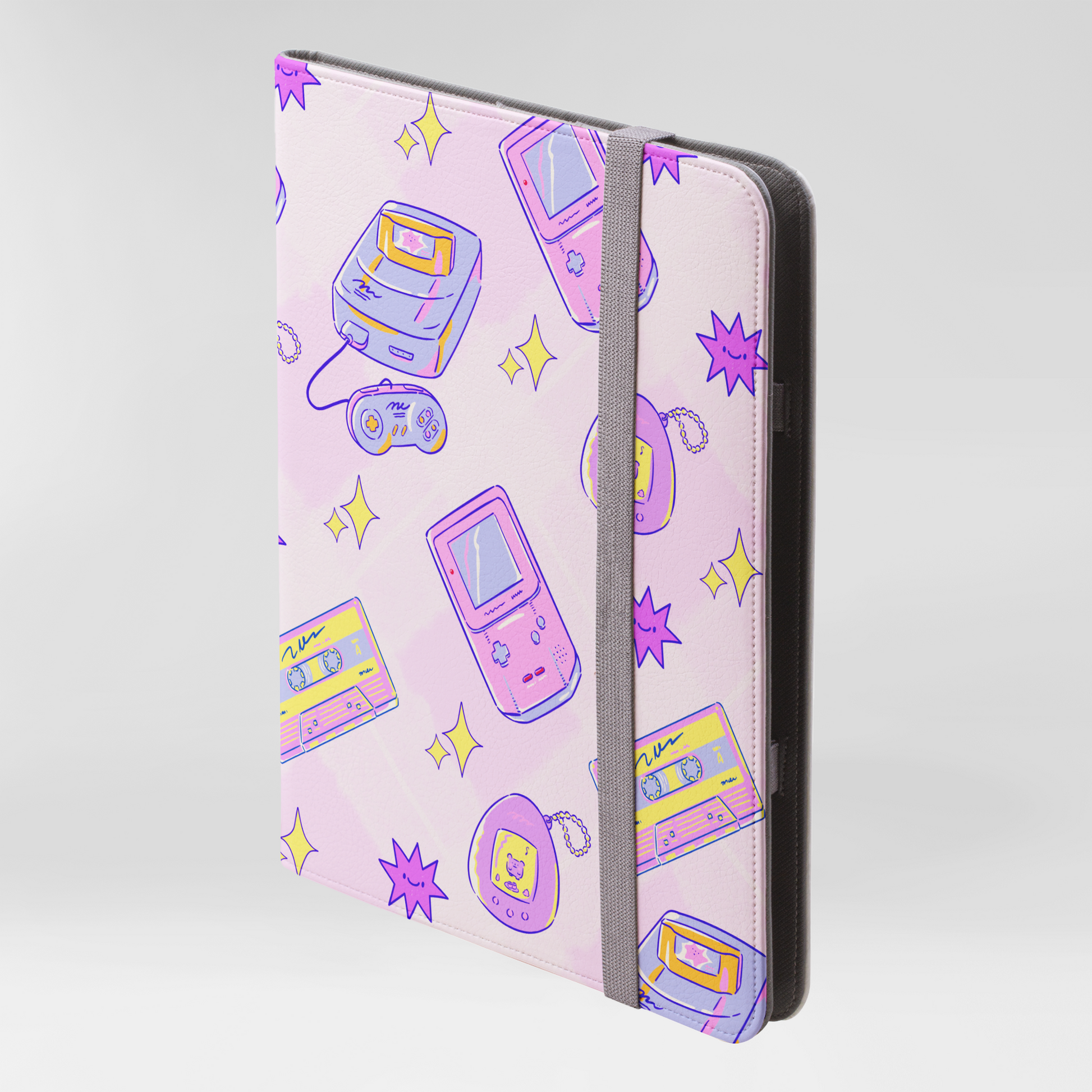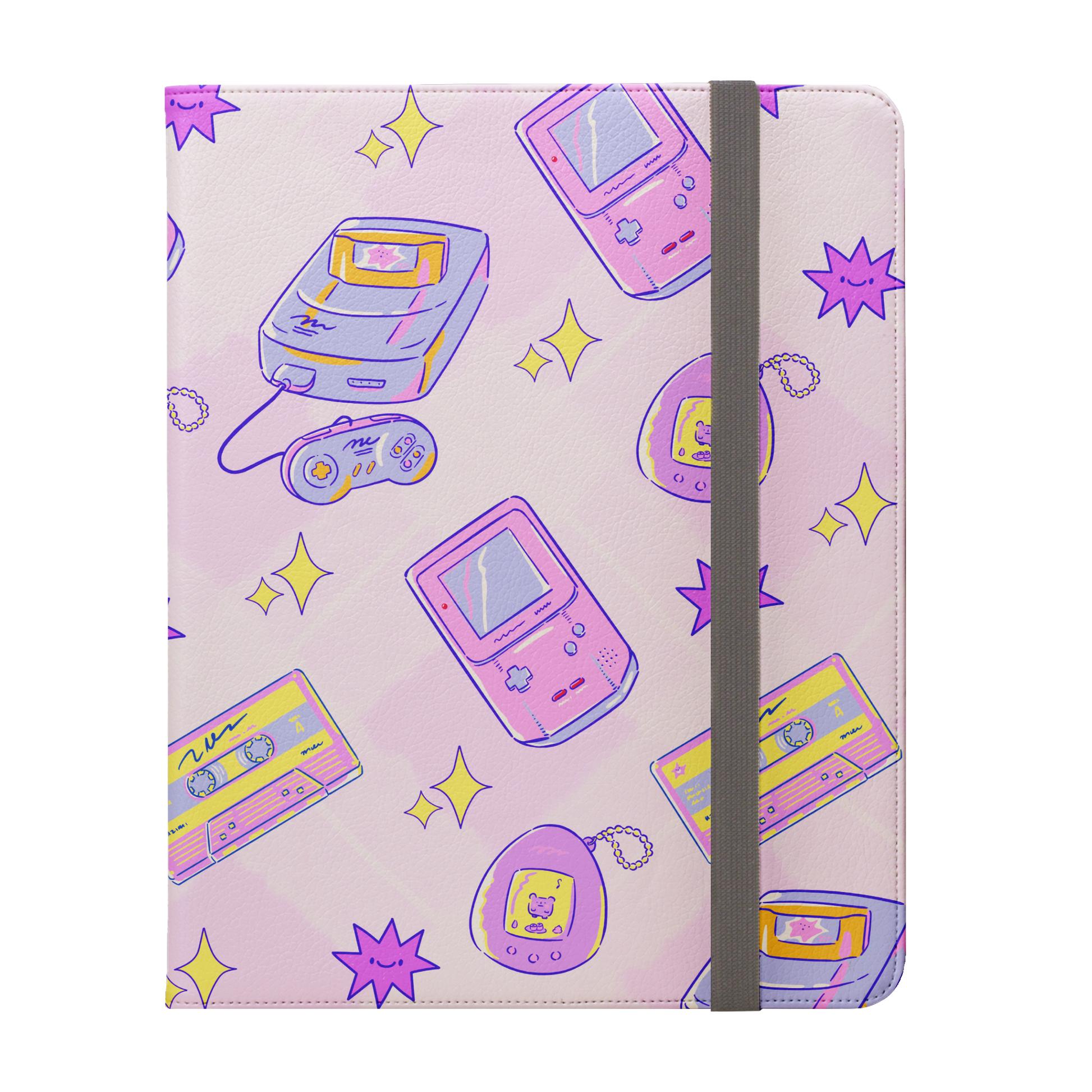This iPad Pro compatible folio case offers 360° protection with premium soft vegan leather. Features a modern grey elastic fastening, open ports, five pockets for cards and cash, plus a stand for easy media viewing.