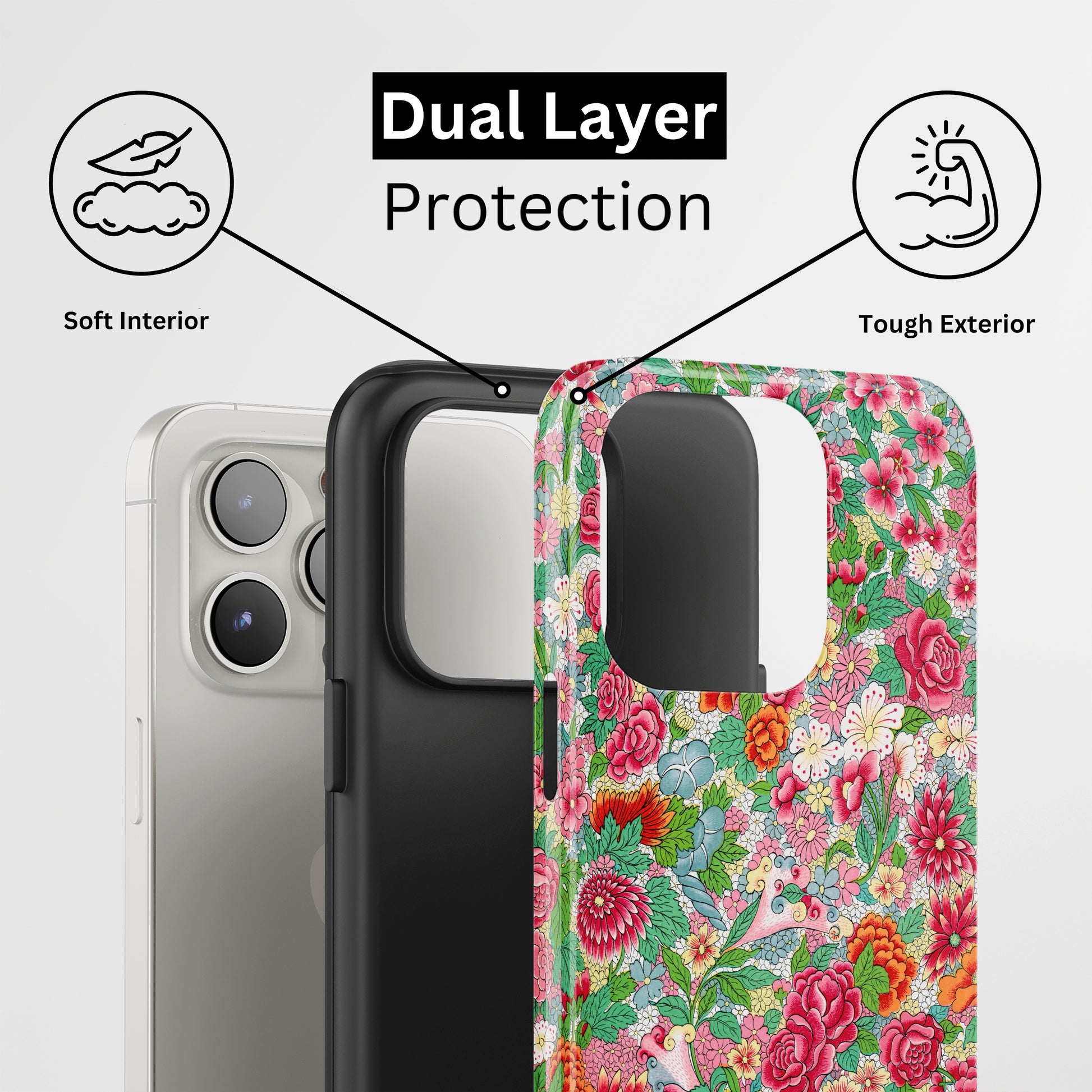 Protect your phone with a dual-layer case made for and compatible with iPhone devices. Durable, shock-absorbing, UV-protected, and wireless charging compatible. Choose matte or glossy with full-wrap 3D print and clear, open ports for easy access.