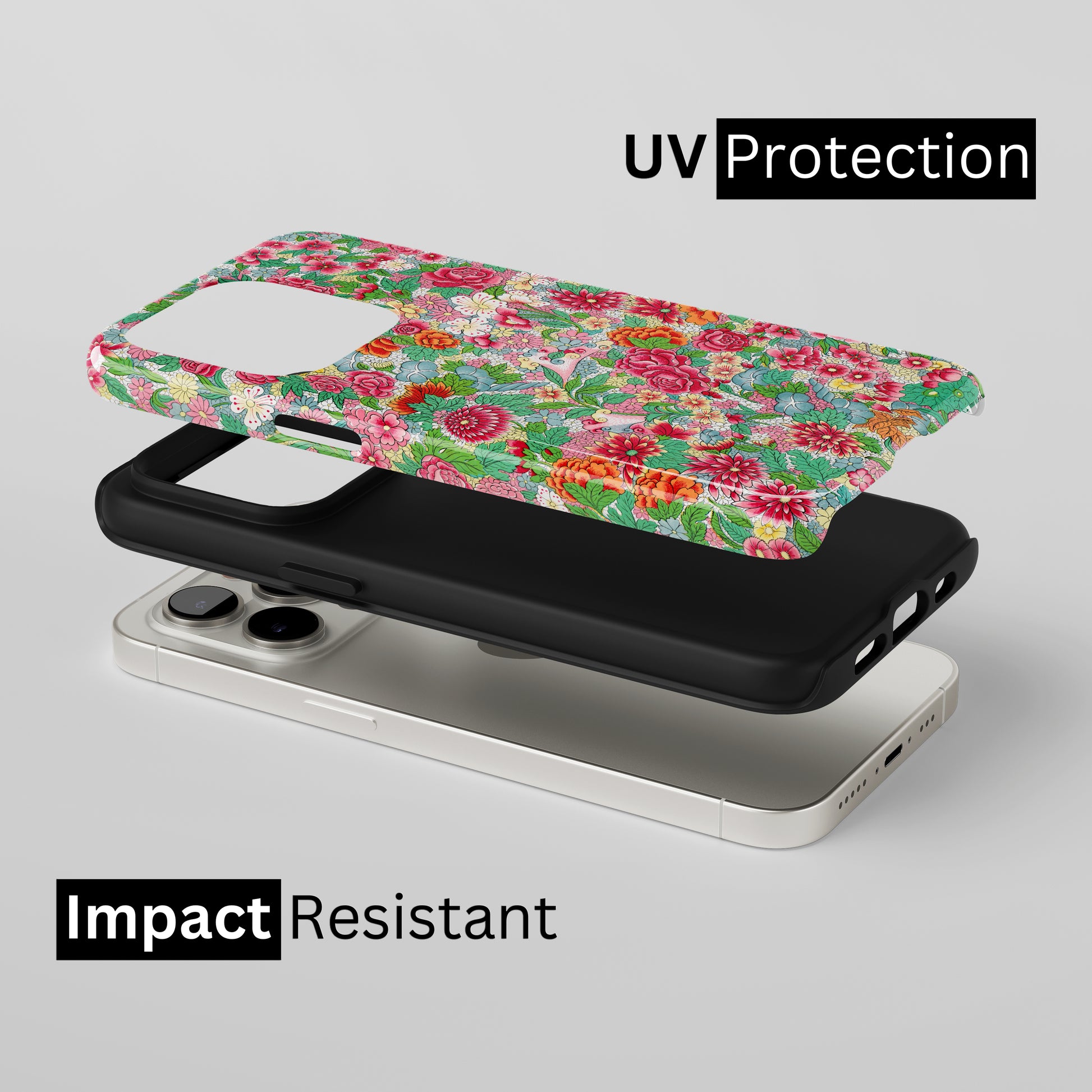 Protect your phone with a dual-layer case made for and compatible with iPhone devices. Durable, shock-absorbing, UV-protected, and wireless charging compatible. Choose matte or glossy with full-wrap 3D print and clear, open ports for easy access.