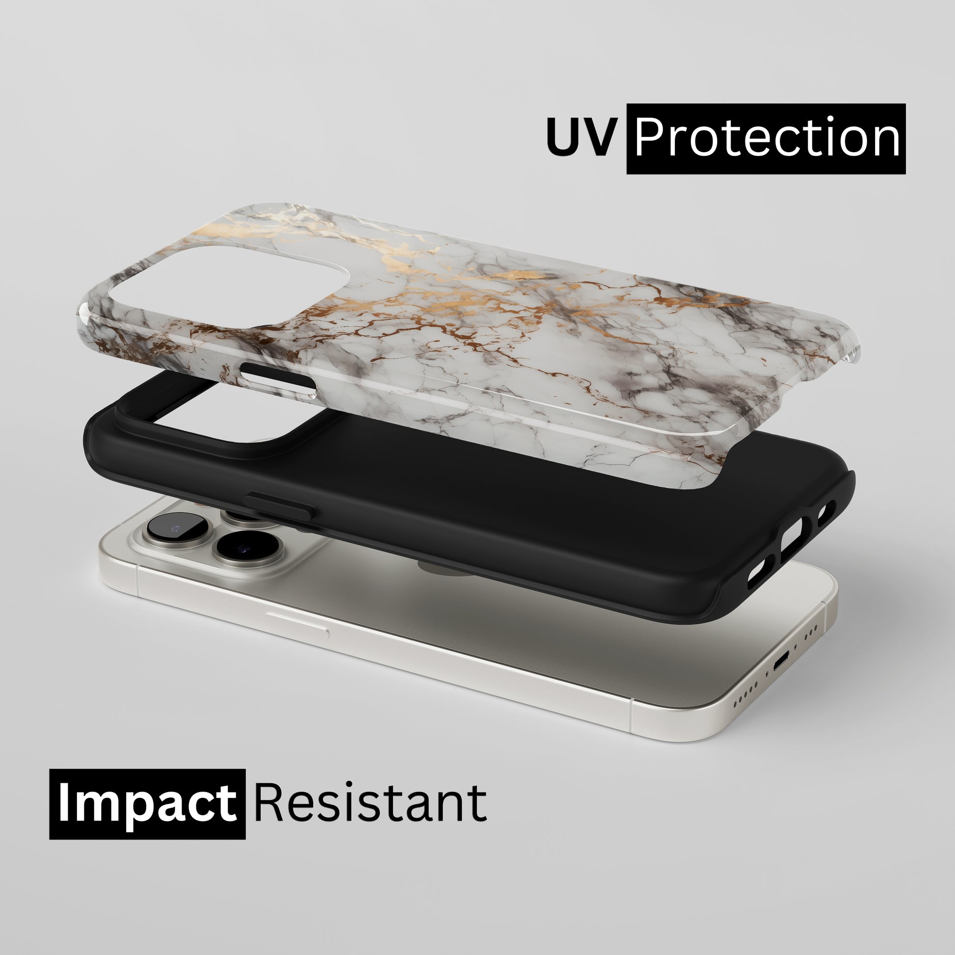 Protect your phone with a dual-layer case made for and compatible with iPhone devices. Durable, shock-absorbing, UV-protected, and wireless charging compatible. Choose matte or glossy with full-wrap 3D print and clear, open ports for easy access.