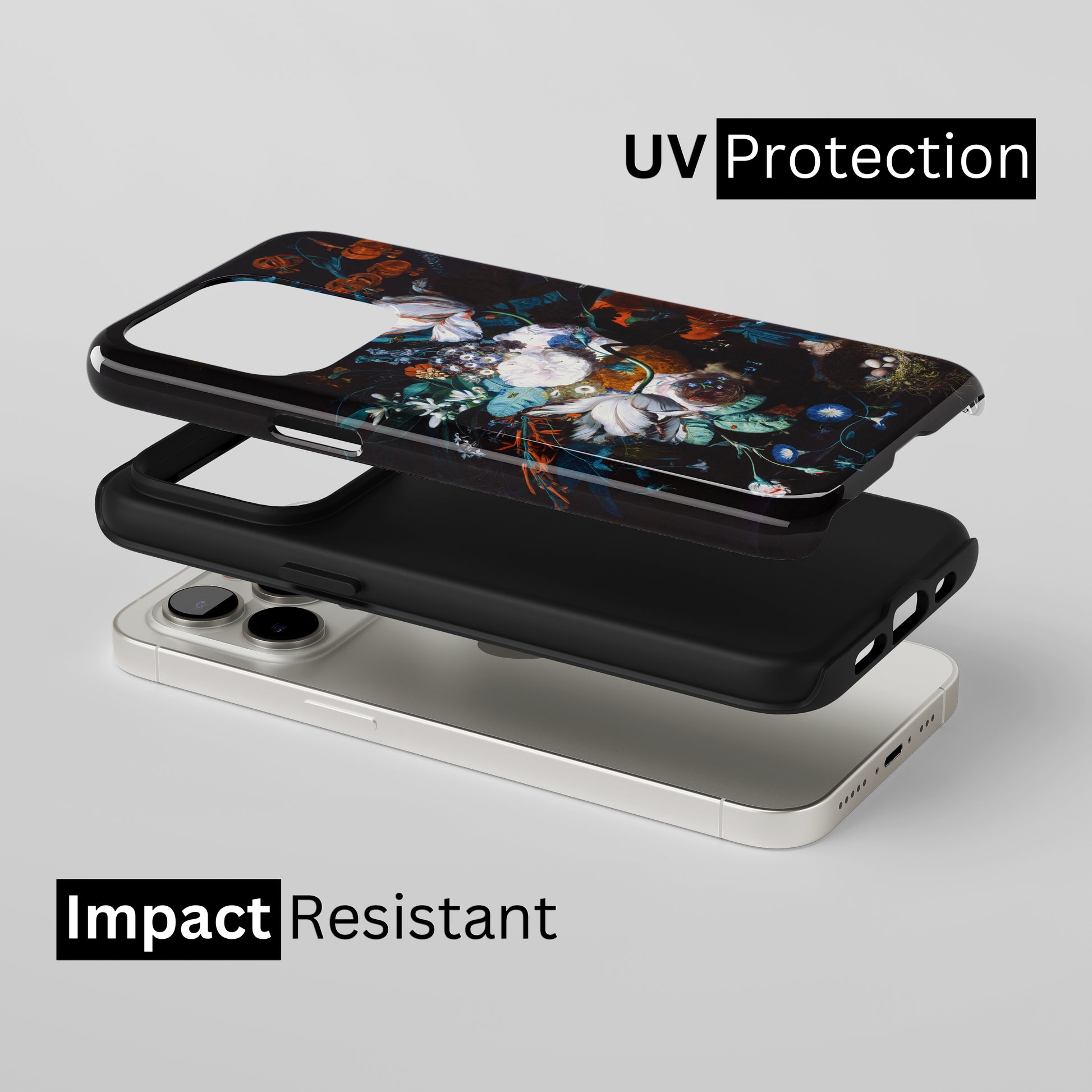 Protect your phone with a dual-layer case made for and compatible with iPhone devices. Durable, shock-absorbing, UV-protected, and wireless charging compatible. Choose matte or glossy with full-wrap 3D print and clear, open ports for easy access.