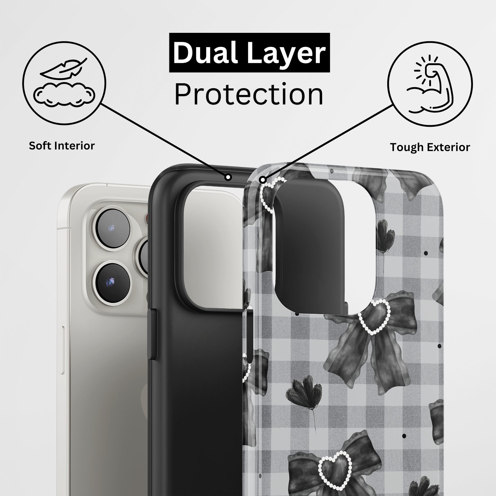 Protect your phone with a dual-layer case made for and compatible with iPhone devices. Durable, shock-absorbing, UV-protected, and wireless charging compatible. Choose matte or glossy with full-wrap 3D print and clear, open ports for easy access.