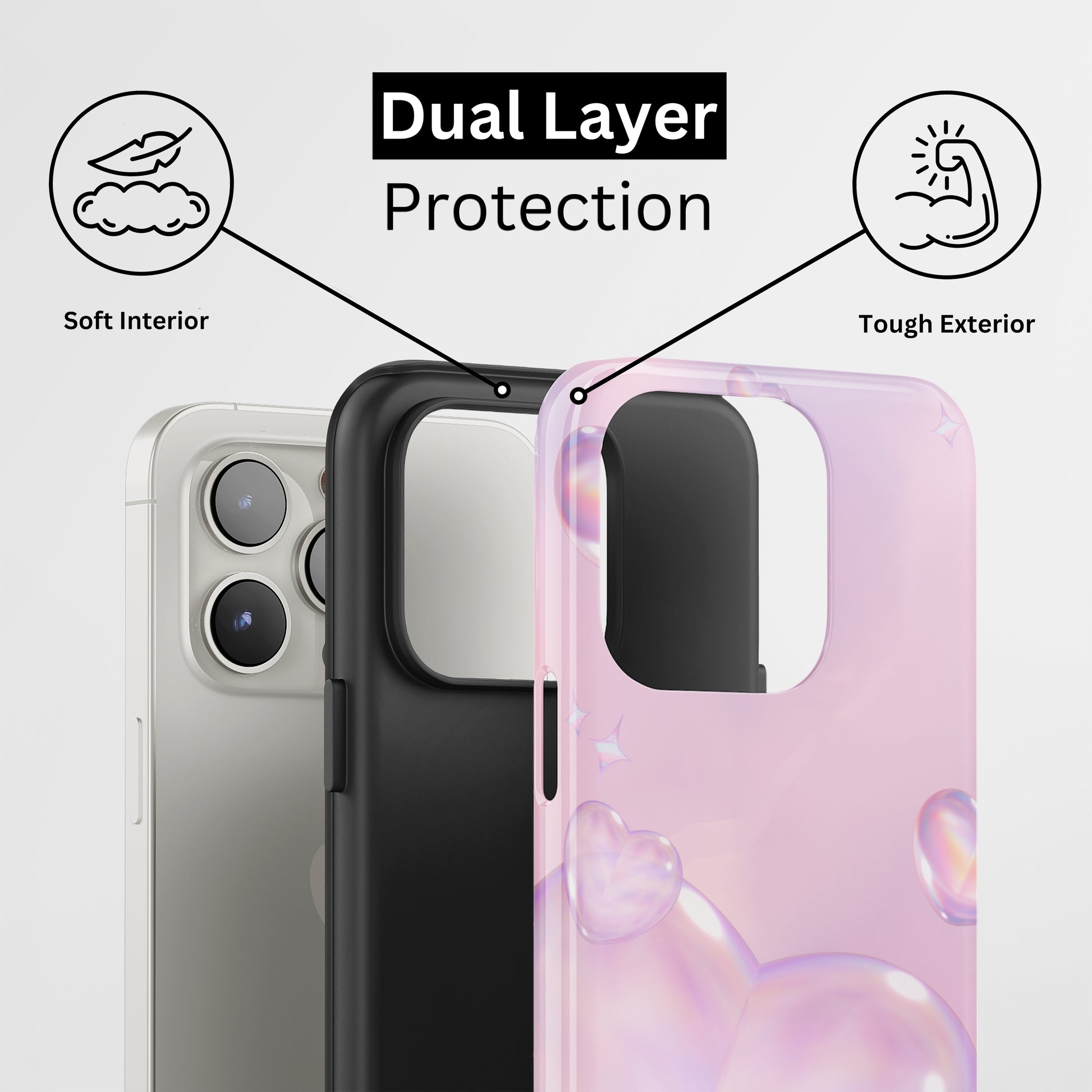 Protect your phone with a dual-layer case made for and compatible with iPhone devices. Durable, shock-absorbing, UV-protected, and wireless charging compatible. Choose matte or glossy with full-wrap 3D print and clear, open ports for easy access.