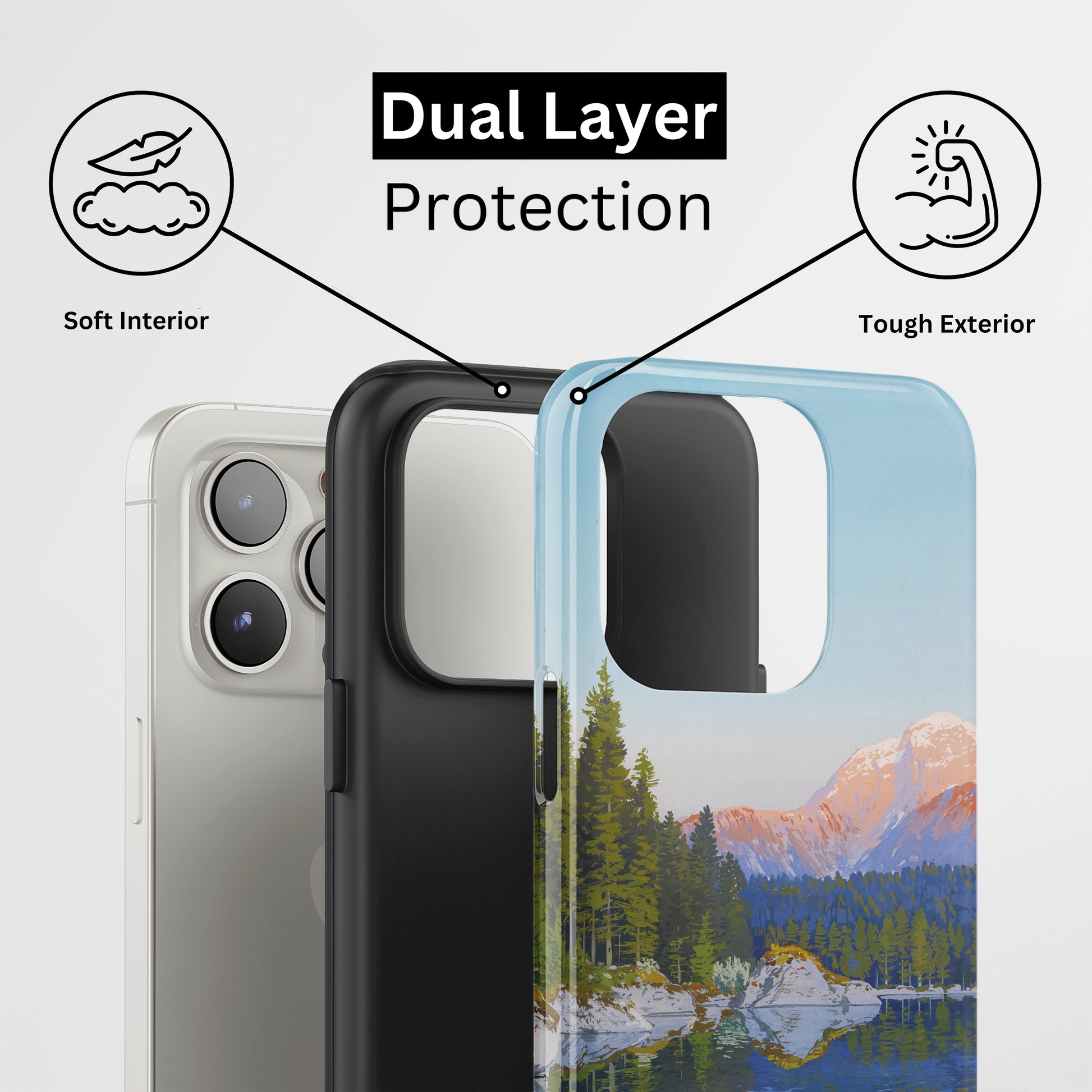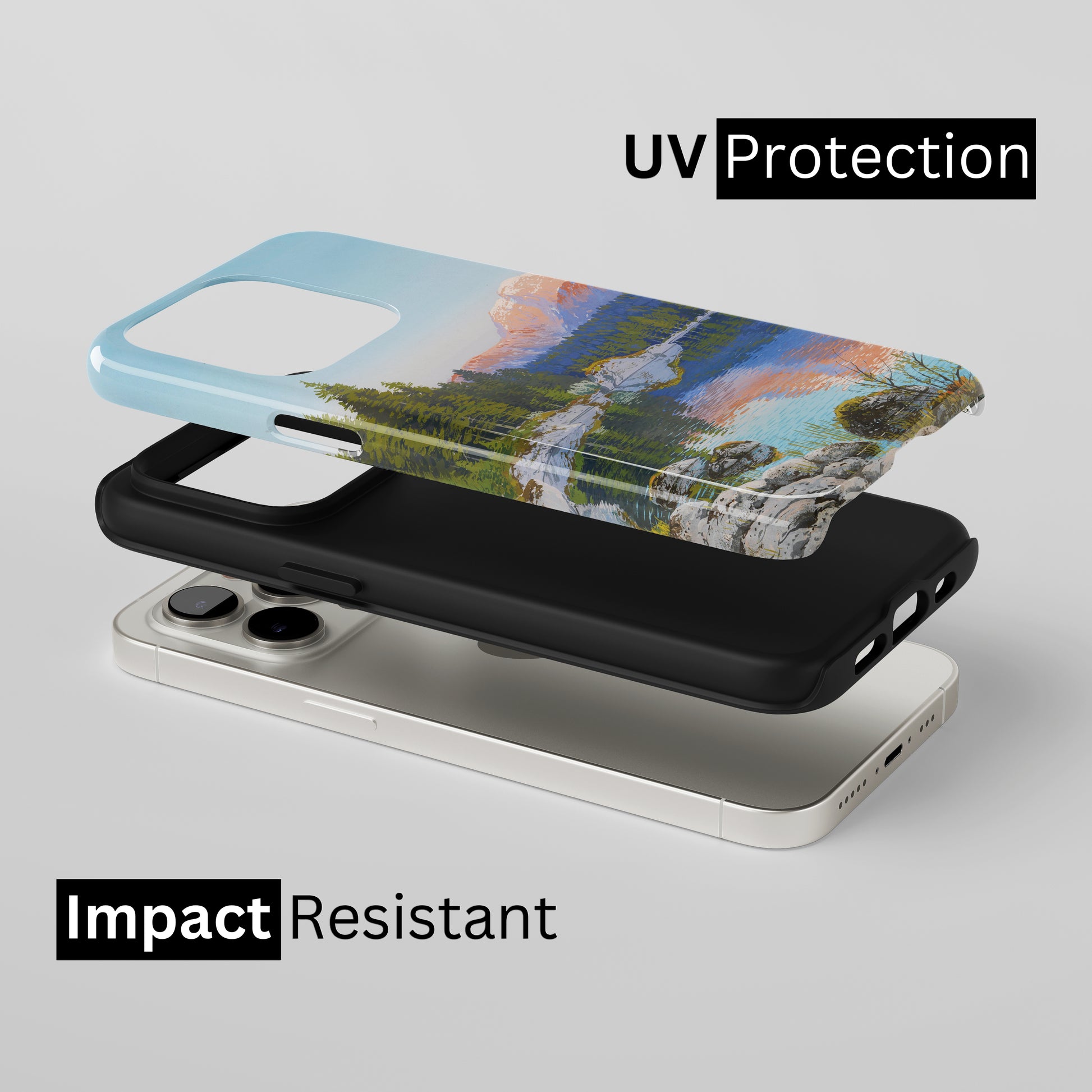 Protect your phone with a dual-layer case made for and compatible with iPhone devices. Durable, shock-absorbing, UV-protected, and wireless charging compatible. Choose matte or glossy with full-wrap 3D print and clear, open ports for easy access.
