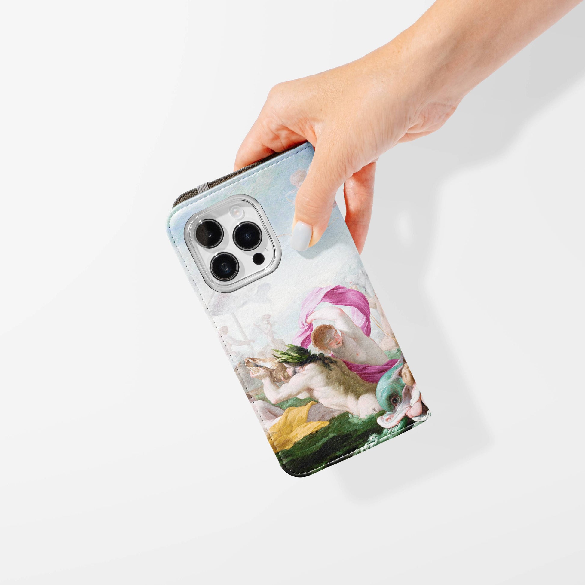 Kick your phone’s style up a notch with our vegan leather folio case! It’s got bold designs, a tough polycarbonate core, and a stretchy strap to keep it snug. Stash cards and cash, pop it up for videos, and clip on a strap for easy carrying!