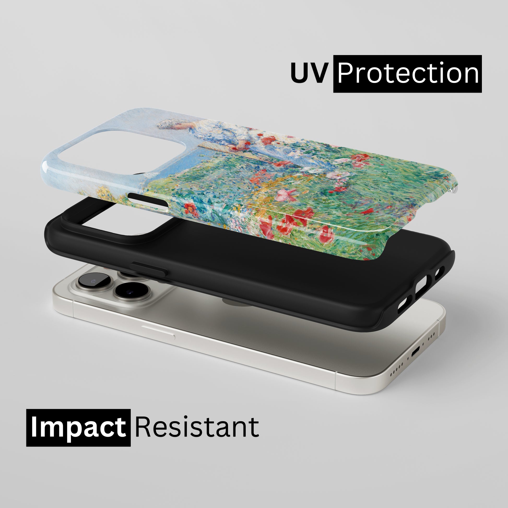Protect your phone with a dual-layer case made for and compatible with iPhone devices. Durable, shock-absorbing, UV-protected, and wireless charging compatible. Choose matte or glossy with full-wrap 3D print and clear, open ports for easy access.