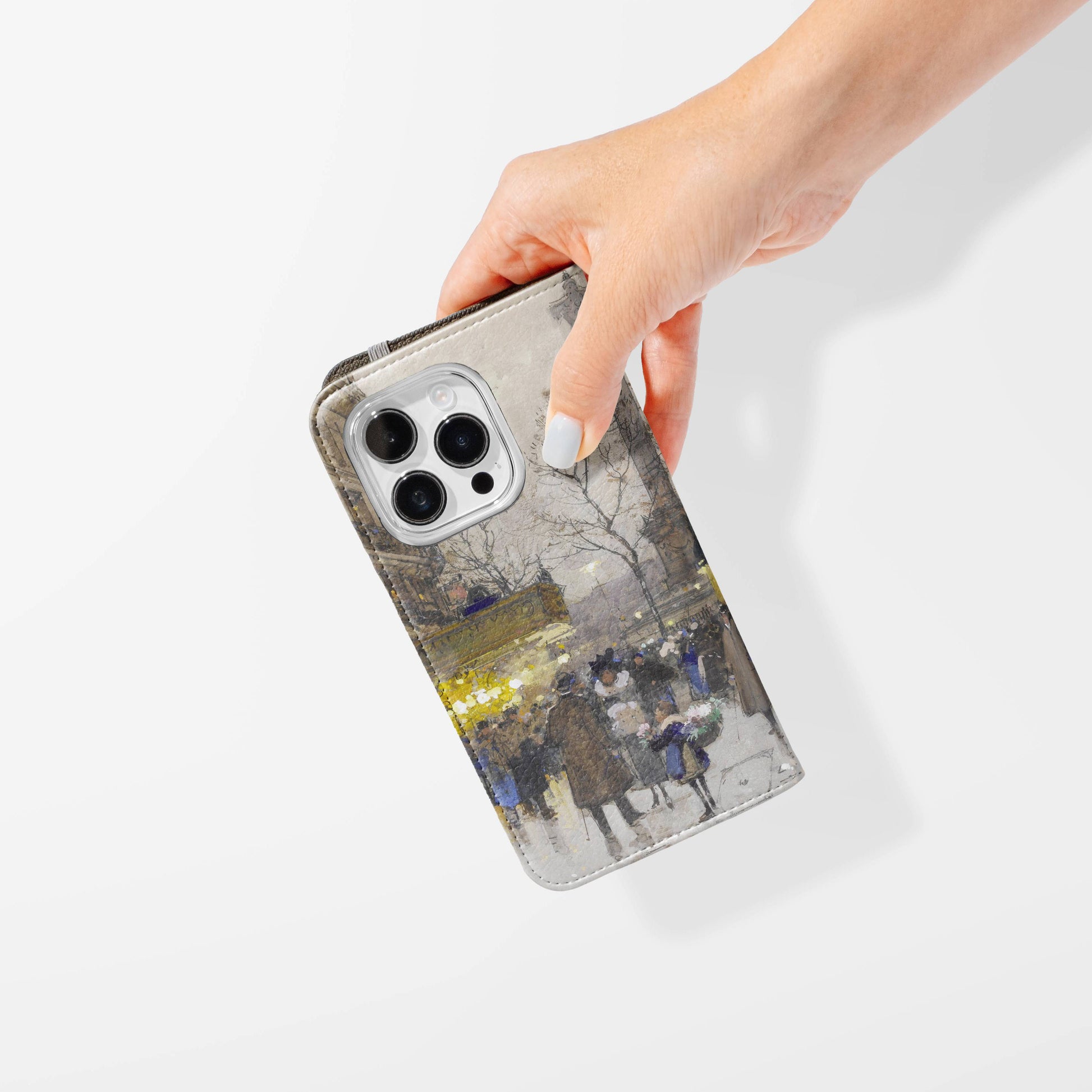 Kick your phone’s style up a notch with our vegan leather folio case! It’s got bold designs, a tough polycarbonate core, and a stretchy strap to keep it snug. Stash cards and cash, pop it up for videos, and clip on a strap for easy carrying!