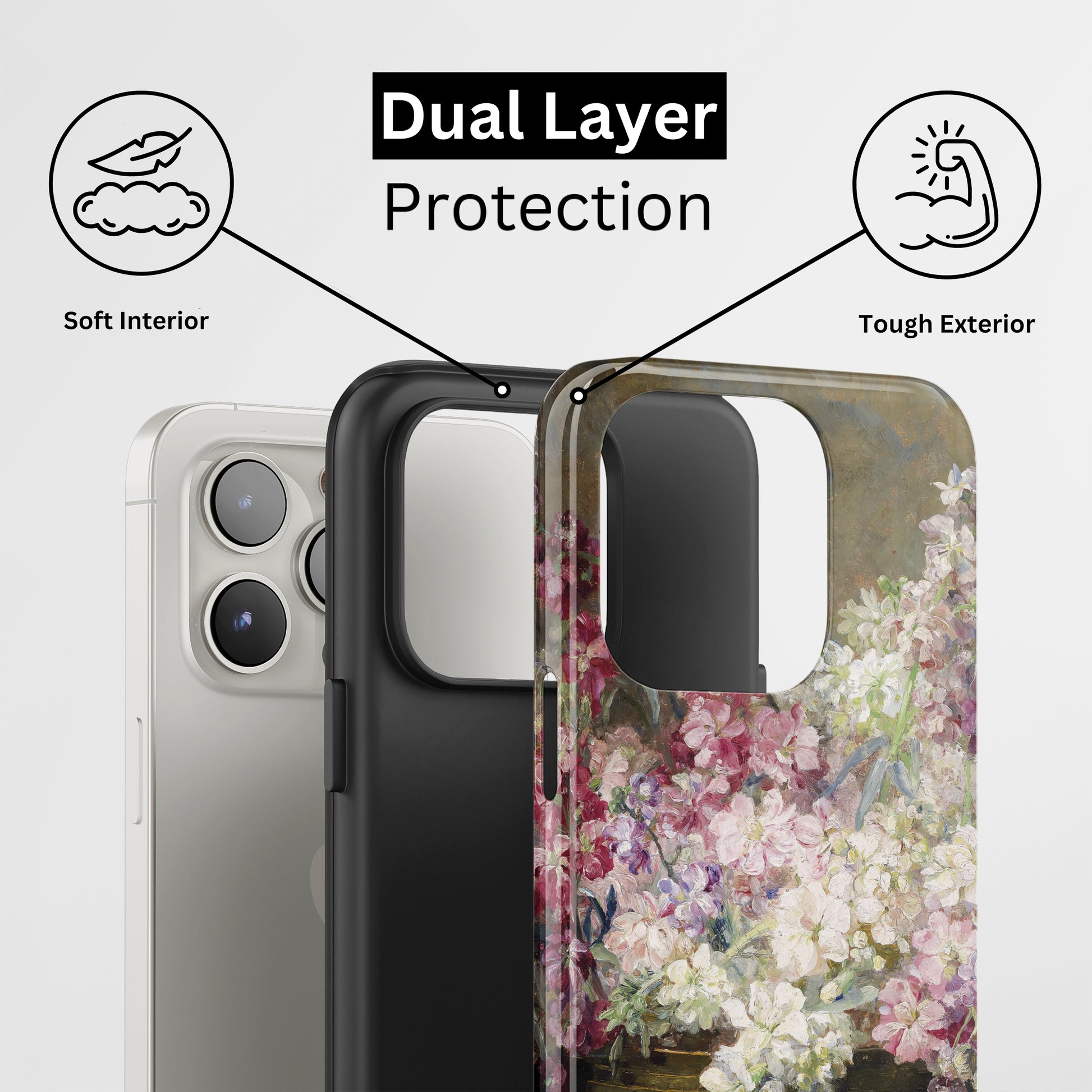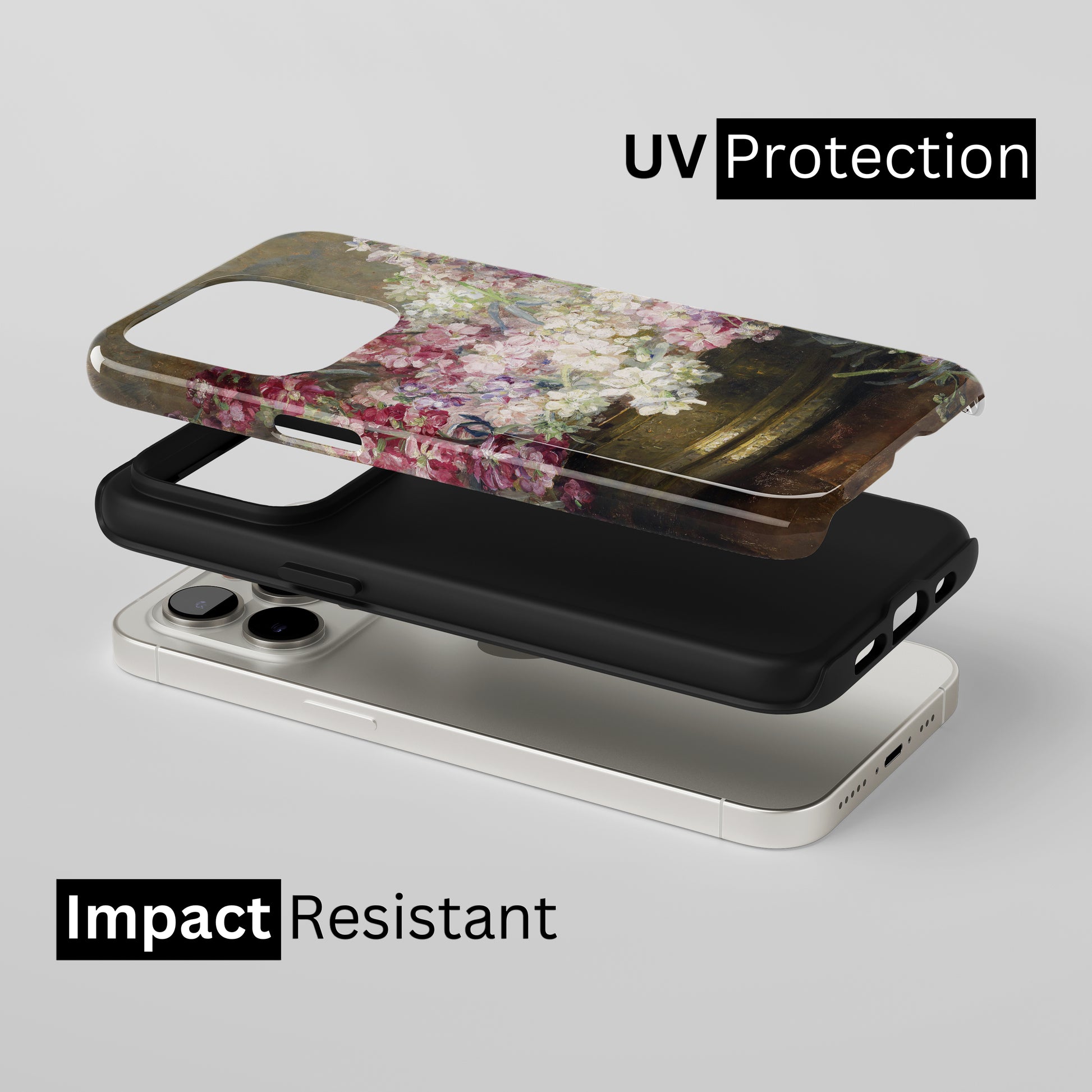 Protect your phone with a dual-layer case made for and compatible with iPhone devices. Durable, shock-absorbing, UV-protected, and wireless charging compatible. Choose matte or glossy with full-wrap 3D print and clear, open ports for easy access.