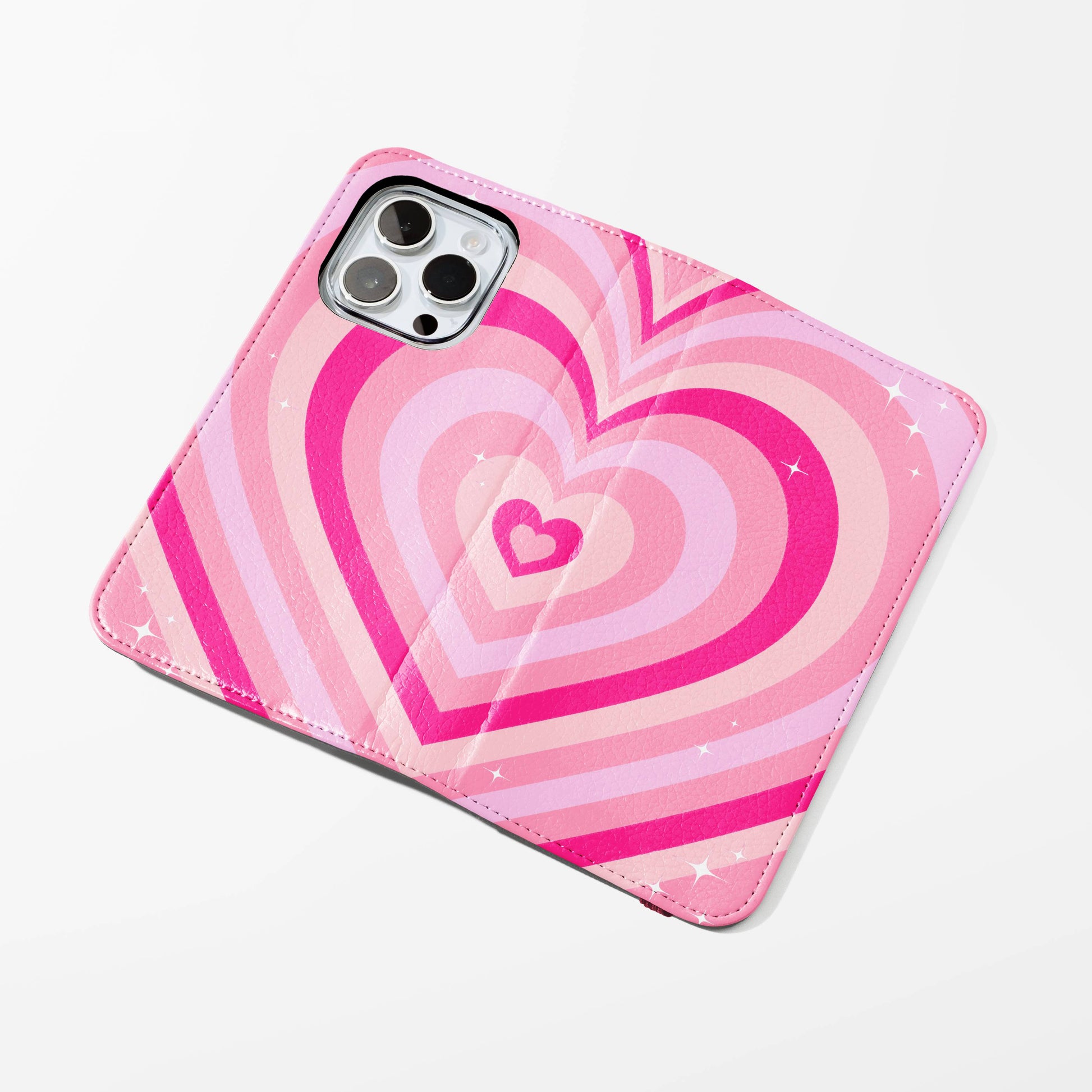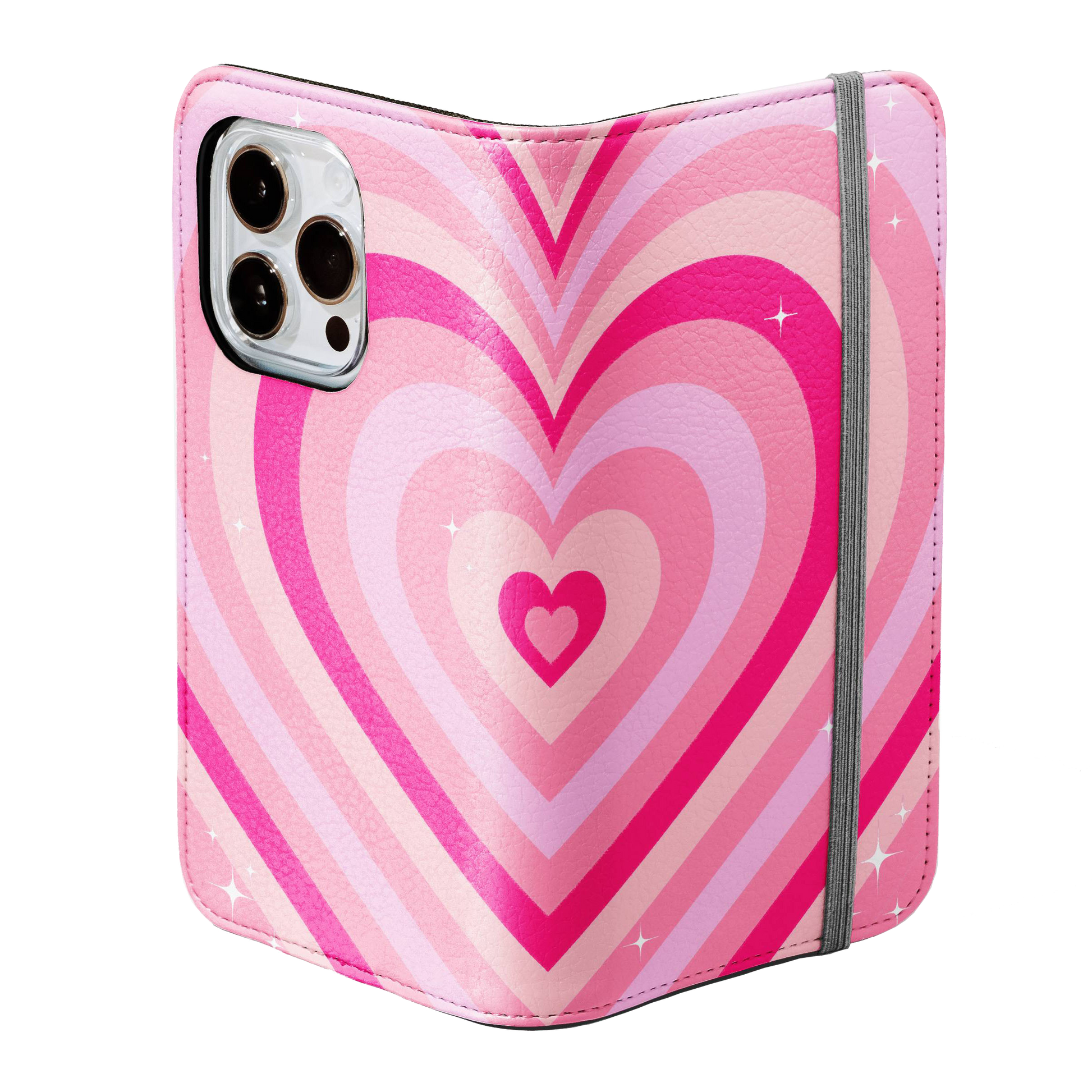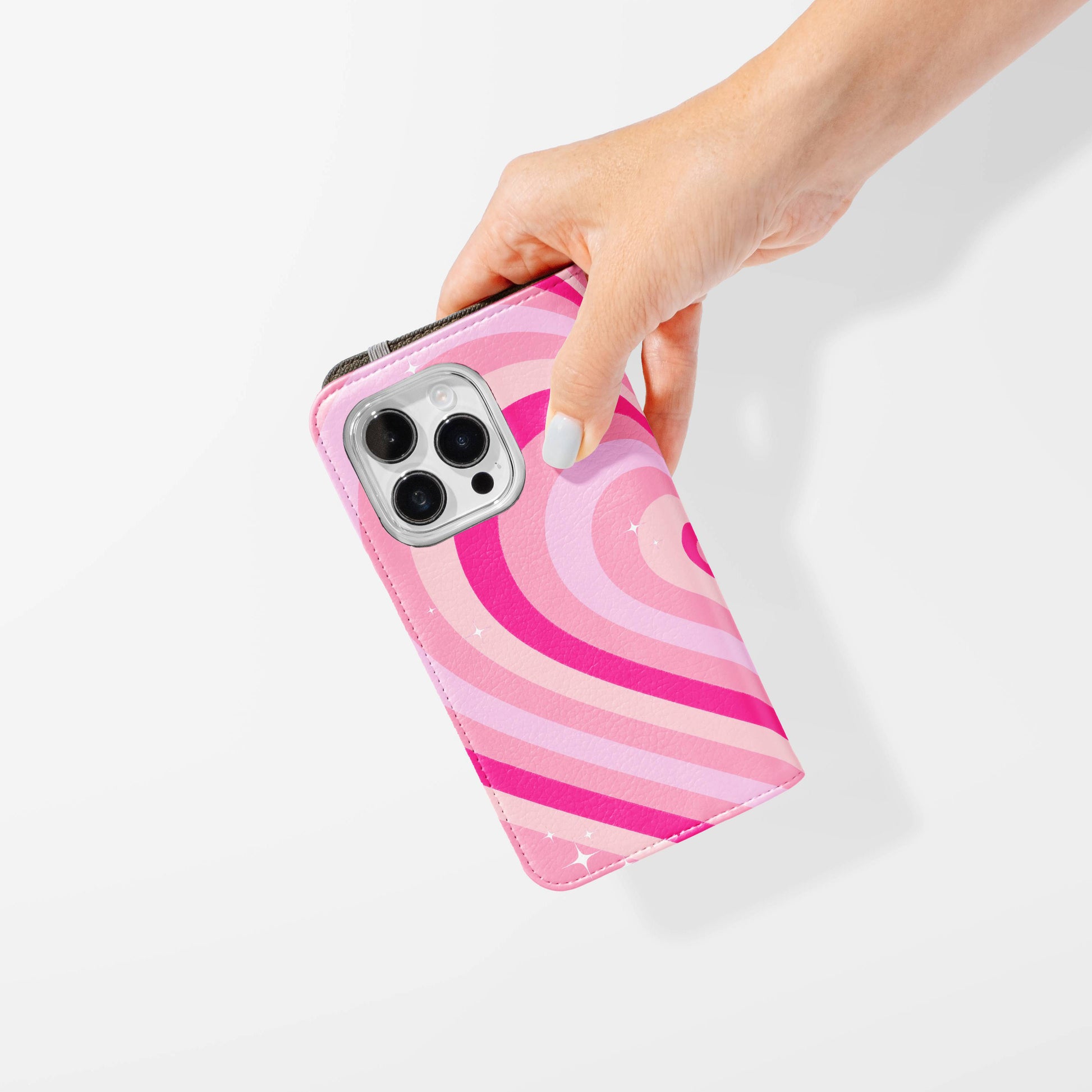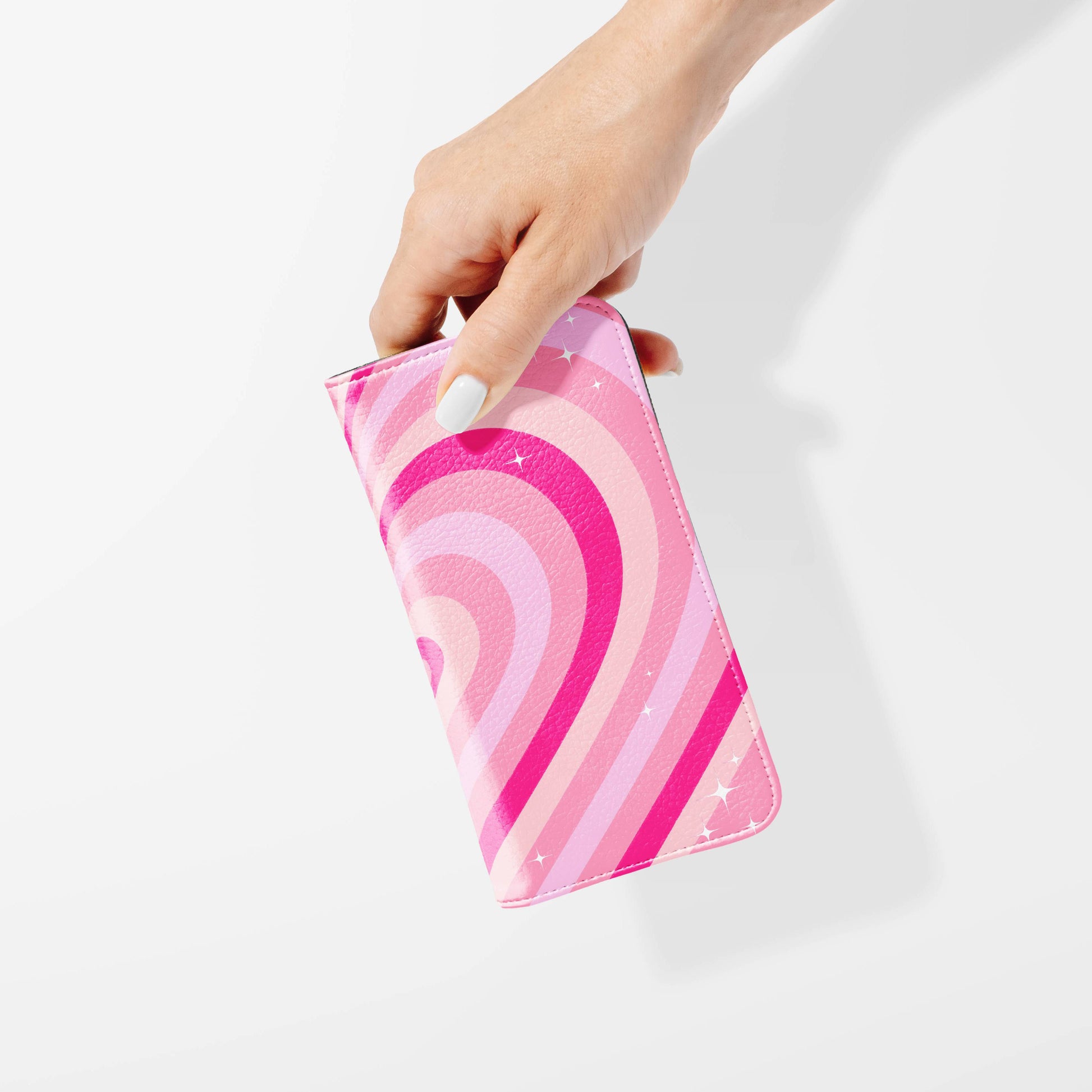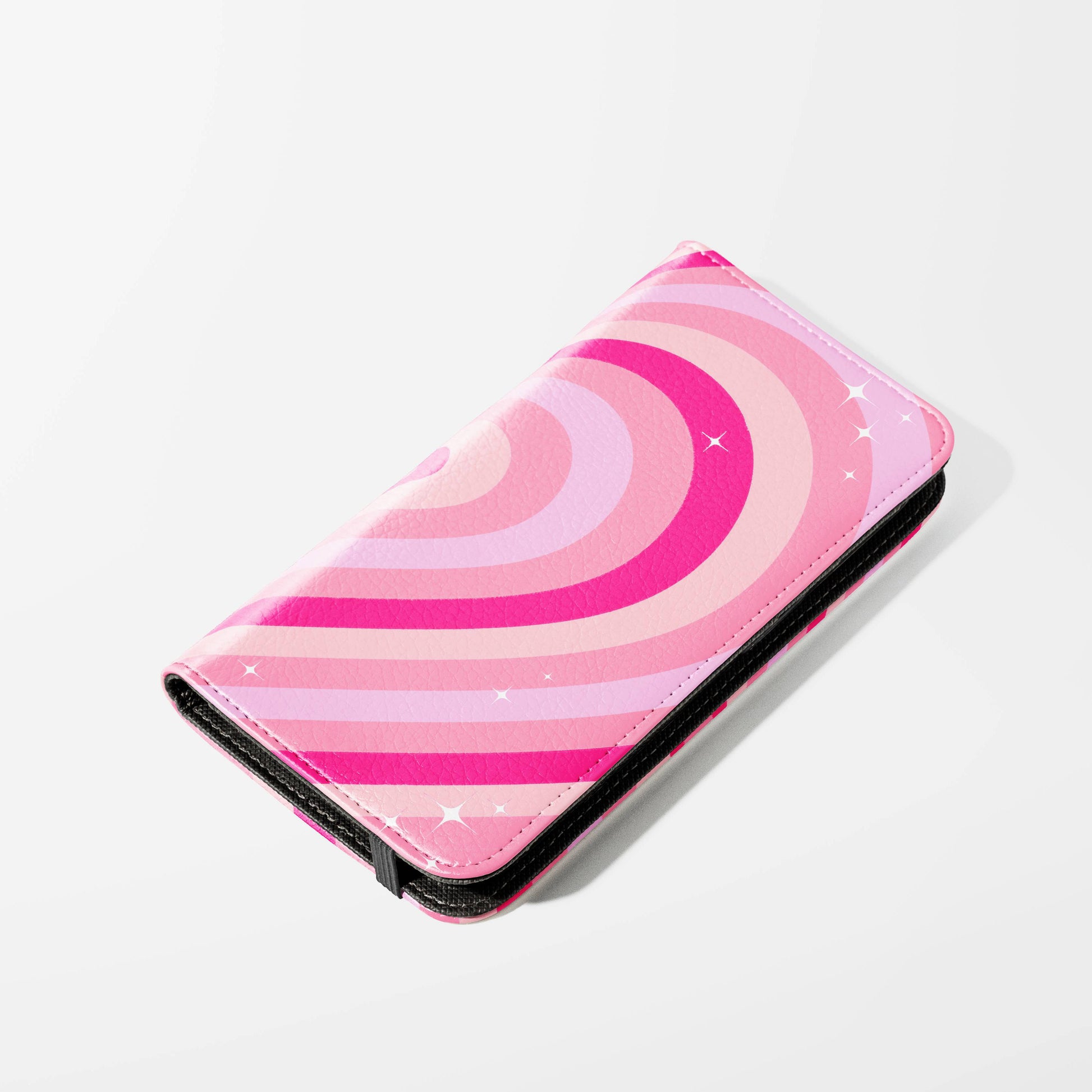 Kick your phone’s style up a notch with our vegan leather folio case! It’s got bold designs, a tough polycarbonate core, and a stretchy strap to keep it snug. Stash cards and cash, pop it up for videos, and clip on a strap for easy carrying!
