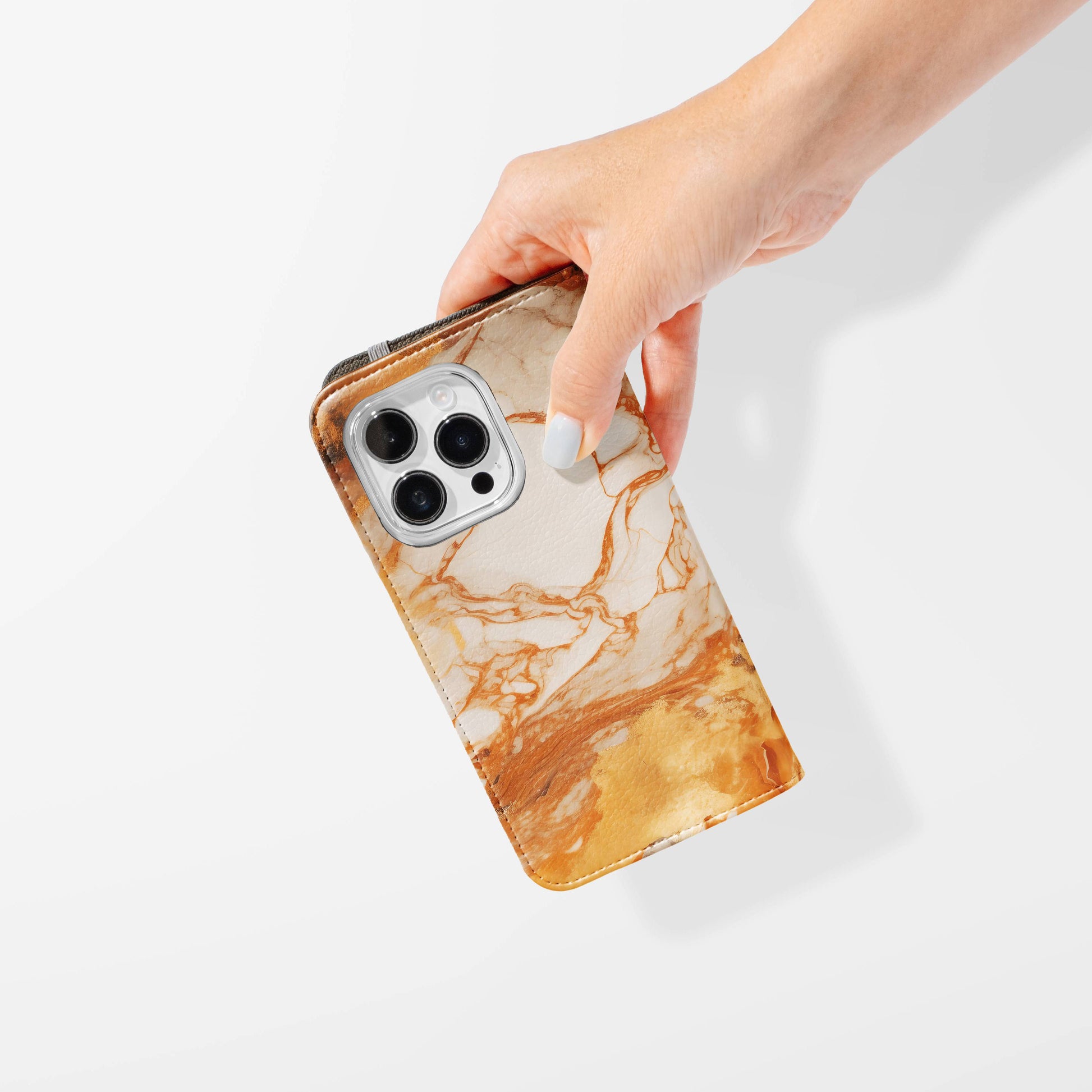 Kick your phone’s style up a notch with our vegan leather folio case! It’s got bold designs, a tough polycarbonate core, and a stretchy strap to keep it snug. Stash cards and cash, pop it up for videos, and clip on a strap for easy carrying!